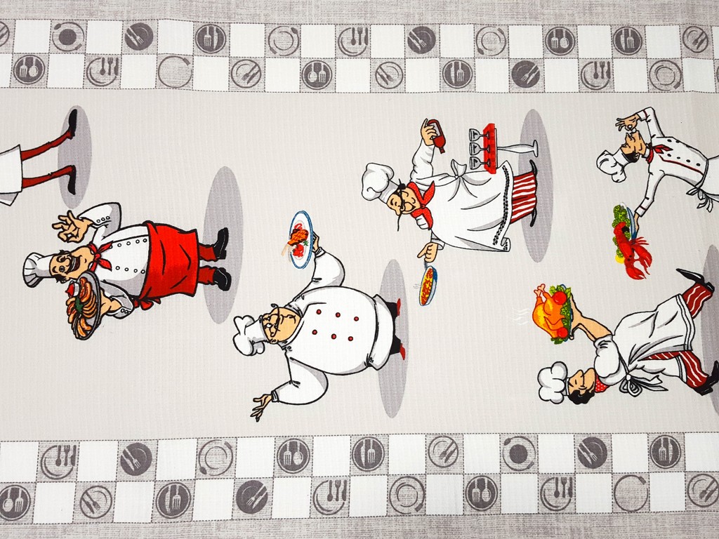 Bavlnené piké vynikne vďaka motívom s kuchárikom hlavne v kuchyni. Môžete z neho ušiť utierky, prestierania alebo behúň.