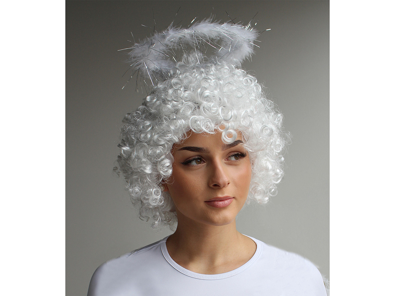 Parochňu s bielymi kučeravými vlasmi využijete na karnevaly, maškarné plesy, párty, oslavy a pod. Je ideálny pre kostým anjela . Vnútro parochne tvorí polyesterová sieťka s gumičkou po obvode, vďaka ktorej parochňa na hlave perfektne sedí.