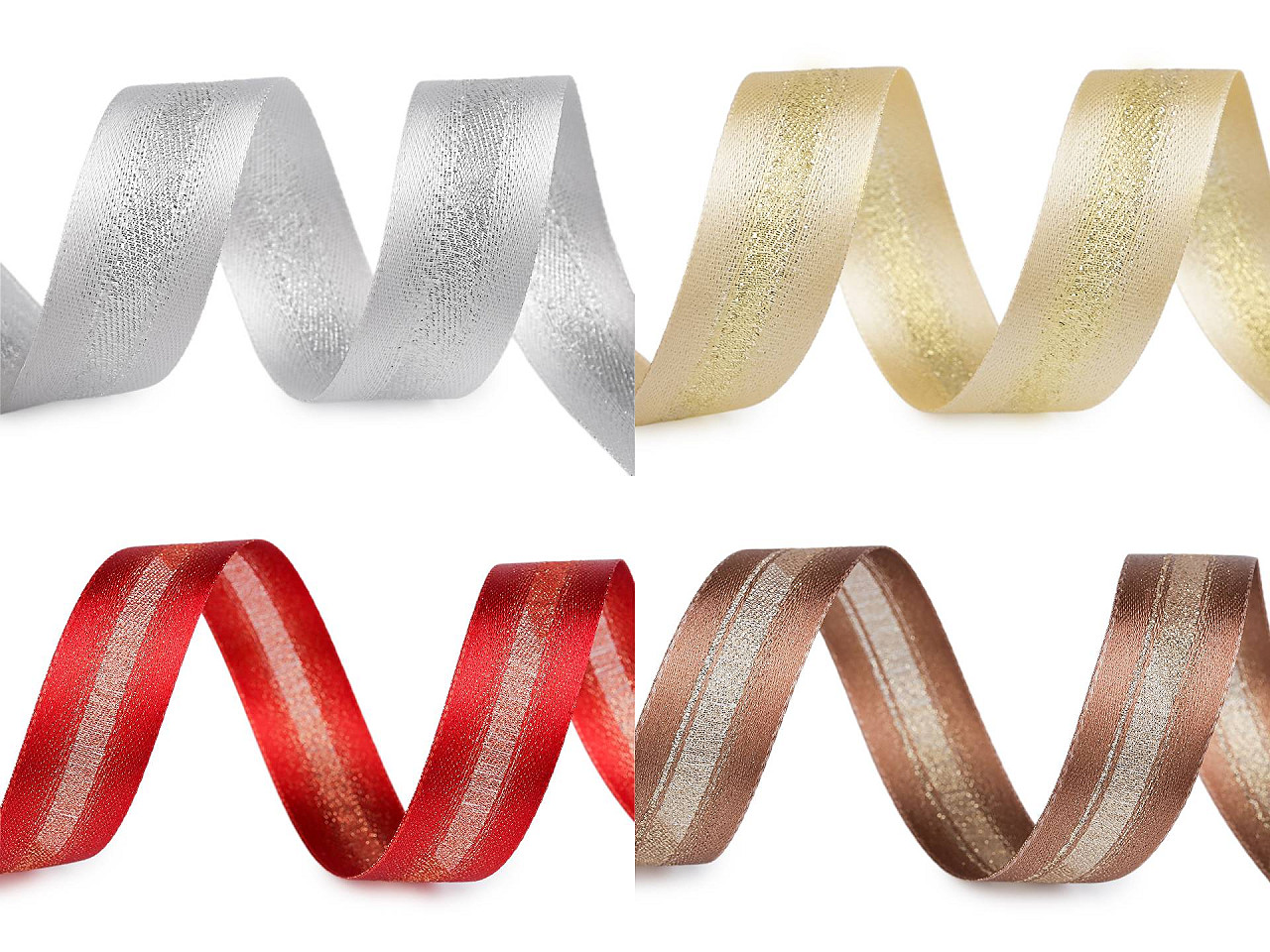 Dekoračná atlasová stuha je uprostred ozdobená lurexovým pruhom , vďaka ktorému sa pútavo trblieta . Stuha má pevné okraje, je obojstranná. Použitie: bude sa perfektne vynímať na vianočných dekoráciách, môžete ju použiť na rôzne vence, väzby alebo s ňou originálne zabaliť darčeky. Je pevná, uviazané mašle pekne držia tvar .