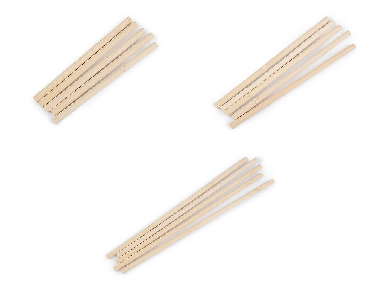 Drevené tyče z opracovaného bambusu s rovnými koncami sa hodia na závesné dekorácie a rôzne druhy viazania šnúr technikou macramé . Skvele poslúžia aj na iné dekorácie, napr. na výrobu zapichovátok do kvetináčov.
