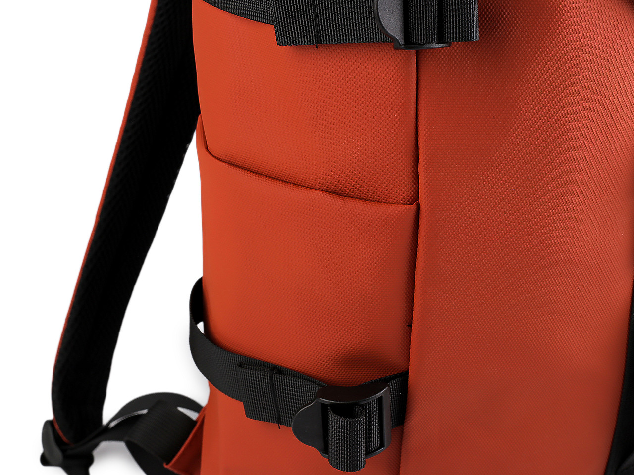 Veľký textilný batoh sa hodí predovšetkým na výlety, do posilňovne alebo do školy. Má pogumovaný, nepremokavý povrch , ktorý zaručuje ľahkú údržbu. Uzatvára sa na klopu s pútkom a kovovým háčikom s plynulou reguláciou dĺžky. Pod klopou nájdete zips so šnúrkou a posuvnou brzdičkou. Vnútri má batoh polstrované vrecko . Po stranách batoha sú vrecká na fľaše a rôzne pútka na upevnenie ďalších predmetov. Hore má batoh praktické pútko na zavesenie, polstrované nastaviteľné popruhy s plynulou reguláciou dĺžky a polstrovaný chrbát .