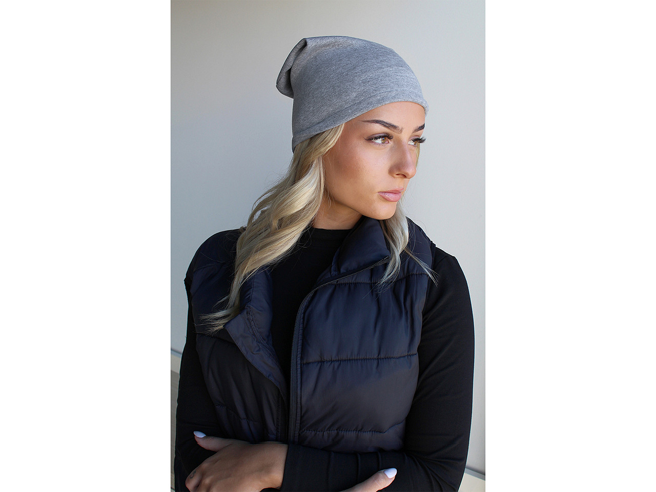 Bavlnená čiapka z pružného úpletu je ideálna do mesta, hodí sa i na prechádzky a športové aktivity. Má mladistvý ležérny strih so spusteným zadným koncom. . Ľahko sa kombinuje s rôznymi outfitmi, či už sa jedná o športový alebo ležérny štýl, hodí sa do chladného jesenného počasia. Voľne položený obvod lemu čiapky je 45 cm, natiahnutý až 68 cm. Výška čiapky je cca 25 cm.