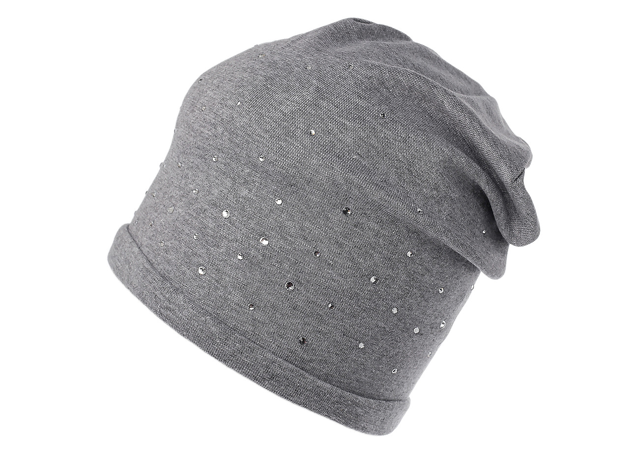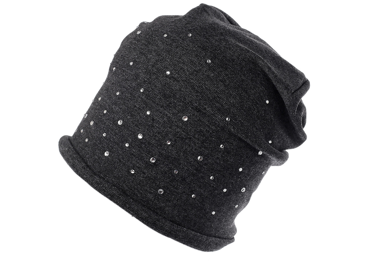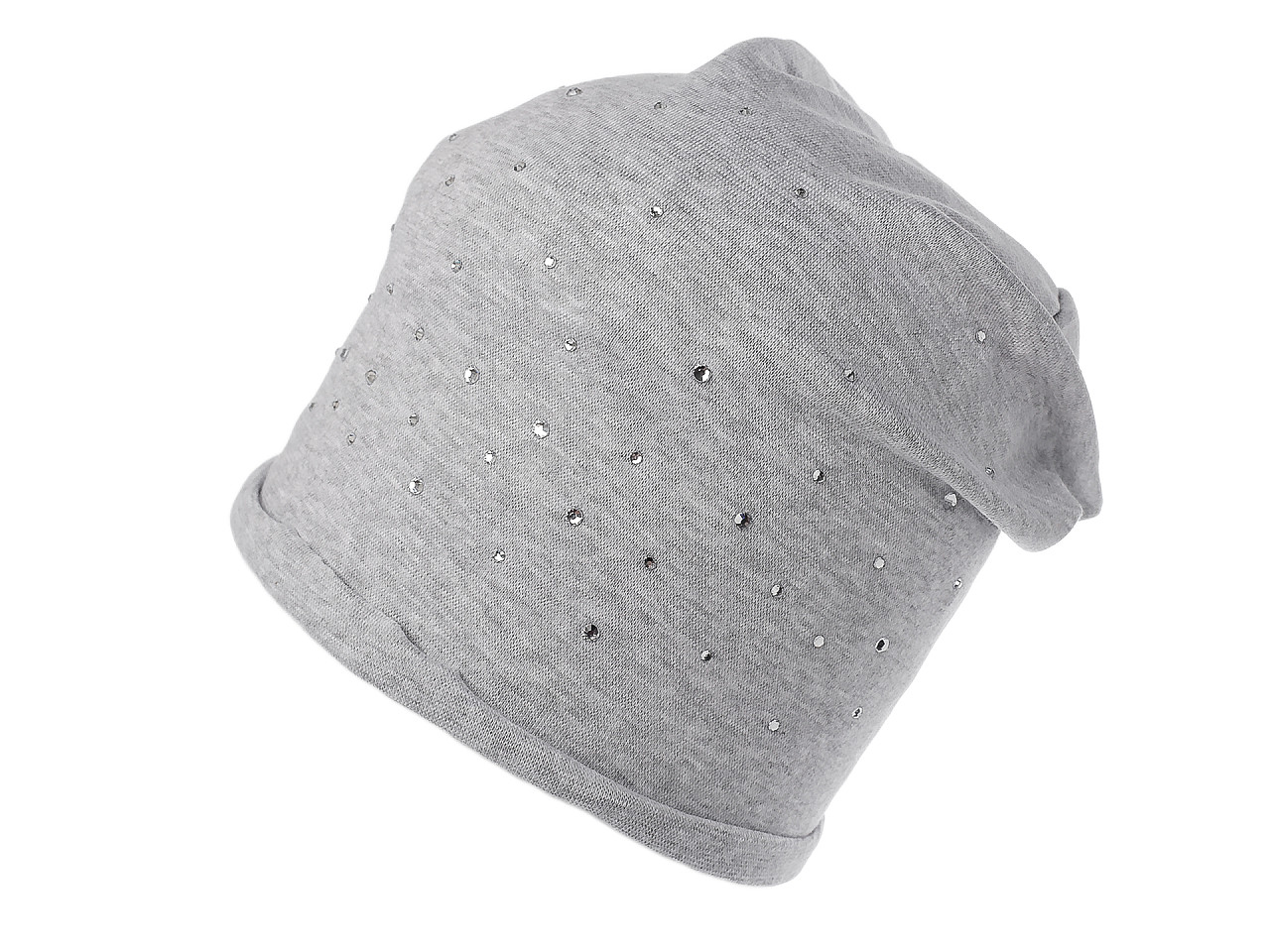 Bavlnená čiapka z pružného úpletu je ideálna do mesta, hodí sa i na prechádzky a športové aktivity. Na prednej strane je ozdobená brúsenými kamienkami , vďaka ktorým sa pútavo trblieta. Má mladistvý ležérny strih so spusteným zadným koncom. . Ľahko sa kombinuje s rôznymi outfitmi, hodí sa do chladného jesenného počasia. Voľne položený obvod lemu čiapky je 46 cm, natiahnutý až 64 cm. Výška čiapky je 25 cm.