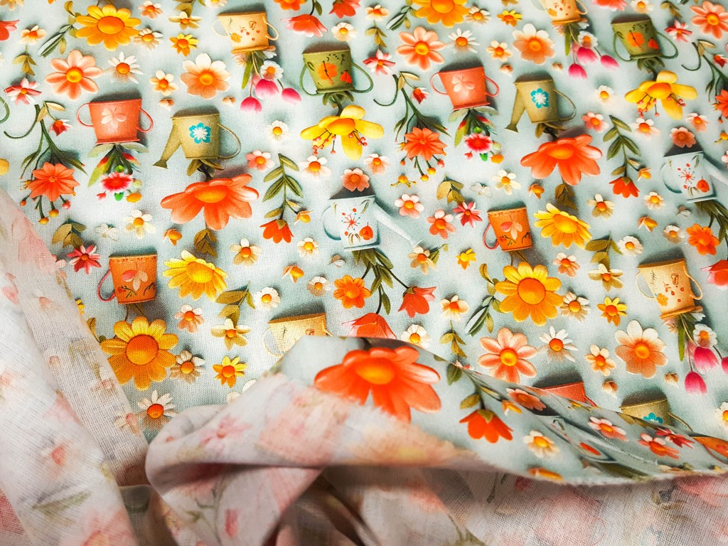 Bavlnená látka - krhličky s kvietkami - digitálna tlač 150 cm