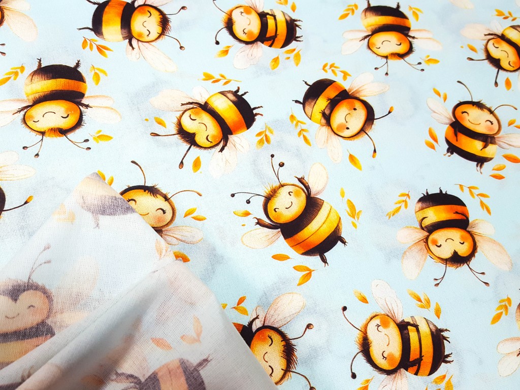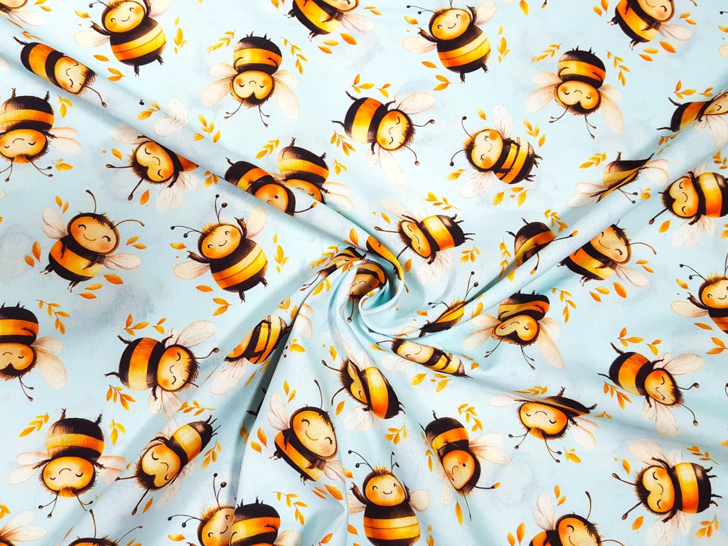 Bavlnená látka - veselé včielky - digitálna tlač 150 cm