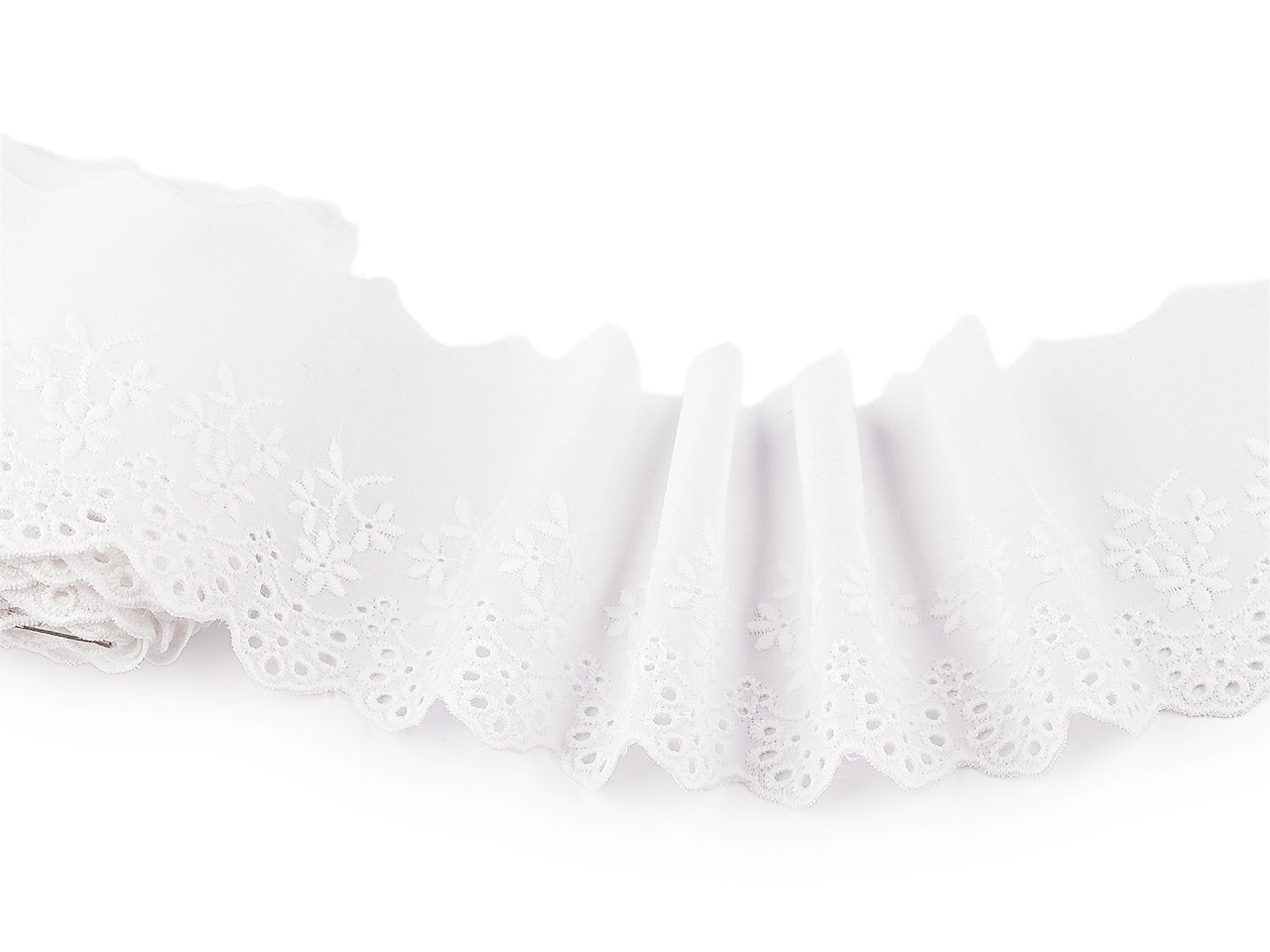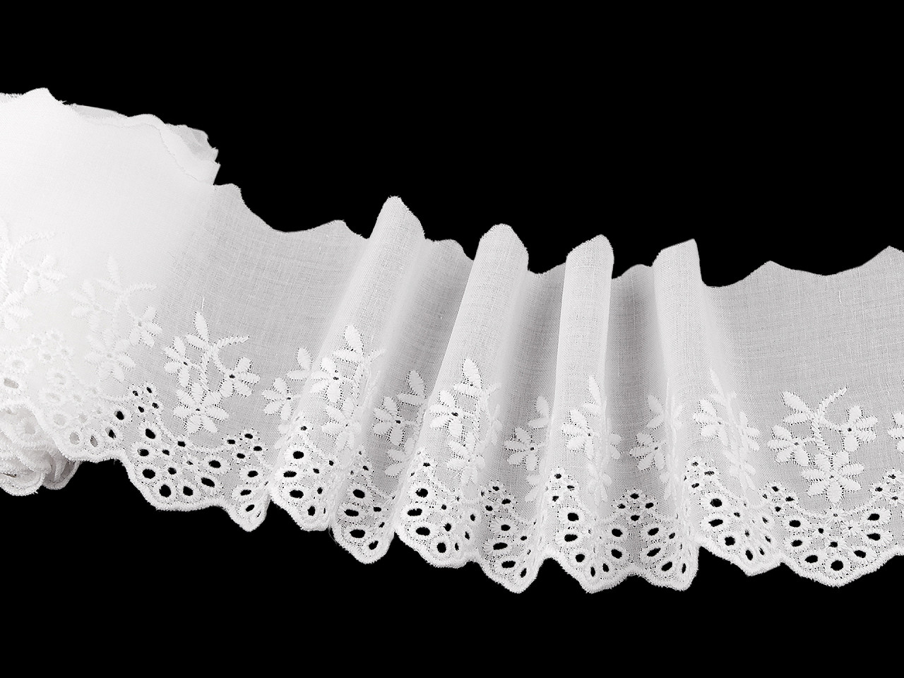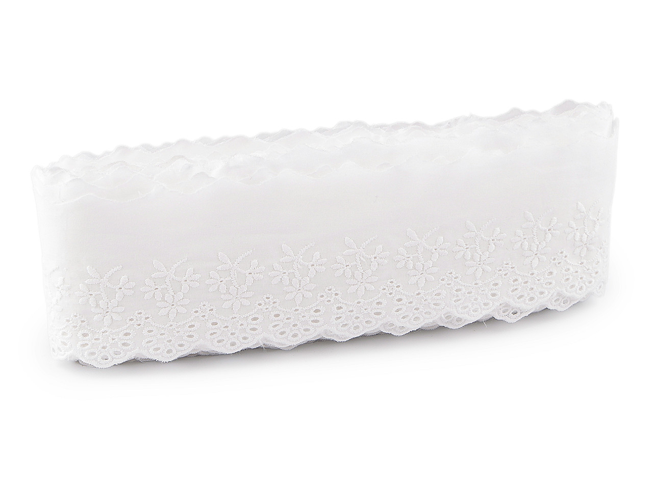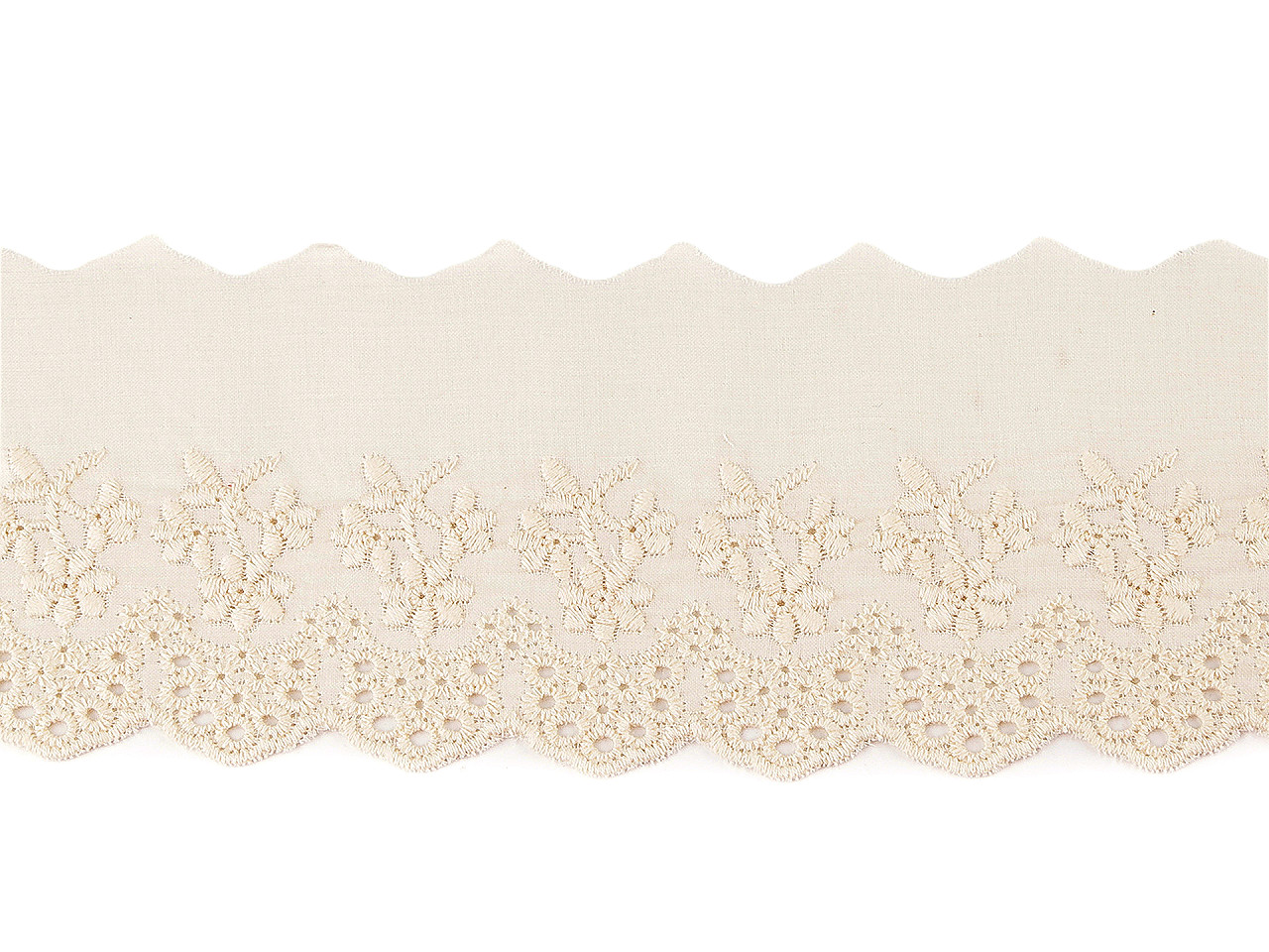 Bavlnenú madeiru s dierkovanou výšivkou môžete našiť na odevy, kde vytvorí originálne a atraktívne detaily ako sú lemy rukávov, sukní alebo výstrihov. Ďalej je vhodná na ozdobenie obrusov, závesov, záclon, dekoračných vankúšov alebo posteľnej bielizne. Šírka nevyšitej časti sa môže mierne líšiť (±10%).