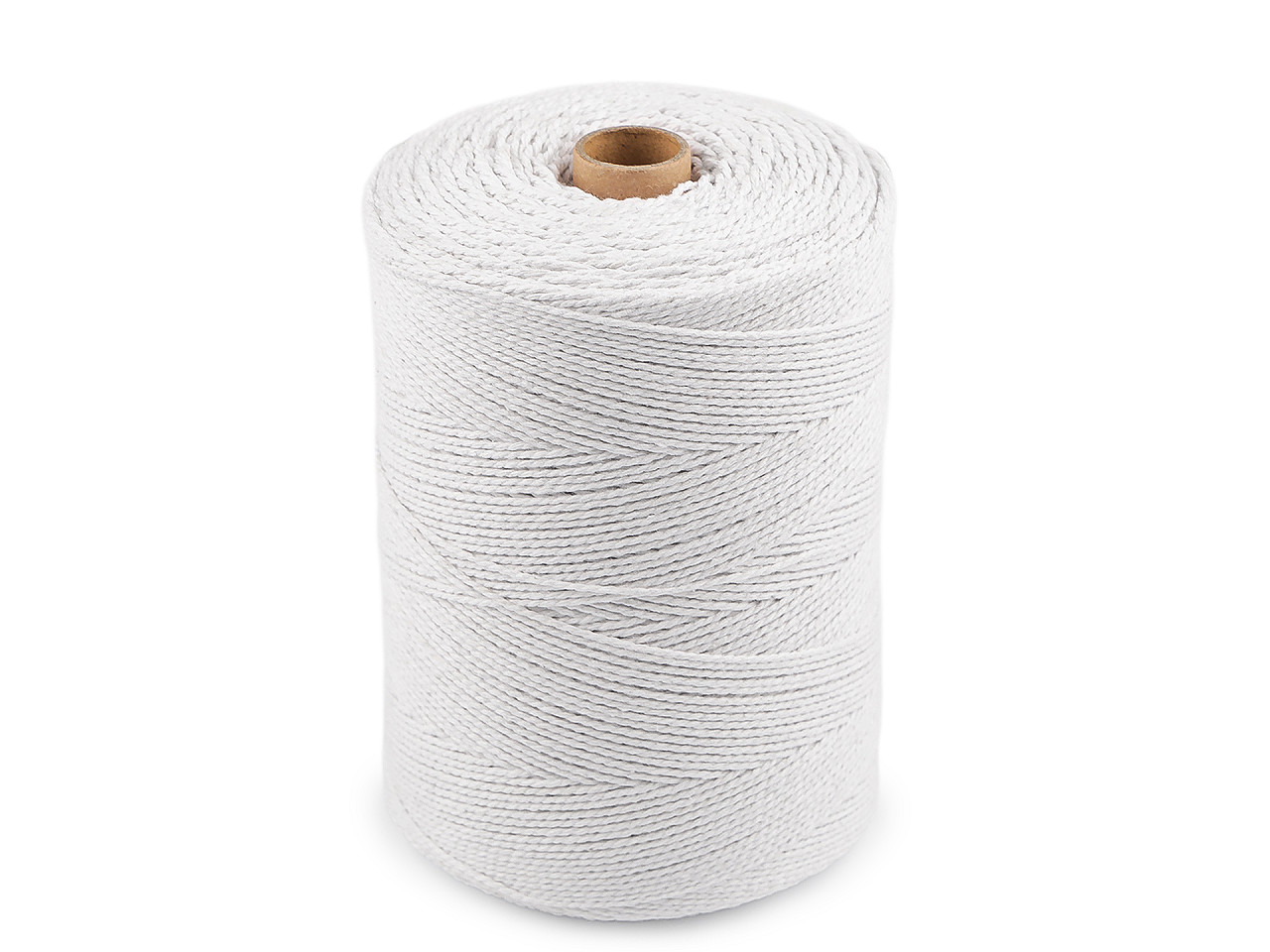 Splietaná bavlnená šnúra je pevná, spletená zo 6 tenších nití. Využijete ju na výrobu drhaných (macrame) výrobkov aj na háčkovanie tašiek, košíkov a rôznych dekorácií. Veľkosť háčika: 4 Jedná sa o prírodný materiál, priemer šnúry je trochu nerovnomerný od cca 1,5 – 2 mm.