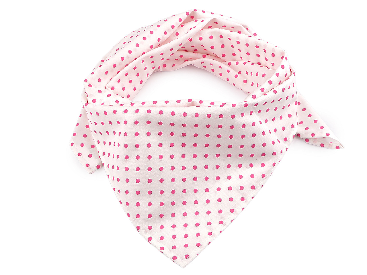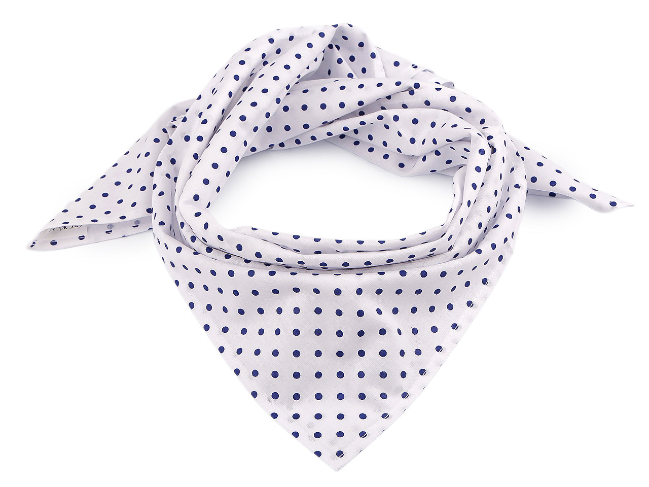 Bavlnenú šatku s drobnými bodkami môžete nosiť nielen okolo krku, ale aj ako pokrývku hlavy. Materiál je príjemný na dotyk. Potlač šatky je jednostranná.