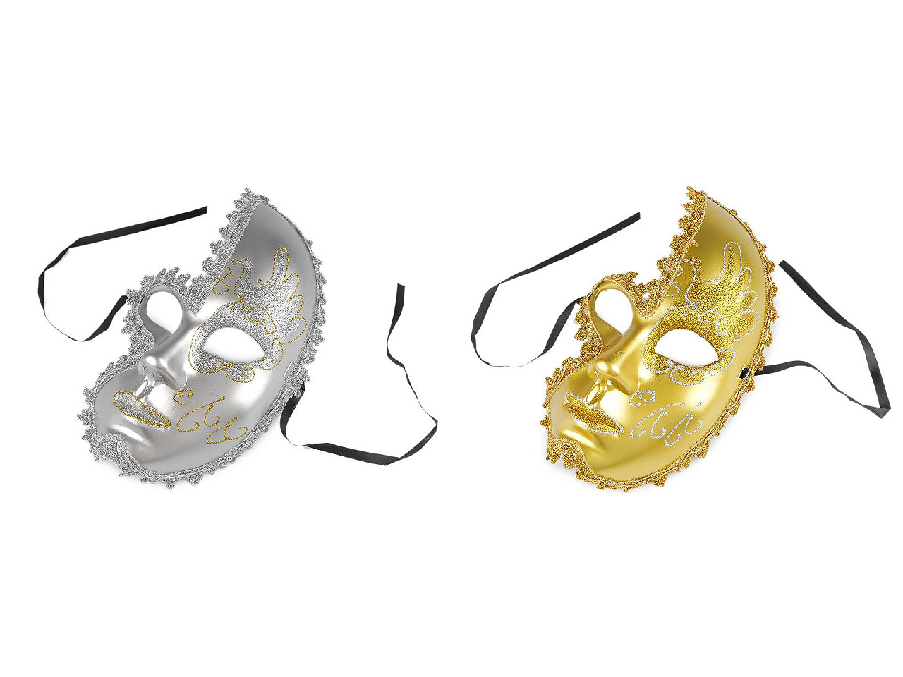 Benátsku masku využijete na večierky, plesy, párty, karnevaly aj divadelné predstavenia. Pridá mystiku vášmu vzhľadu. Miestami je pokrytá trblietavými glitrami a dozdobená leonským prámikom. Zaväzuje sa pomocou stuhy .