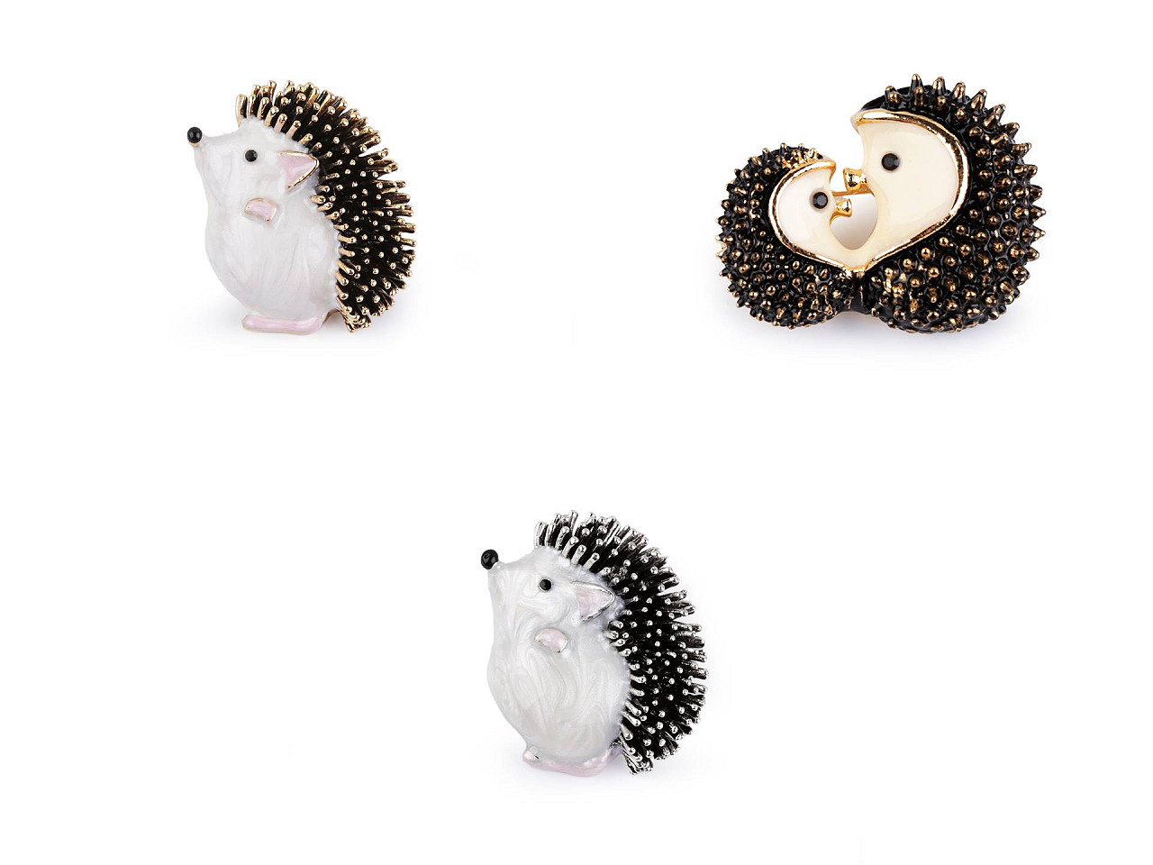 Brošňa ježka s farebným smaltom bude zaujímavou ozdobou vášho odevu. Je perfektne spracovaná s precíznym zameraním na detaily. Smalt má perleťový nádych, pichliače majú kovový lesk . Zo zadnej strany je brošňový špendlík. Brošne efektne pôsobia nielen na odevoch, ale sú vhodné aj na ozdobenie klobúkov, tašky či zopnutie šatky. Sú na plastovej karte, ktorú je možné zavesiť na predajné stojany. Brošňa č.2 nemá perleťový lesk.