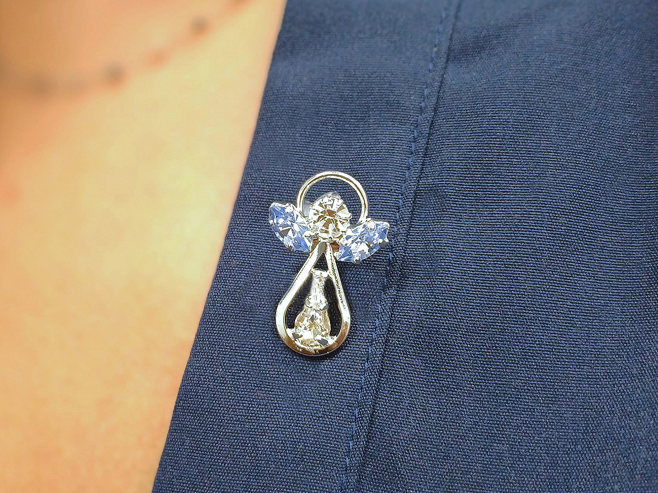 Malá štrasová brošňa / odznak je vďaka brúseným kamienkom prvotriednej českej kvality veľmi elegantná. Kamienky sú pevne zasadené do kovového lôžka, na slnku aj umelom svetle sa brošňa zaujímavo trblieta. Hodí sa na klopu kabáta, klobúka, vestu či sveter. Je vhodná aj na pripnutie na tašku, ako ozdoba tašky či batoha. Má jednoduché jednobodové zapínanie .