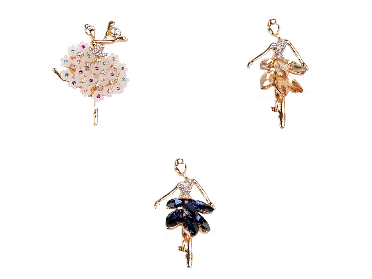 Brošňa baletka s brúsenými kamienkami je veľmi pôvabná. Prinesie do vášho outfitu nádych umeleckej elegancie. Môžete ju využiť na bežné nosenie aj na spoločenské udalosti – návštevy divadiel, oslavy a pod. Vynikne na saku, kabáte, košeli či blúzke. Dodá nádych výnimočnosti napríklad klobúčiku alebo čiapke. Môžete si aj ozdobne zopnúť šatku. Na zadnej strane má brošňový špendlík. Je skvelým darčekom pre milovníčky tanca a umenia, ktoré ocenia jej krásu a symboliku. Brošňa je na karte, ktorá sa dá zavesiť na predajné stojany. Brošne č. 1 a 2 majú sukienky nazdobené plastovými kvetmi so stredmi z brúsených kamienkov. Brošne č. 3 a 4 majú sukienky ozdobené veľkými brúsenými kameňmi.