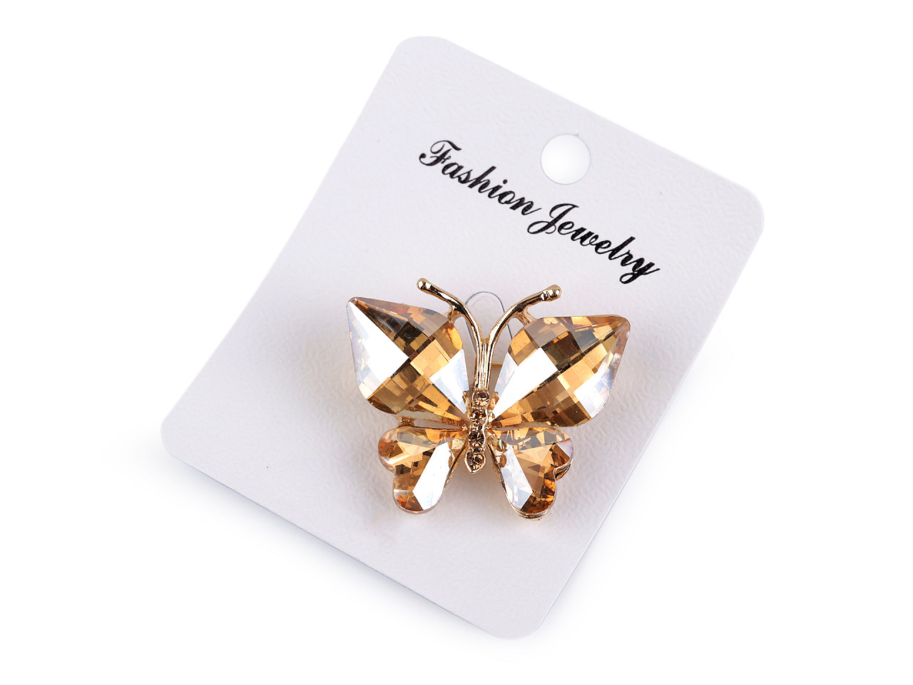 Trblietavá brošňa motýľa je úplne úchvatná. Motýlie krídla sú ozdobené brúsenými kamienkami , ktoré chytajú svetlo z rôznych uhlov, čím dodávajú šperku unikátny šarm. Môžete ju nosiť na odevoch, klobúkoch, taškách či s ňou môžete zopnúť šatku. Na zadnej strane má brošňový špendlík. Brošňa je na karte, ktorú je možné zavesiť na predajné stojany.