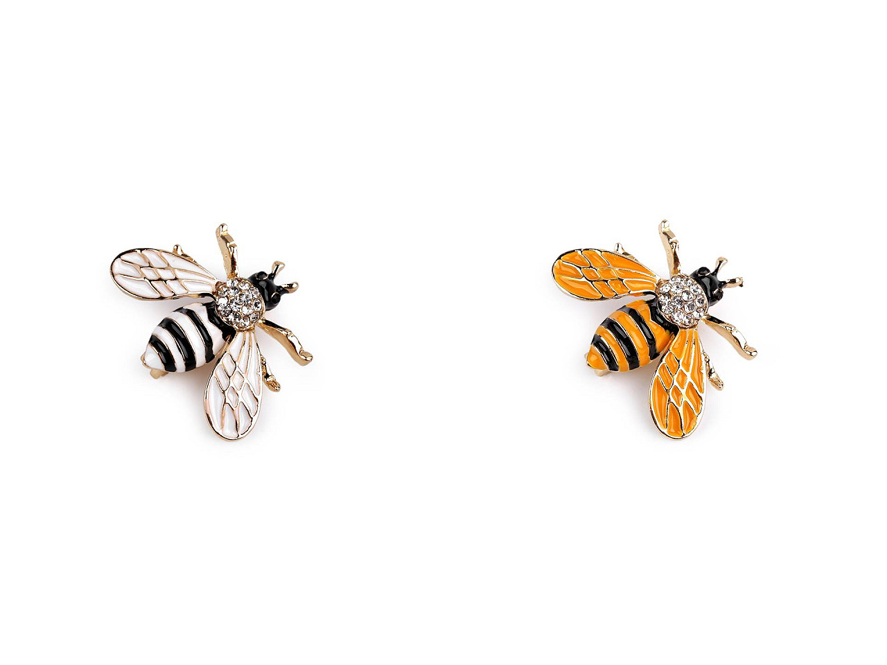 Elegantná brošňa včely pôsobí veľmi prepychovo. Prostriedok tela je vysadený brúsenými kamienkami , ktoré sa oslnivo trblietajú. Na zadnej strane je spínací špendlík s poistkou proti otvoreniu. Brošňu môžete nosiť nielen na odevoch, ale hodí sa aj na ozdobenie klobúkov či zopnutie šatky. Je na plastovej karte, ktorá sa dá zavesiť na predajné stojany.