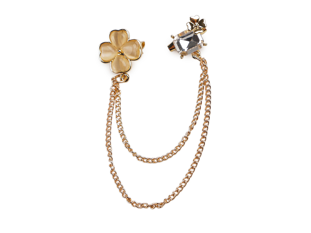 Brošňa / spona dragoun je elegantným doplnkom, ktorý zaujme na prvý pohľad svojim jemným a prepracovaným dizajnom. Je ozdobená brúseným kameňom a štvorlístkom , na ktorom nájdete lesklé perly . Oživí každý outfit. Štvorlístok je symbolom šťastia, brošňa môže byť aj malým talizmanom pre svojho nositeľa. Môže si ju pripnúť na sako, kabát, košeľu, blúzku aj tašku. Oba diely brošne majú jednobodové zapínanie ako odznaky.