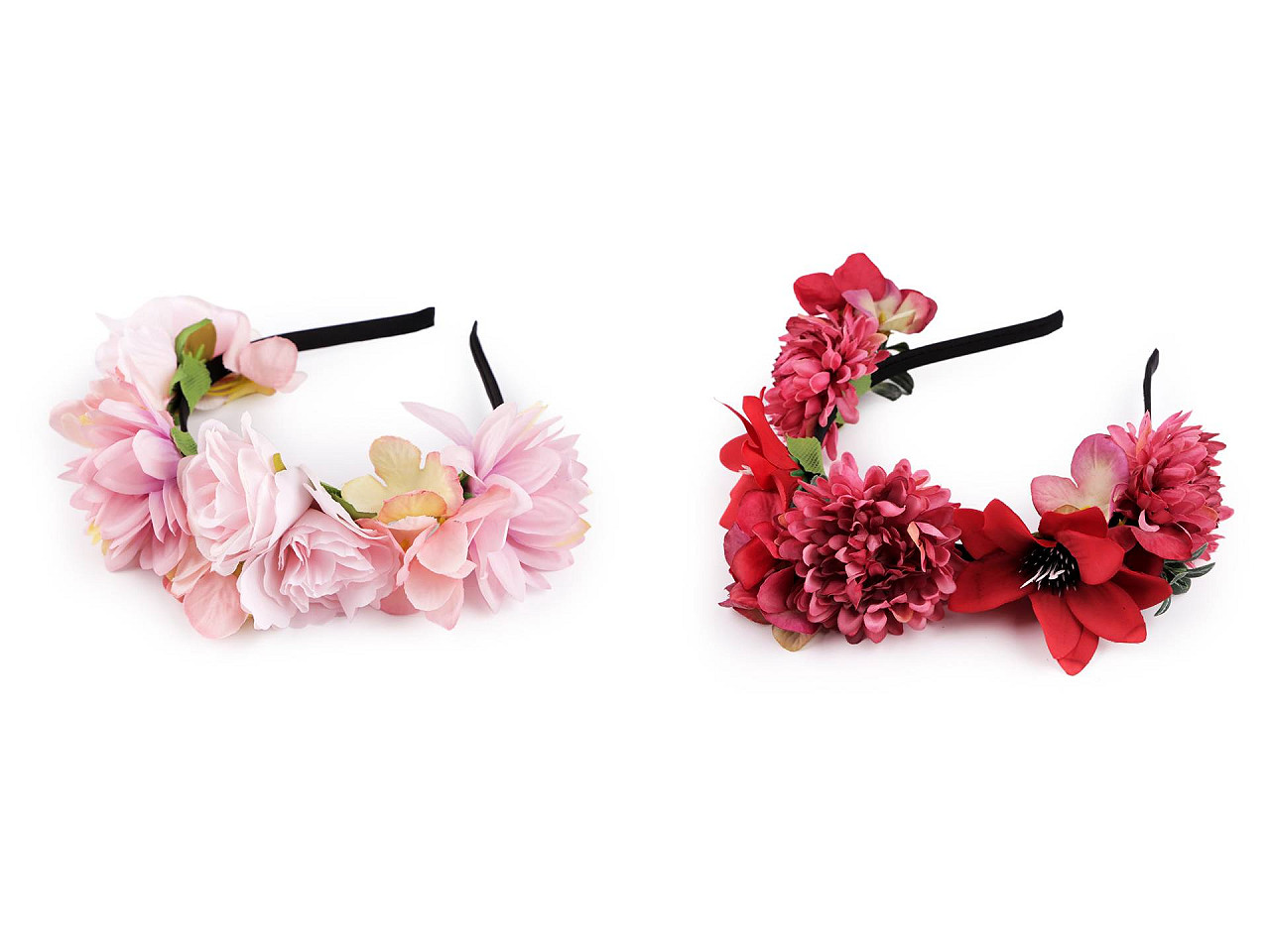 Rozkvitnutá čelenka prebudí v každej žene, dievčati či malej slečne skrytú vílu. Čelenka bude rozkvitnutým doplnkom vašich vlasov na svadbe, letných festivaloch, je nevyhnutným doplnkom pre družičky. Kvety sú pevne prichytené ku kovovej čelenke, ktorá je potiahnutá saténovou stužkou. Kvety na čelenkách sa môžu líšiť.