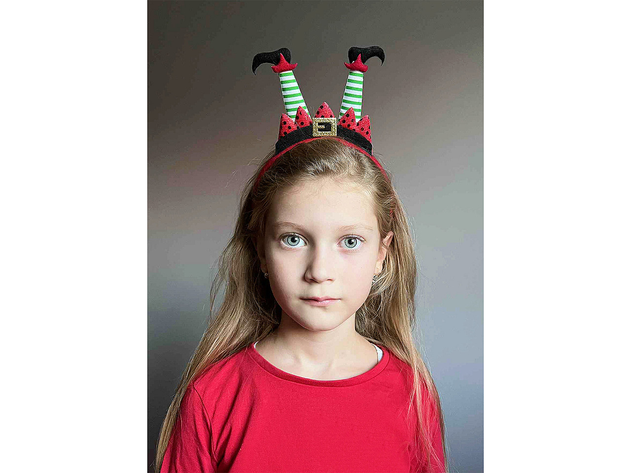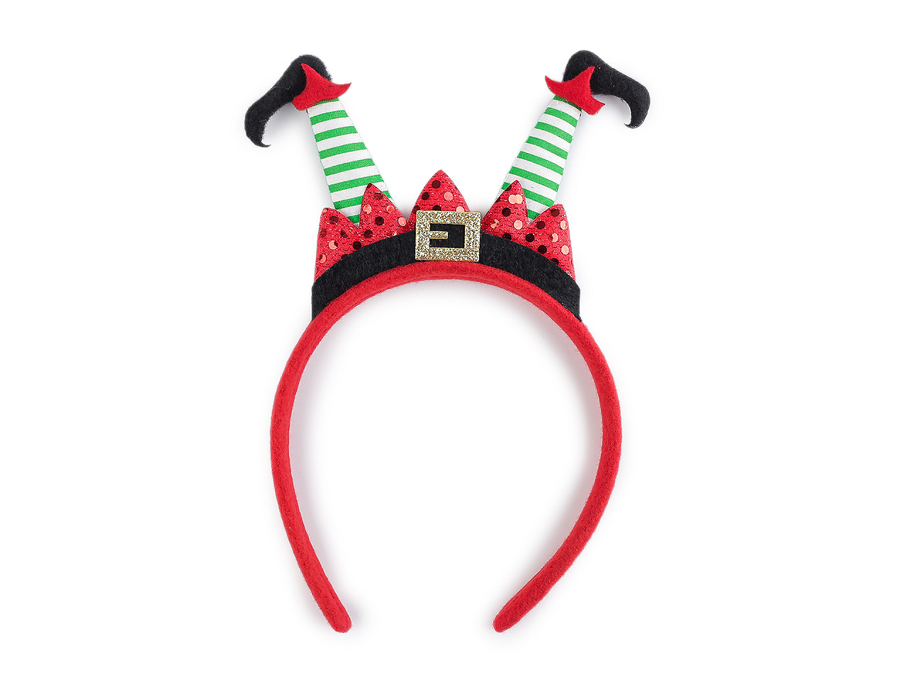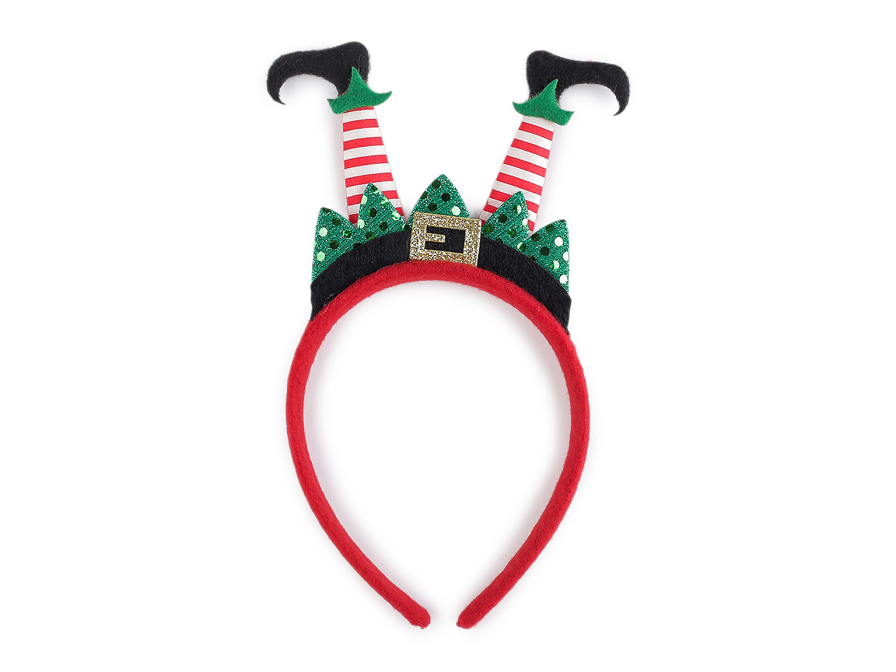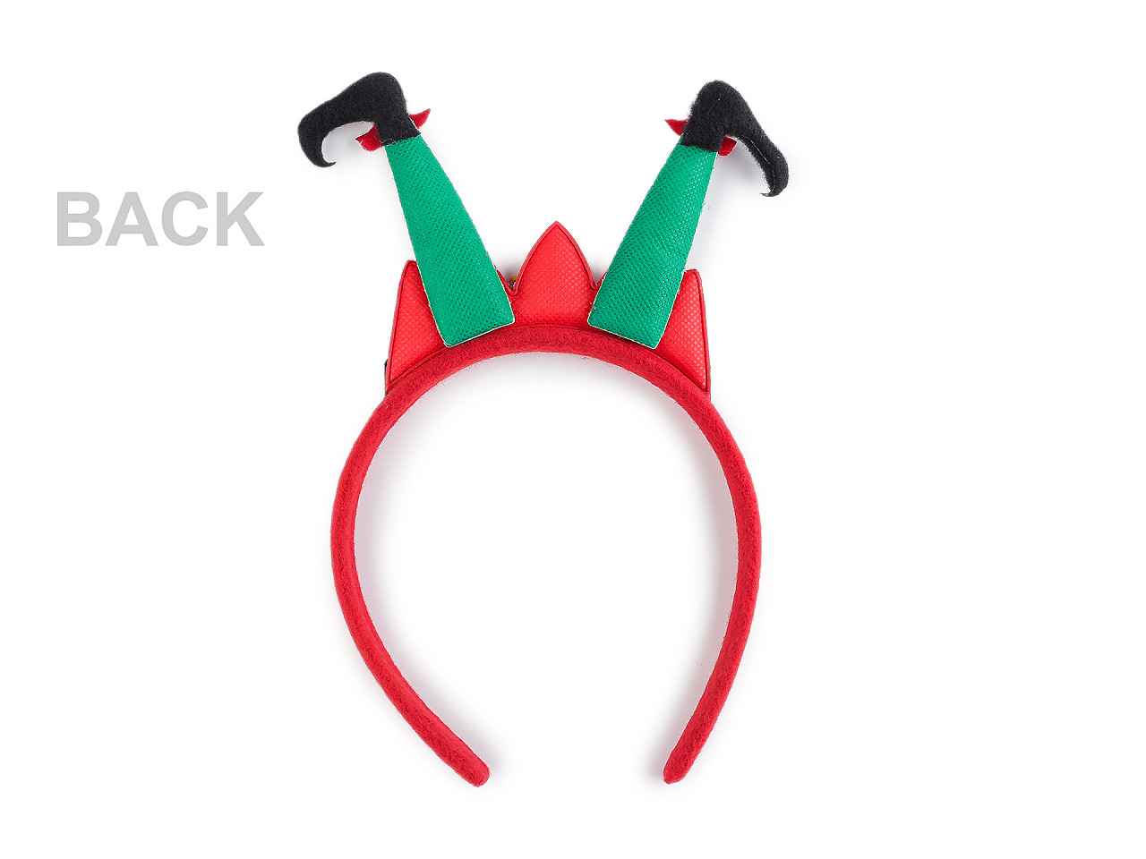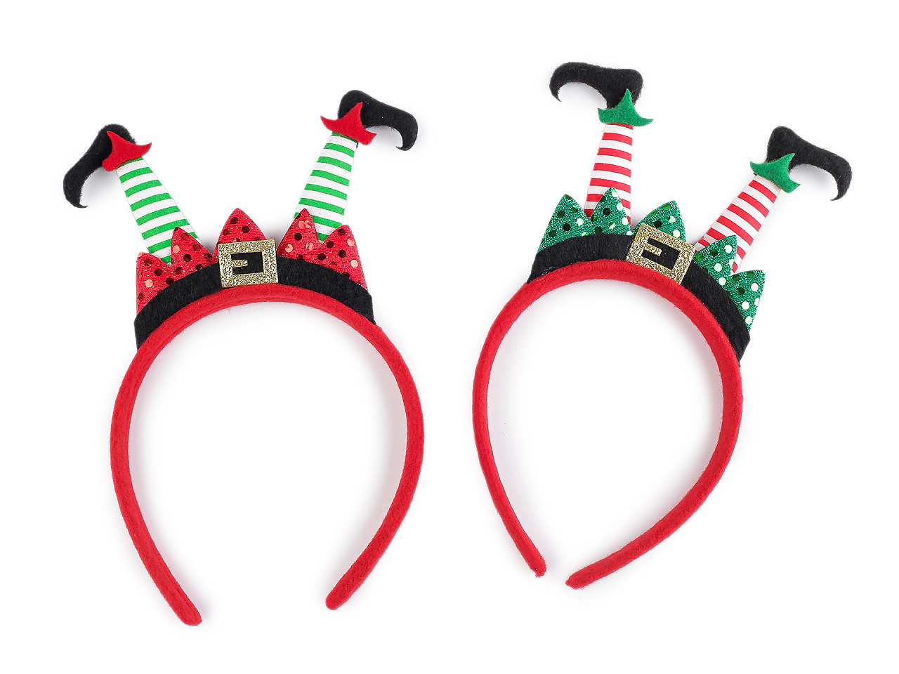 Elfí vianočná čelenka je vtipným doplnkom na vianočné večierky, oslavy, zábavu, karnevaly, rodinné stretnutia, školské predstavenia alebo na Silvestra. Skvele poslúži i vo fotokútiku. Výška nožičiek je cca 9 cm.
