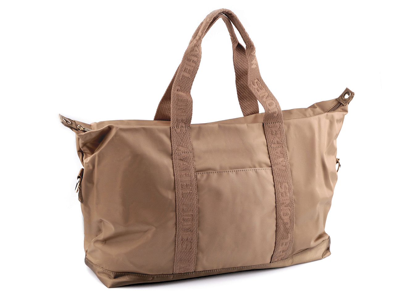 Módna cestovná taška je ideálna ako stredne veľká batožina na cestovanie. Dá sa využiť aj na športové aktivity – jogu, aerobic, do posilňovne a iné športy. Má veľký vnútorný priestor , zapína sa na zips. Pomocou patentov po stranách môžete tašku zmenšiť alebo zväčšiť . Vnútri nájdete 2 priehradky na mobil, kľúče a pod. Na prednej aj zadnej strany tašky sú ďalšie vrecká. Súčasťou kabelky sú 2 uchá na nosenie v ruke a odnímateľný popruh na karabíny , ktorého dĺžku môžete ľubovoľne nastaviť. Dno kabelky je opatrené kovovými klincami, ktoré ho chránia pred poškodením.