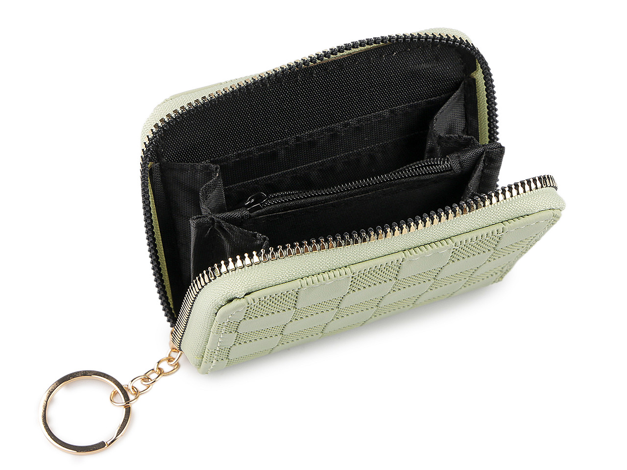 Dámska peňaženka s povrchovou kockovanou štruktúrou je elegantným a štýlovým doplnkom, ktorý upúta pozornosť. Je ideálna na každodenné použitie, vďaka kompaktnému rozmeru sa ľahko zmestí do rôznych typov kabeliek či batohov. Zatvára sa na zips. Vnútri nájdete hlavný priestor oddelený prepážkou na dva menšie. V prepážke je mincovník na zips. Po stranách sú ešte 4 priehradky na karty.