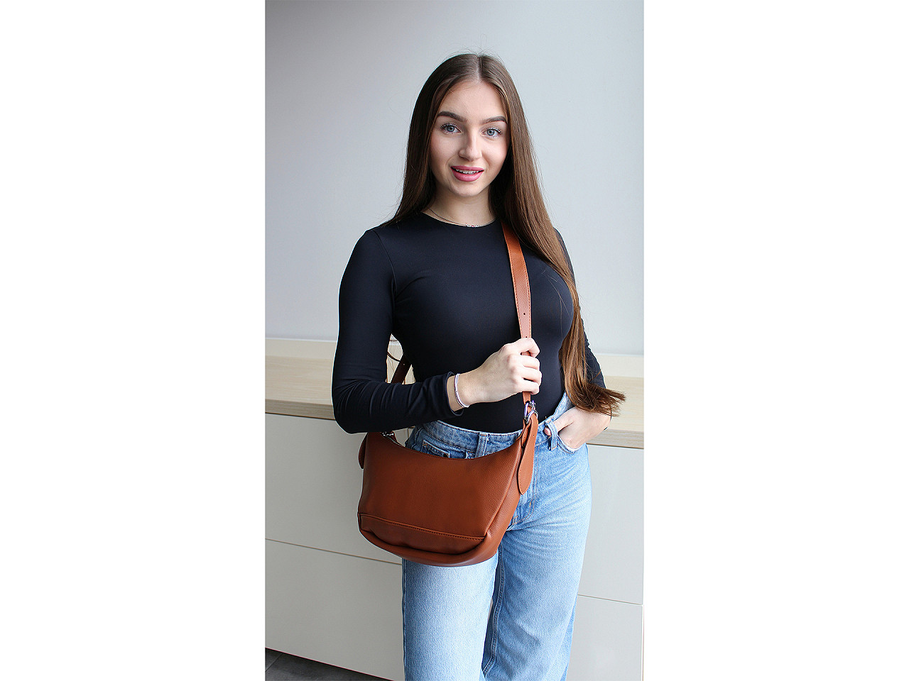 Elegantná kabelka sa stane vašim každodenným módnym doplnkom. Ponúka dostatok priestoru pre všetky vaše osobné veci, ako sú peňaženka, mobilný telefón, kľúče a ďalšie. Jej univerzálny štýl ľahko zladíte s akýmkoľvek outfitom a dodáte svojmu vzhľadu moderný a sofistikovaný nádych. Popruh je ku kabelke pripevnený pomocou praciek. Zapínanie kabelky je na zips, vo vnútri nájdete malú priehradku a zipsové vrecko na drobnosti. Malé vrecko na zips je aj na vonkajšej strane kabelky.