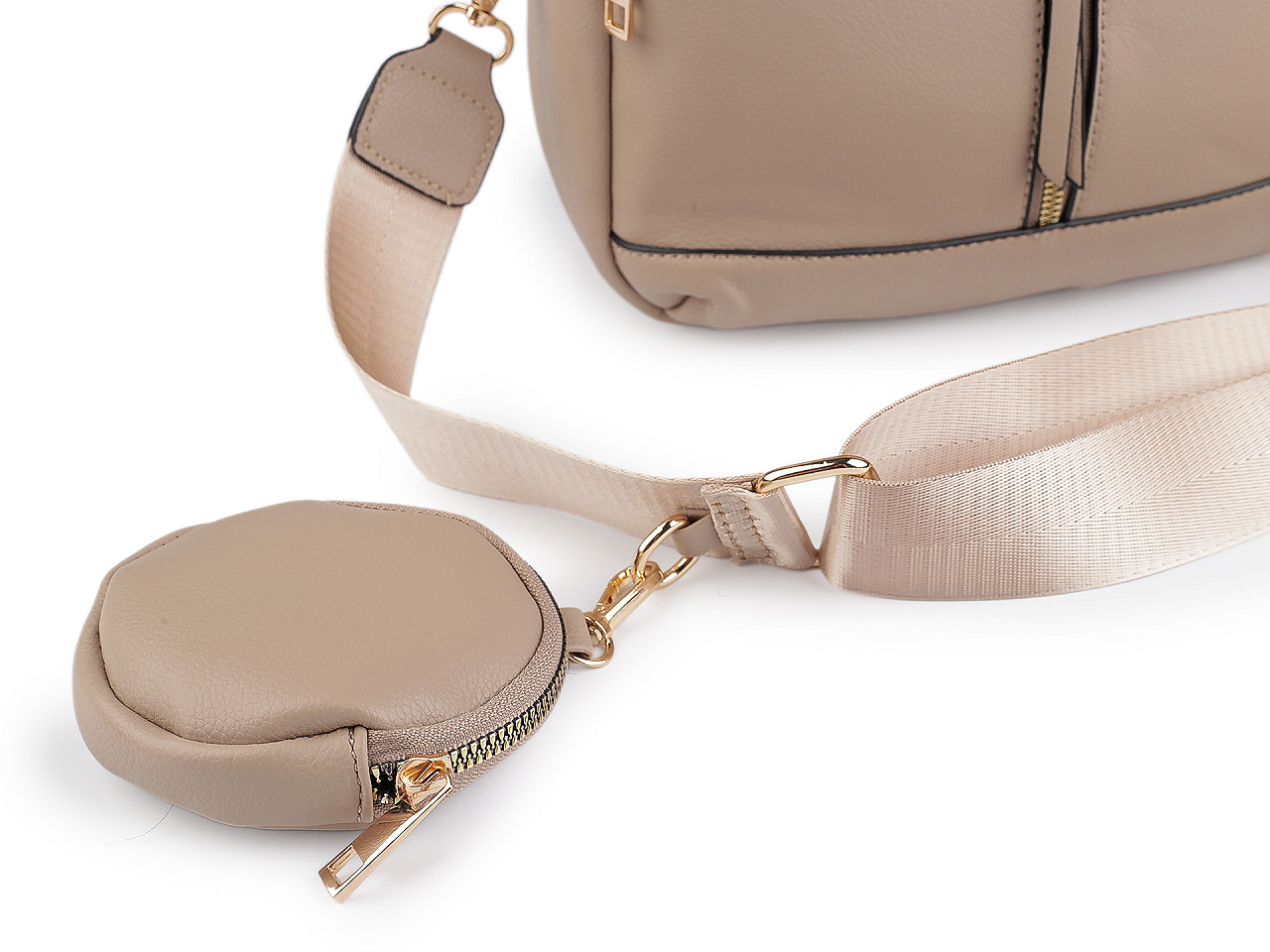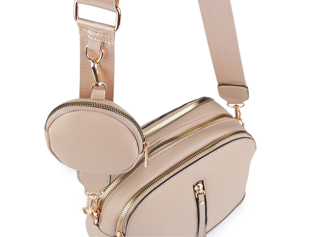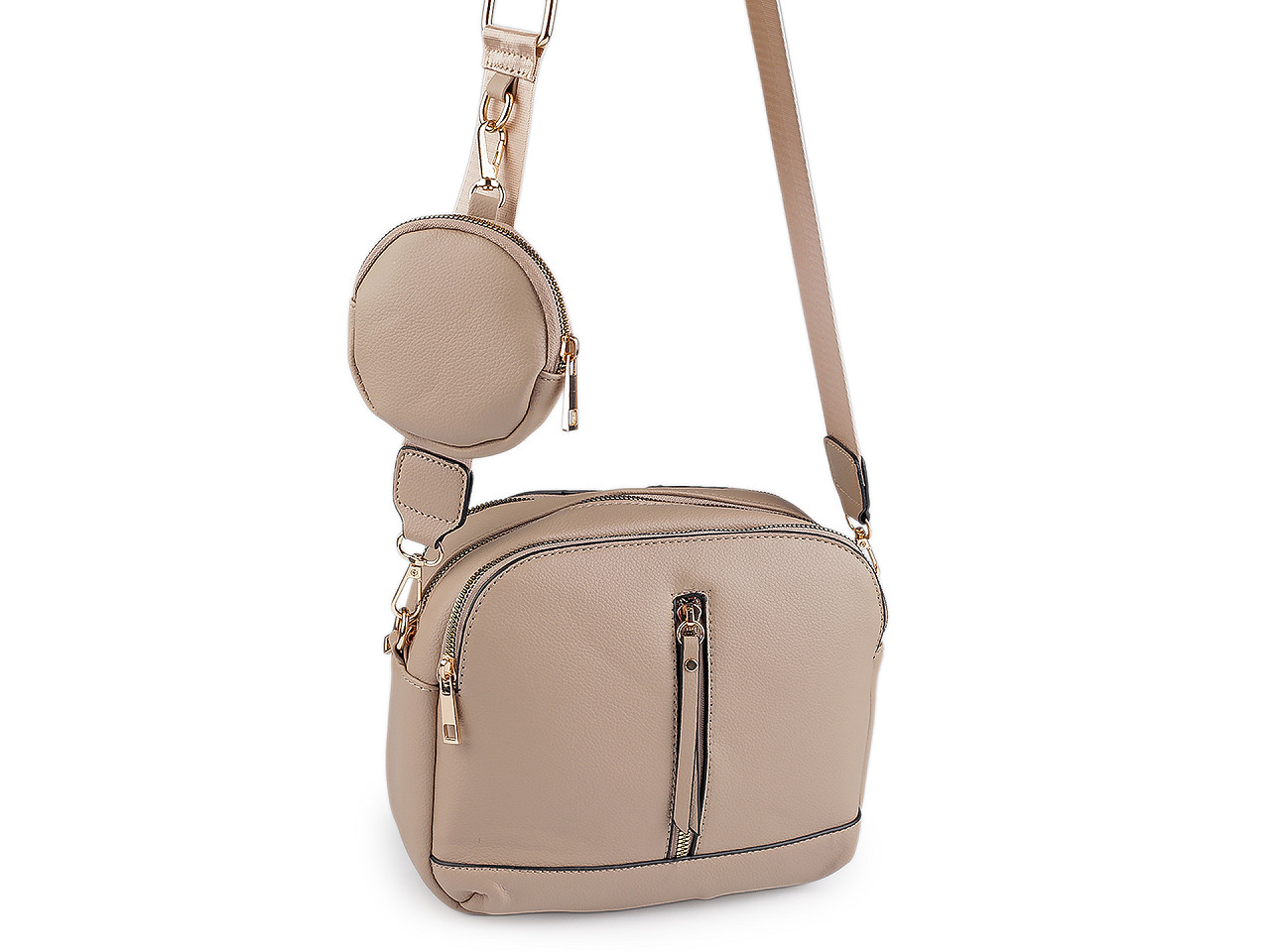 Módna kabelka sa vďaka svojmu elegantnému vzhľadu stane skvelou spoločníčkou do práce aj na večerné posedenie s priateľmi. Kabelka ponúka dostatok priestoru pre všetko, čo počas dňa potrebujete. Má tri oddelené vrecká uzatvárateľné na zips. V jednej z nich je malé vnútorné vrecko, ktoré slúži na uschovanie drobných cenností. Malé ploché vrecko je aj na prednej časti kabelky. Súčasťou kabelky je malé púzdro (Ø10 cm) a odnímateľný popruh na karabíny s plynulou reguláciou dĺžky. Puzdro môžete k popruhu pripnúť pomocou karabínky.