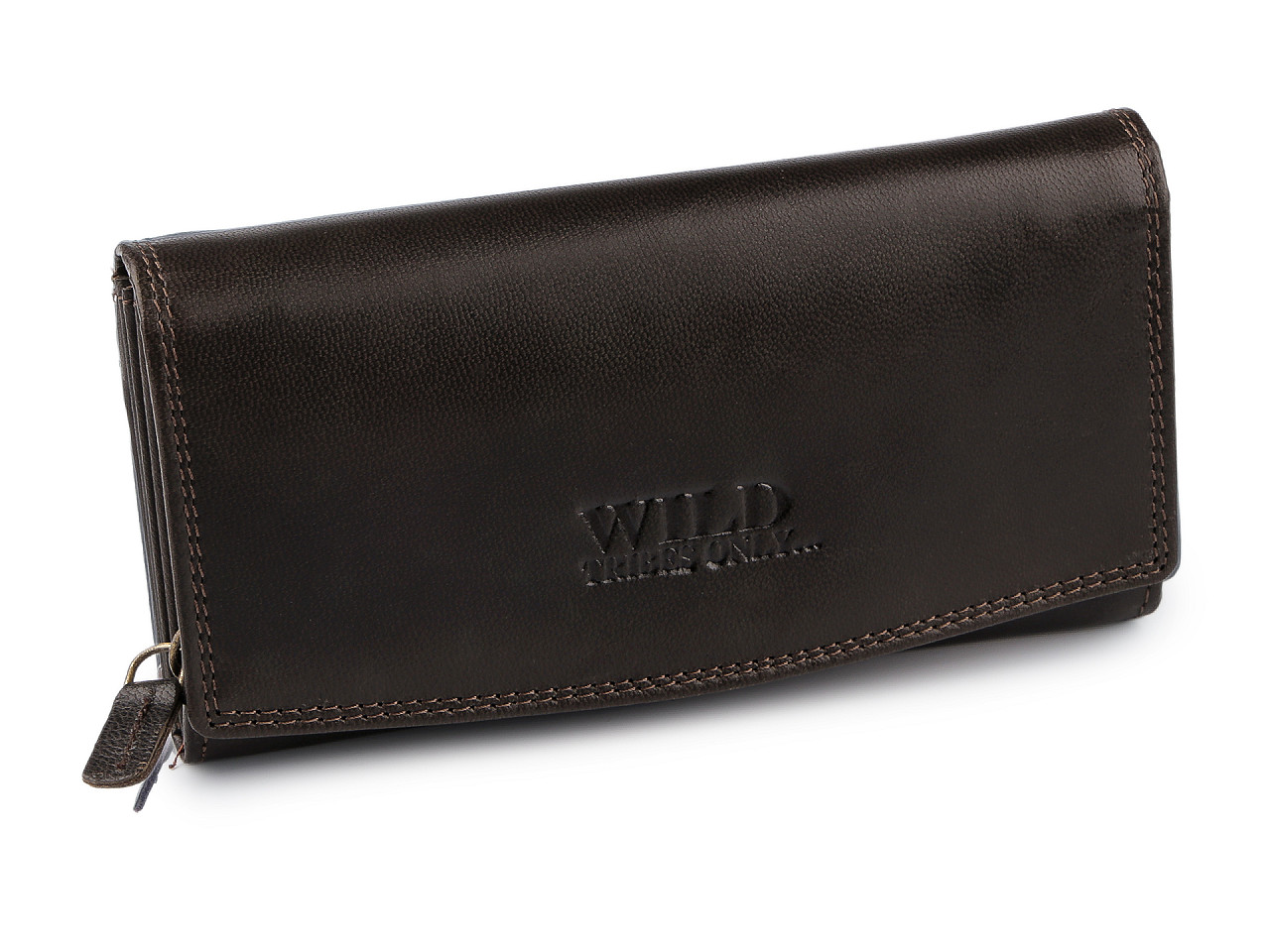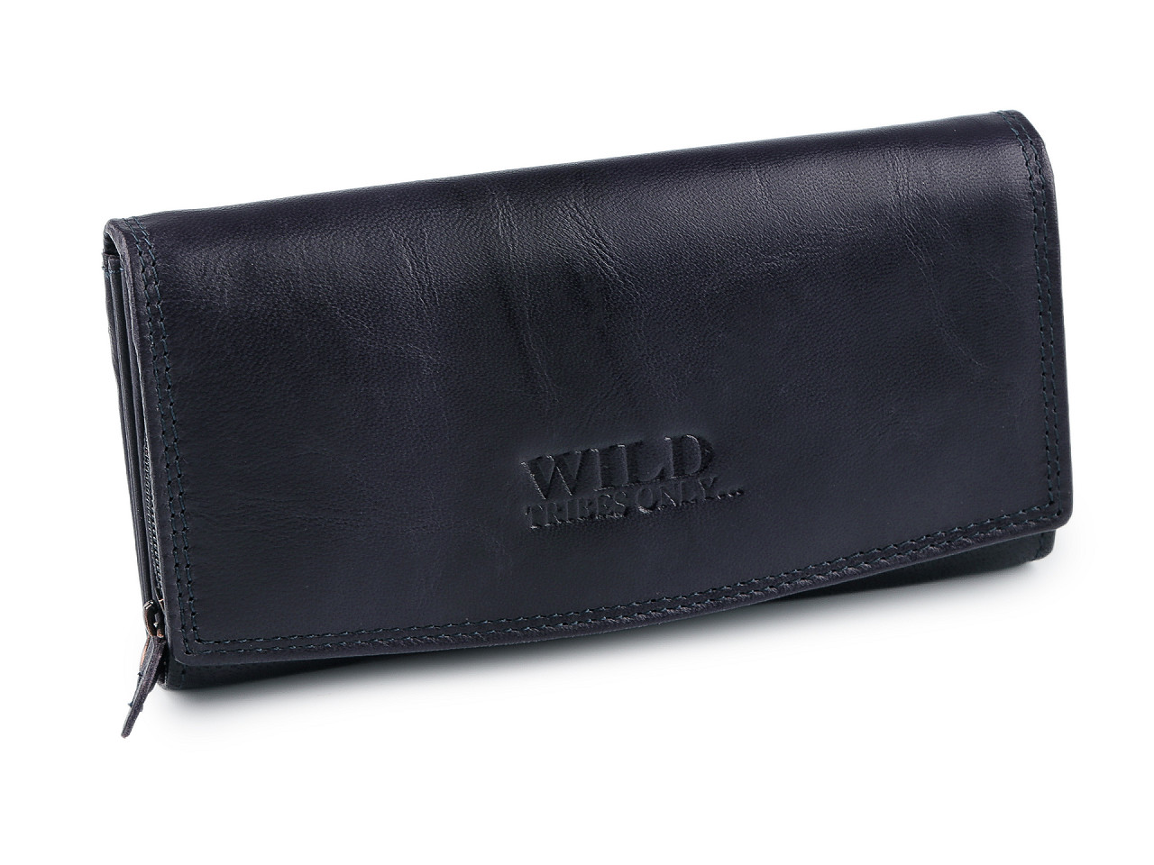 Dámska kožená peňaženka má veľmi kvalitné prevedenie a šikovný dizajn . Je veľmi príjemná na dotyk . Peňaženka má prednú stranu na klopu so zapínaním na patent. Po otvorení sa objaví 14 priehradiek na kreditné karty, 1 je priehľadná. Za priehradkami po pravej strane sú 2 dlhé priehradky, jedna sa uzatvára na zips. Po roztvorení nájdete 3 veľké vrecká rozdelené separáciou, 1 ploché vrecko a 1 vrecko na zips, slúžiace ako mincovník, ktoré je separáciou rozdelené na 2 oddiely. Na zadnej strane má peňaženka veľké ploché vrecko a rozkladacie vrecko na zips, ktoré tiež môže slúžiť ako mincovník.