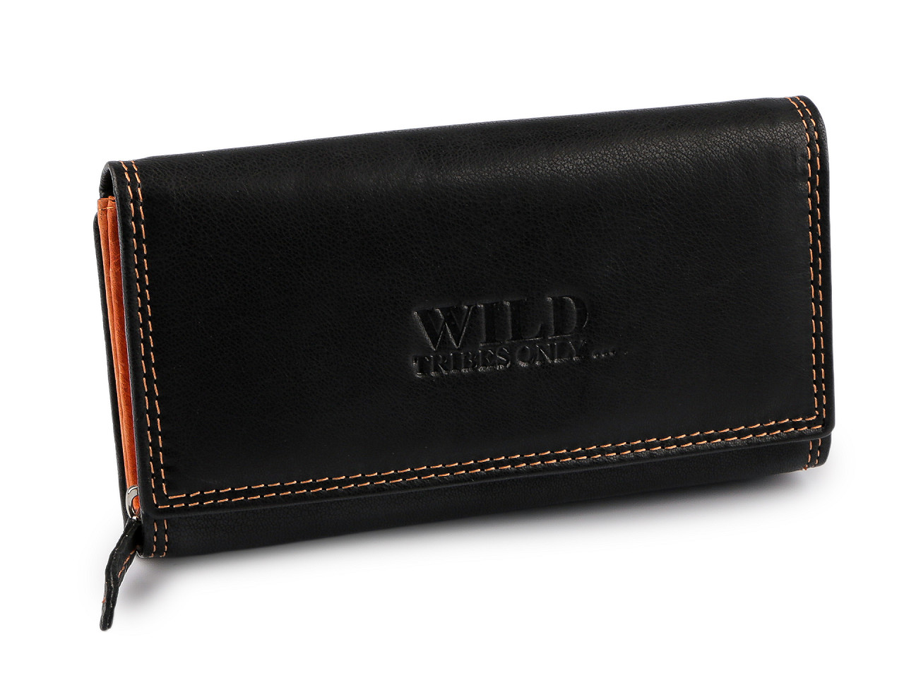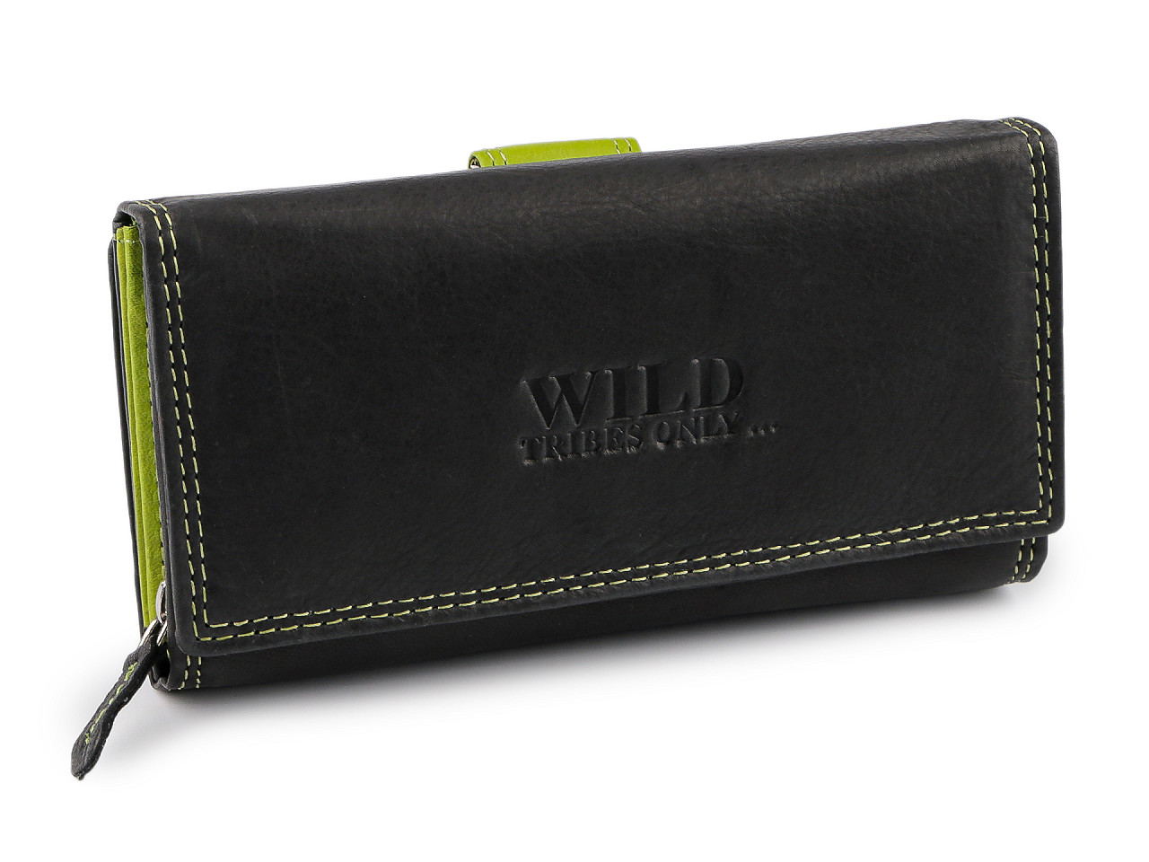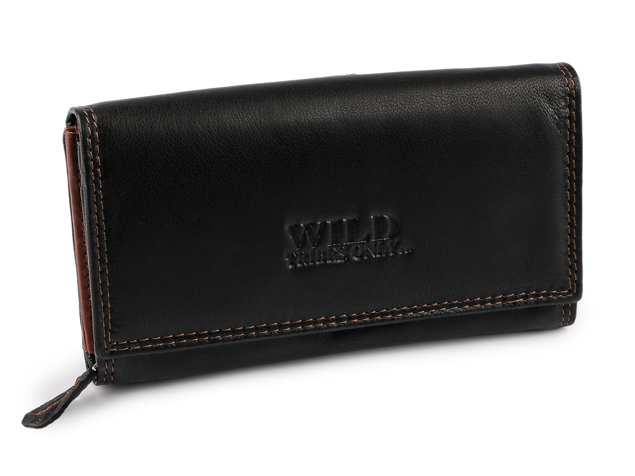 Dámska kožená peňaženka má veľmi kvalitné prevedenie a šikovný dizajn . Je veľmi príjemná na dotyk , disponuje RFID ochranou , ktorá zabráni nežiaducemu skopírovaniu dát z vašej karty. Peňaženka má prednú stranu na klopu na 2 patenty. Po otvorení sa objaví 7 priehradiek na kreditné karty, 1 je priehľadná. Uprostred peňaženky sú 2 dlhé priehradky a veľký rozkladací mincovník rozdelený separáciou na 2 vrecká, ktorý sa uzatvára na zips. Na zadnej strane sa peňaženka uzatvára zápinkou s patentom. Po otvorení je veľa priehradiek na kreditné karty, 1 je priehľadná a 2 dlhé ploché vrecká.