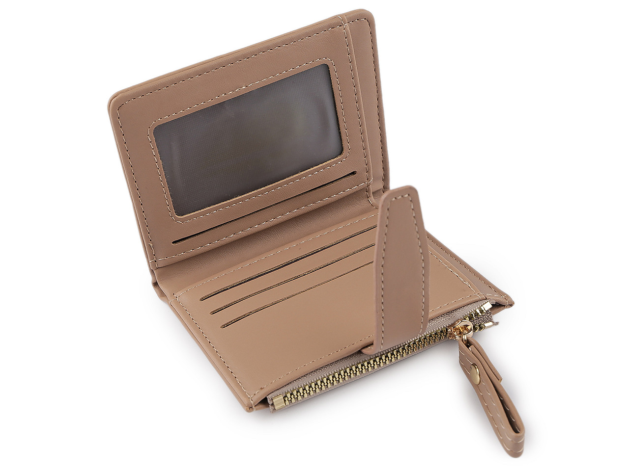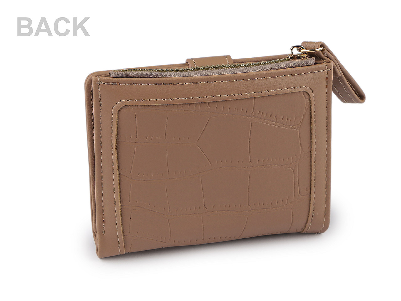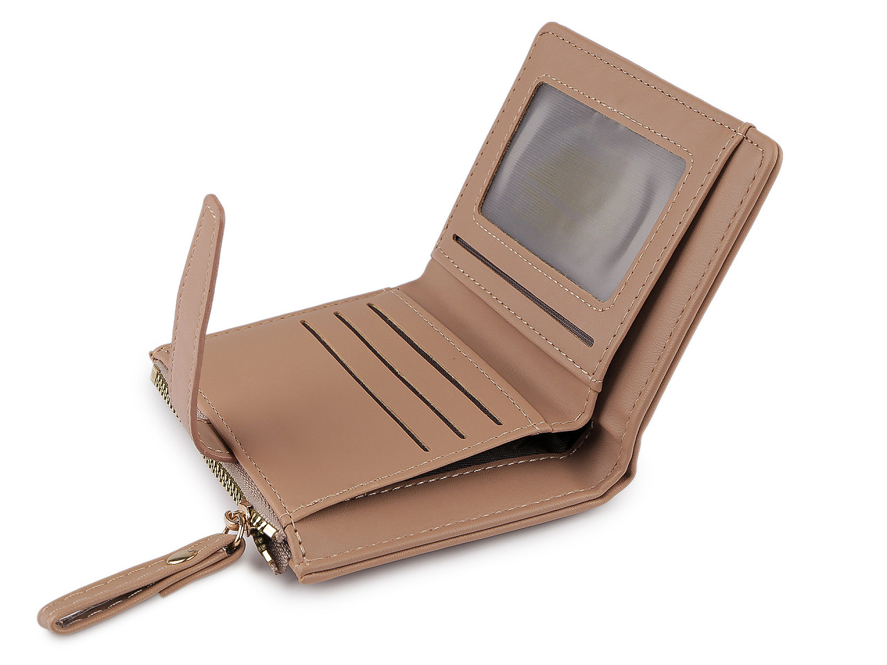 Šikovná malá peňaženka má kompaktný tvar, zmestí sa do každej kabelky. Má jemný reliéf , ktorý pridáva luxusný vzhľad. Predná strana peňaženky sa zapína na prevliekaciu pracku. Vnútri nájdete 7 priehradiek na kreditné karty, z toho je jedna priehľadná a priehradku na bankovky. Vrecko na mince sa zapína na zips s krátkym pútkom.