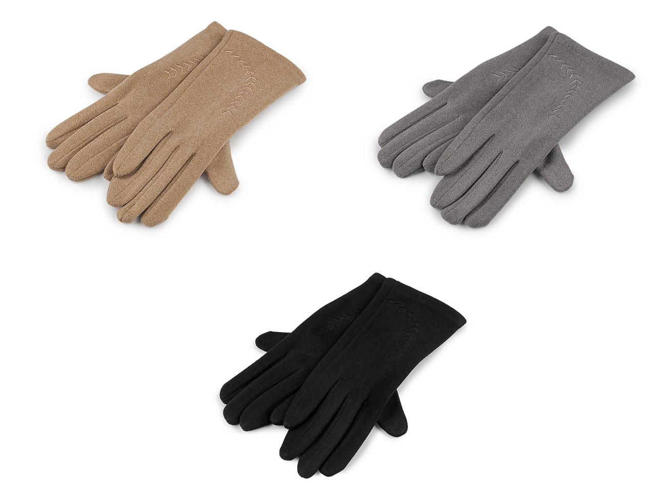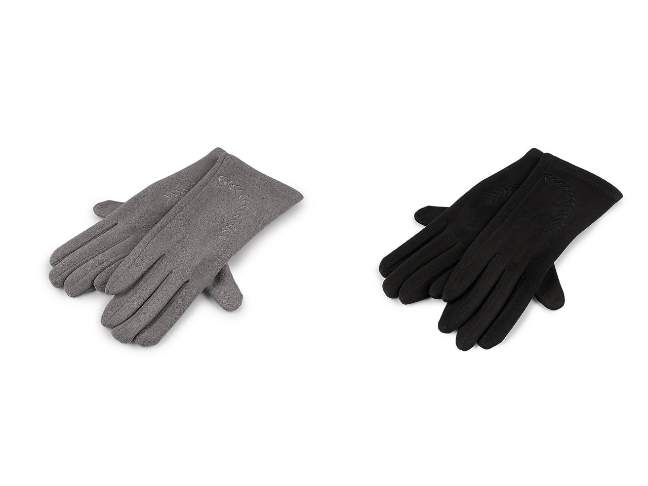 Elegantné dámske rukavice sú na vrchnej časti ozdobené výšivkou vetvičky . Výborne pružia, vďaka tomu sa perfektne naťahujú. Materiál je veľmi príjemný na dotyk, pripomína semiš, vo vnútri majú rukavičky jemný plyš. Hodia sa do miernej zimy alebo do chladnejšieho jesenného počasia. Na ukazováku pravej aj ľavej ruky je vyšitý kvet, vďaka ktorému môžete ovládať dotykové prístroje - mobil, tablet, bankomat a pod. Tieto rukavice vám poskytnú štýl a pohodlie na každý deň. Šírka je meraná na voľne položených rukaviciach uprostred (bez palca).