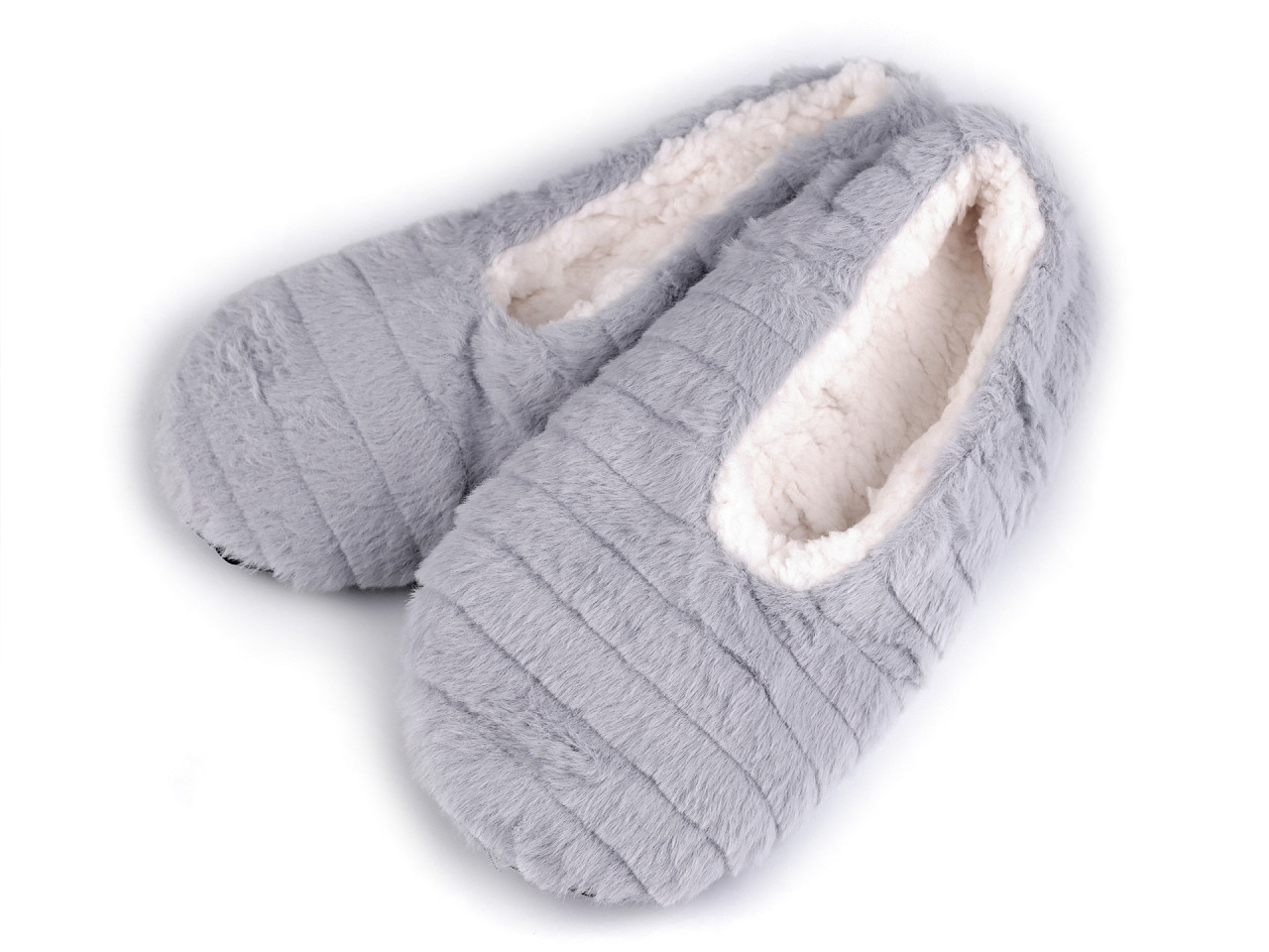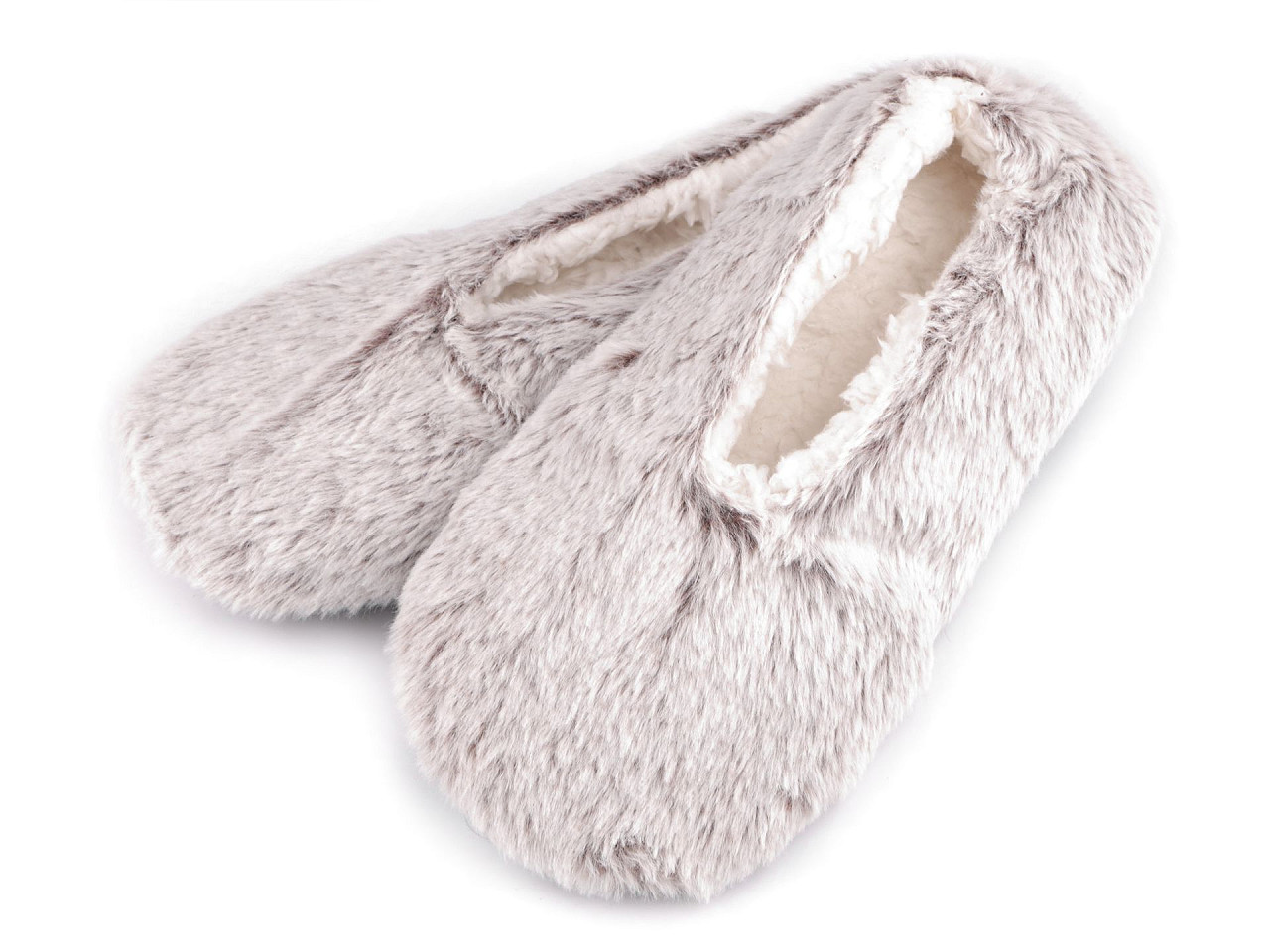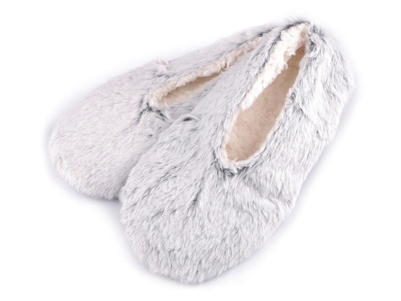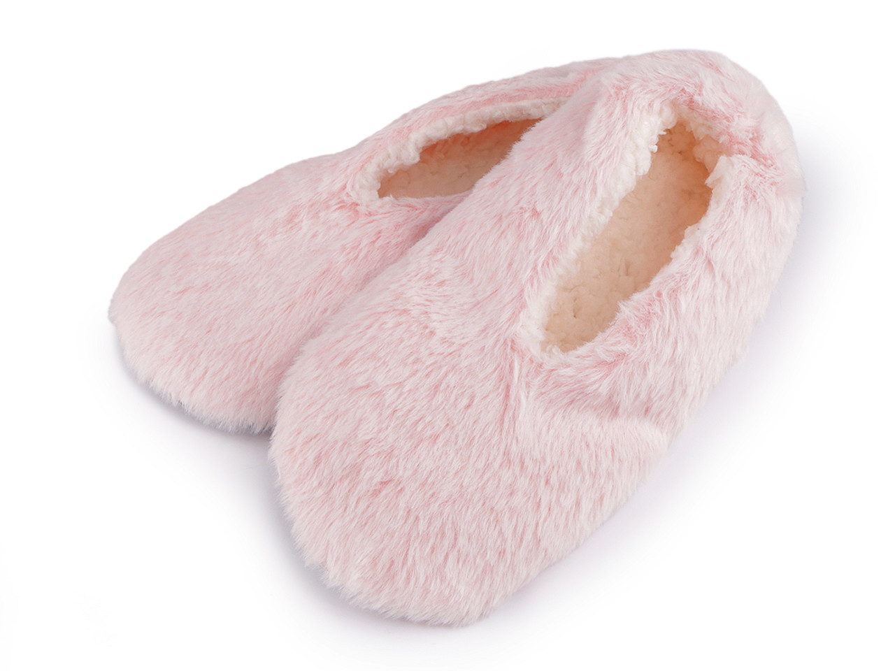 Dámske balerínky sú skvelé ako domáca obuv. Sú hebučké, z vrchnej strany majú umelú kožušinu , vo vnútri je teplá chlpatá podšívka , ktorá verne imituje vlnu. Protišmykové gumové bodky na chodidle zabránia pošmyknutiu. Upozorňujeme zákazníkov, že zloženie na štítkoch sa môže líšiť, materiál je akryl, polyamid a polyester. Vnútorná dĺžka pri veľkosti 35-38 je 23 cm, pri veľkosti 39-42 je 26 cm.