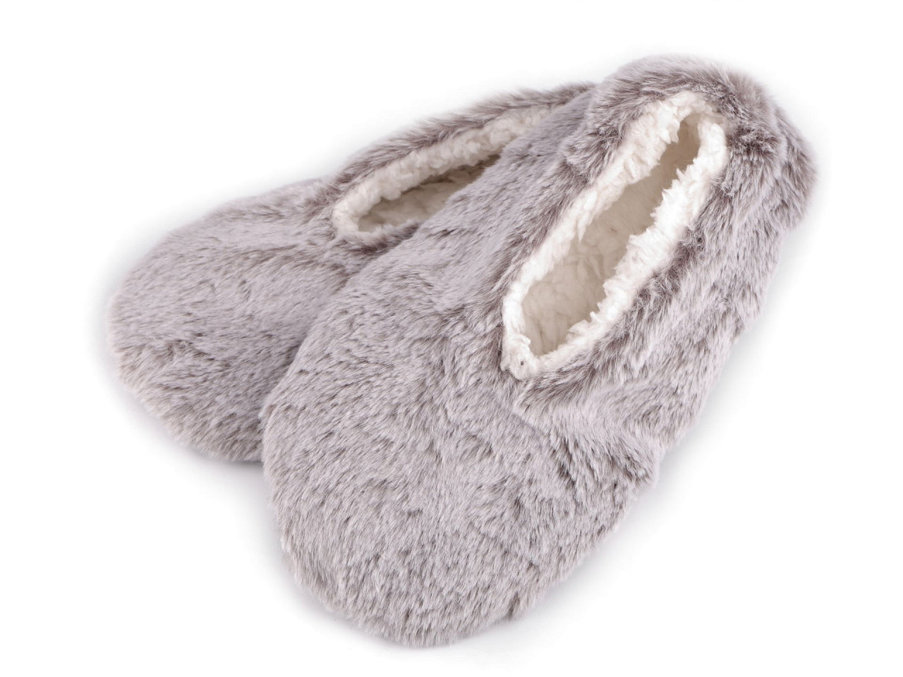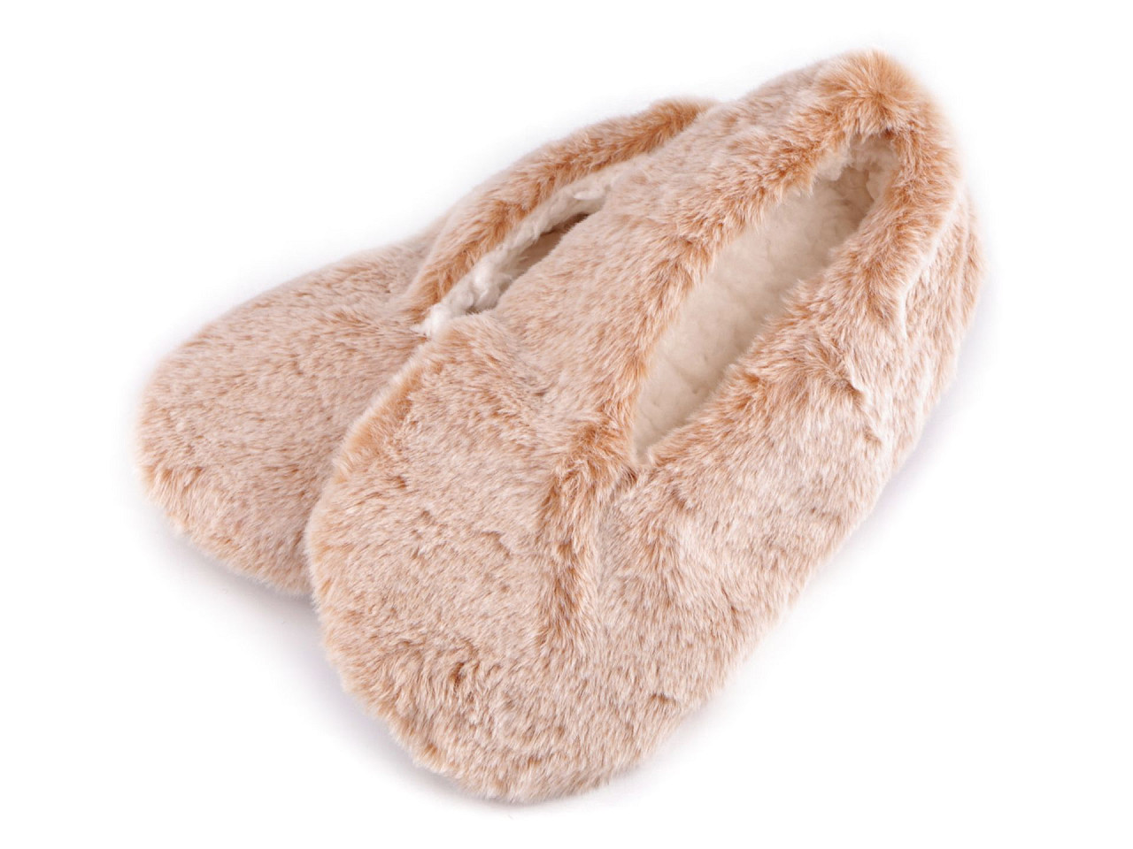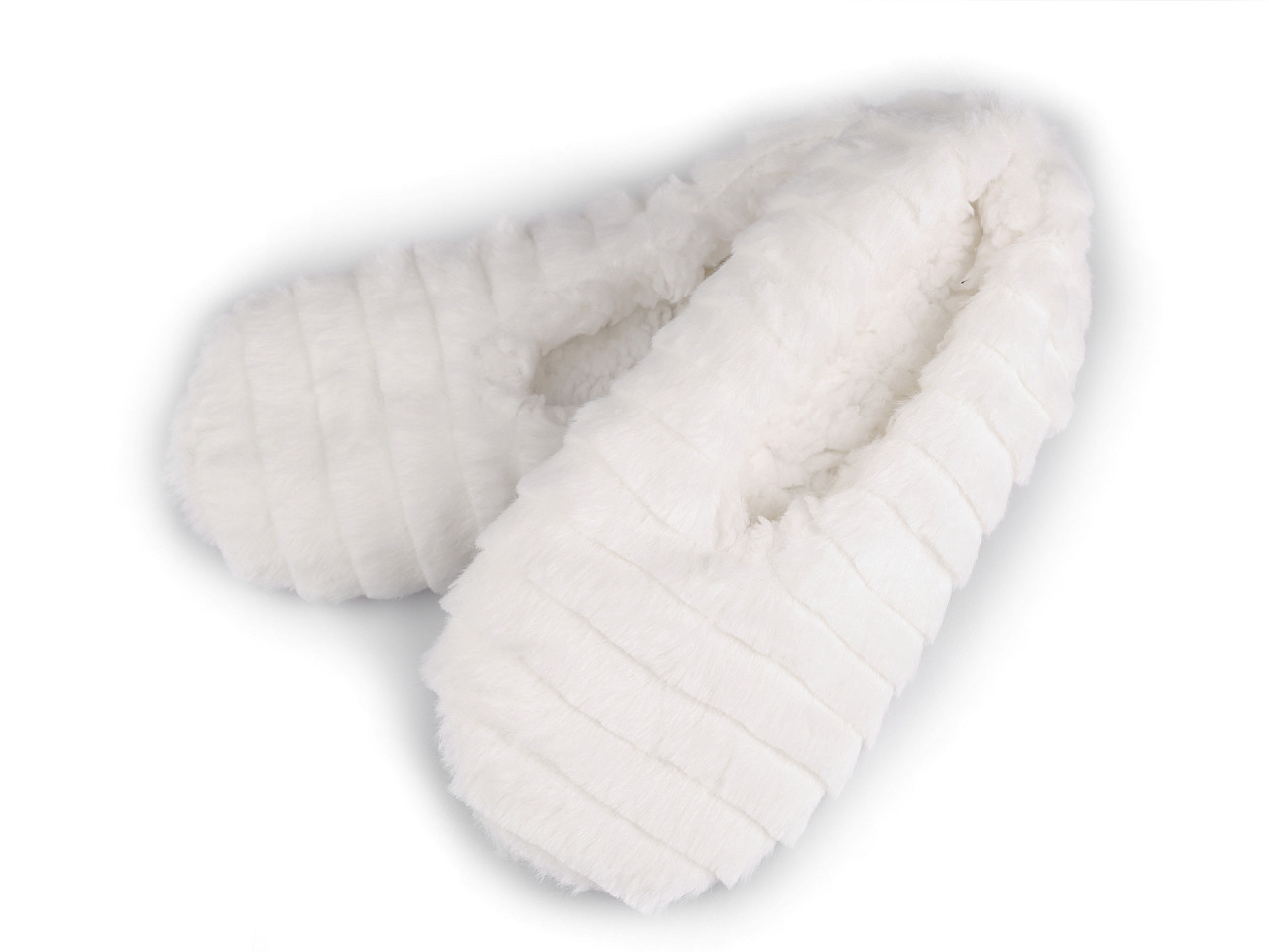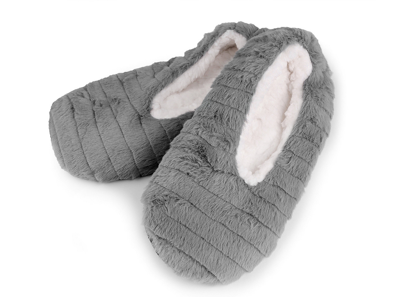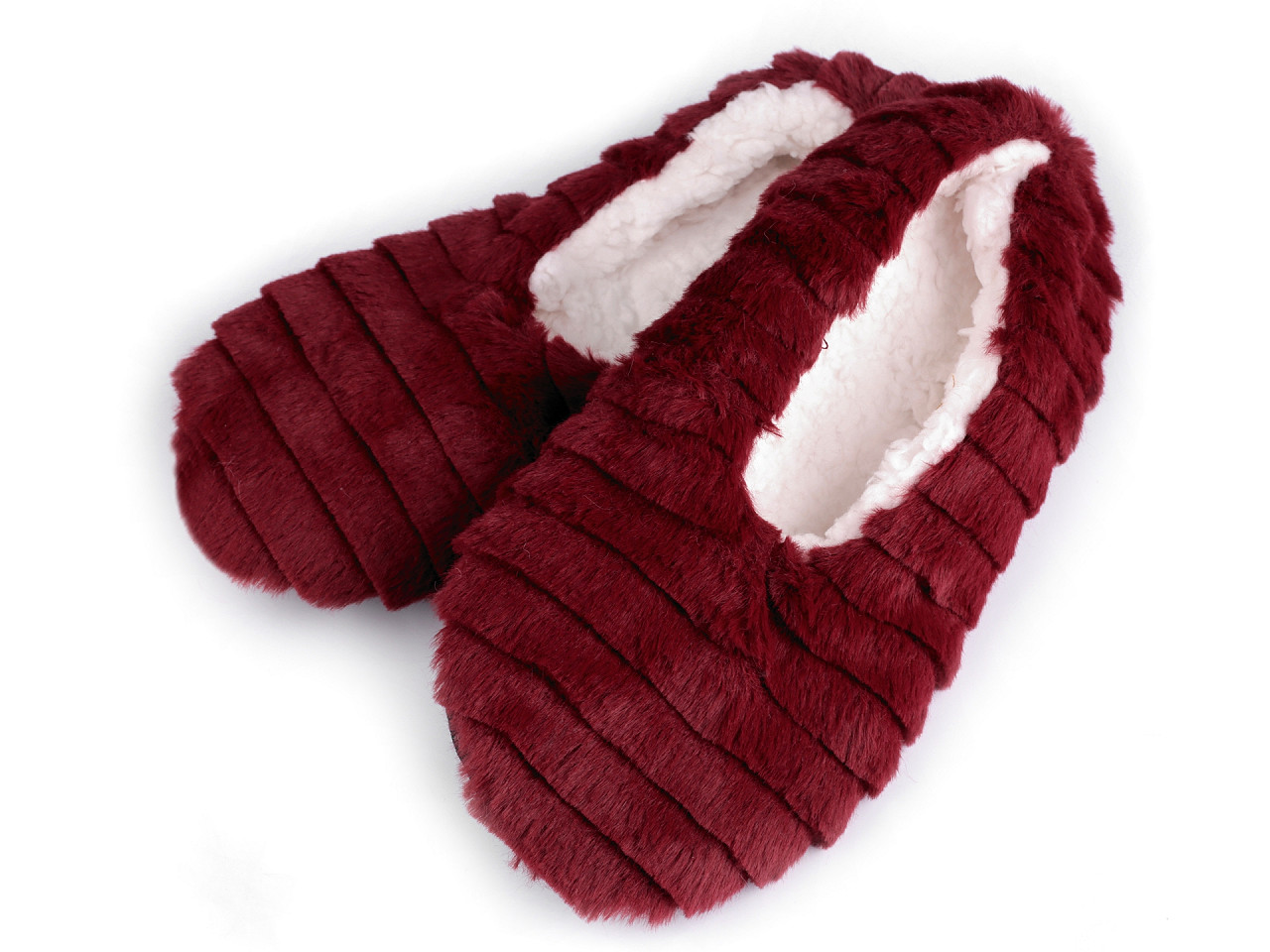 Dámske balerínky sú skvelé ako domáca obuv. Sú hebučké, z vrchnej strany majú umelú kožušinu , vo vnútri je teplá chlpatá podšívka , ktorá verne imituje vlnu. Protišmykové gumové bodky na chodidle zabránia pošmyknutiu. Upozorňujeme zákazníkov, že zloženie na štítkoch sa môže líšiť, materiál je akryl, polyamid a polyester. Vnútorná dĺžka pri veľkosti 35-38 je 23 cm, pri veľkosti 39-42 je 26 cm.