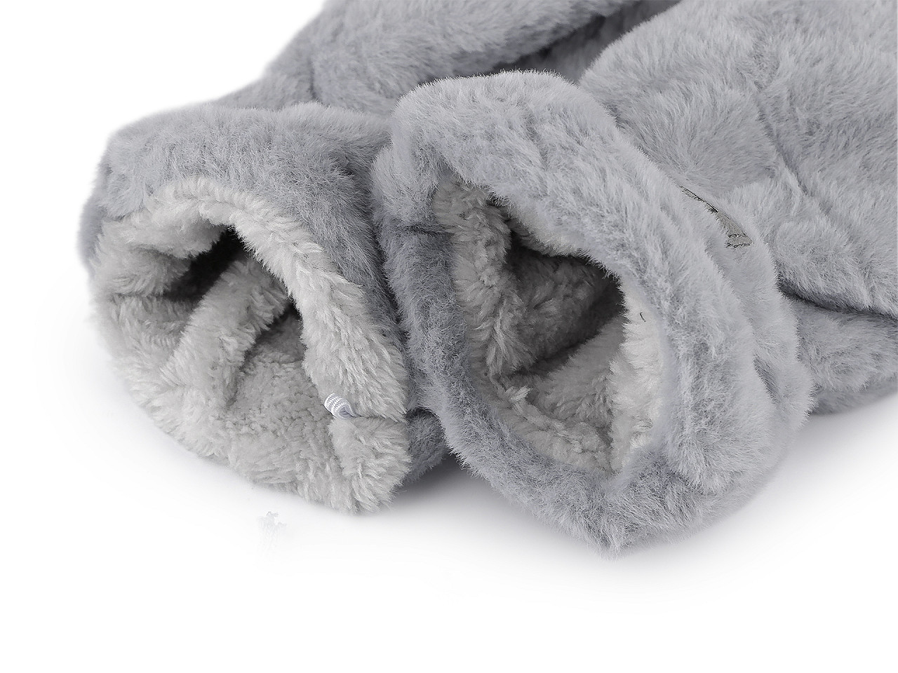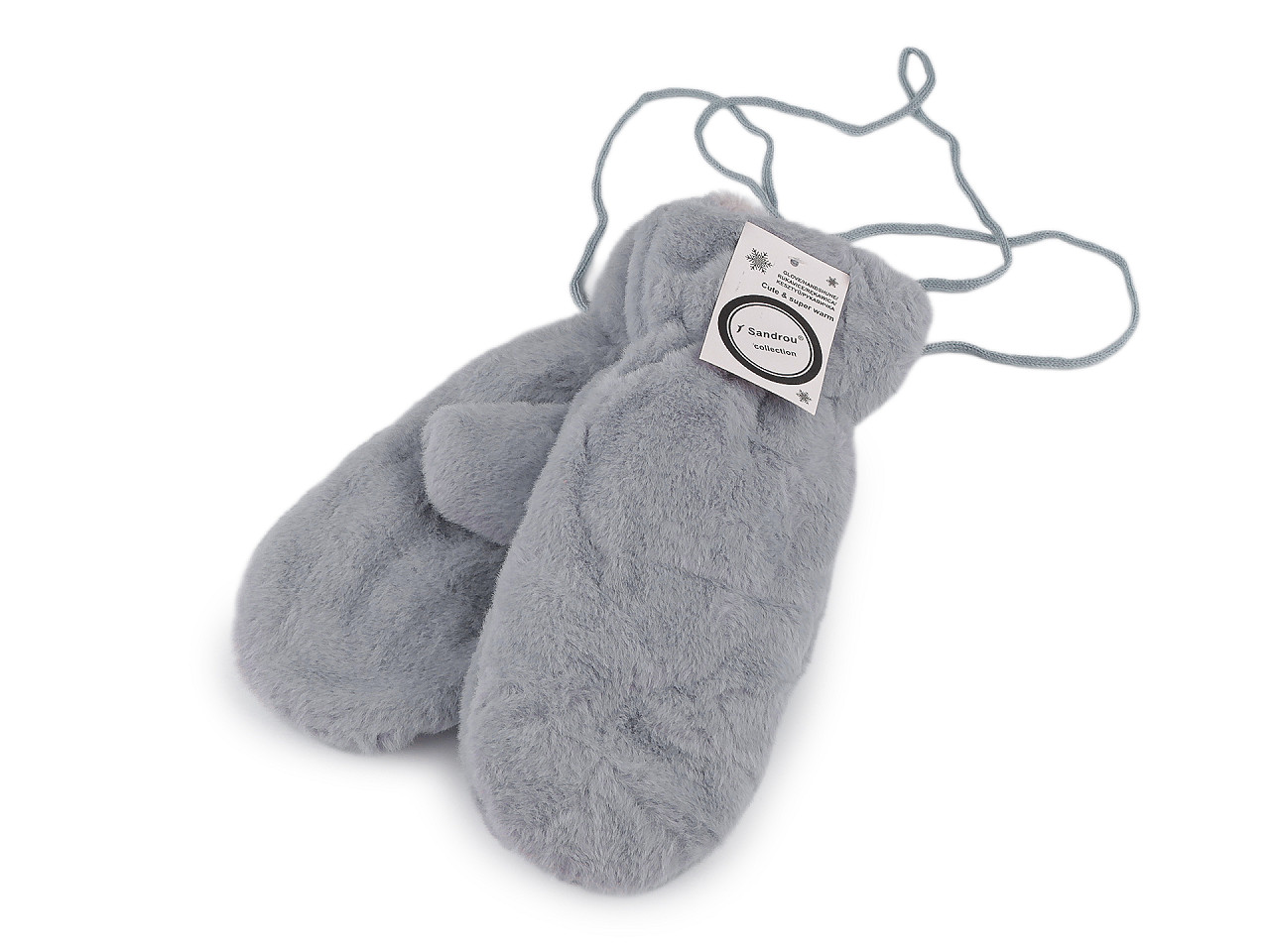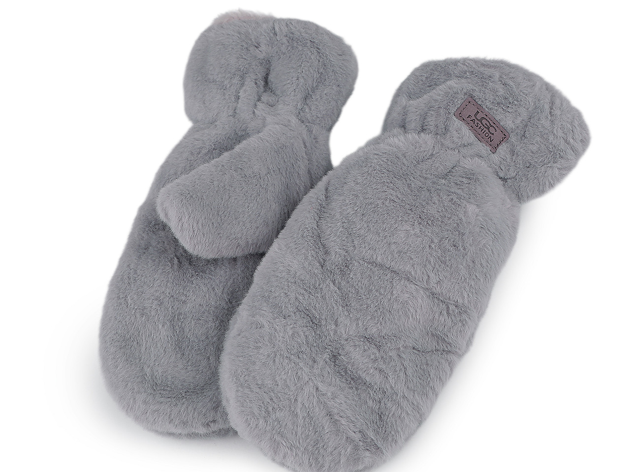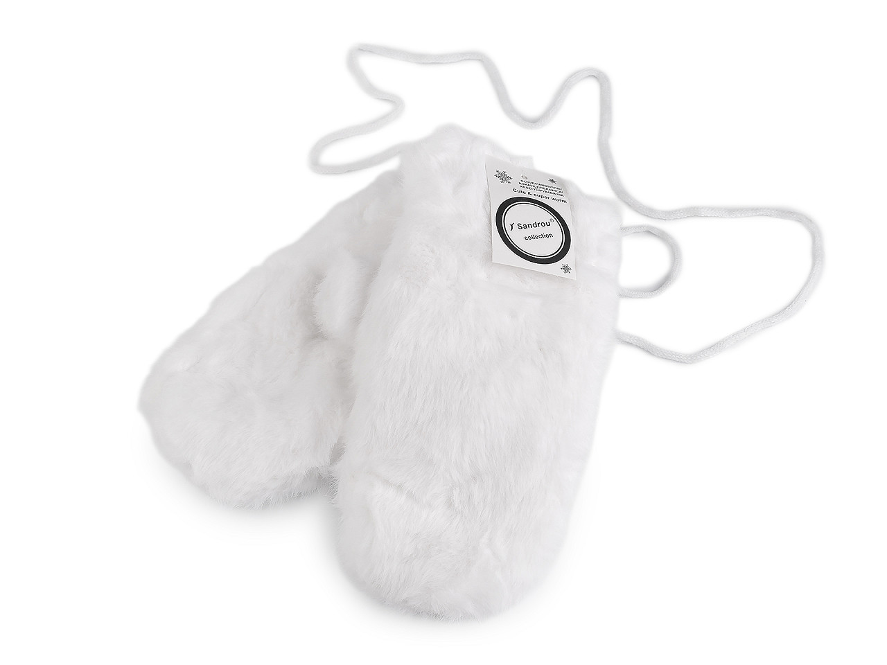 Dámske rukavice palčiaky z umelej kožušiny sú vo vnútri zateplené príjemným plyšovým kožúškom . Sú ozdobené štítkom z umelej kože. Hodia sa do zimy, ruky perfektne zahrejú . Dajú sa navzájom spojiť priloženou šnúrou dlhou 1,1 metra, ktorá sa priviaže k pútkam pri okraji rukavíc. Slúži na prevlečenie rukávmi, aby sa rukavice nestratili. Šírka je meraná na voľne položených rukaviciach uprostred (bez palca). Rukavice môžu mať zlé štítky, skutočné zloženie je polyester.