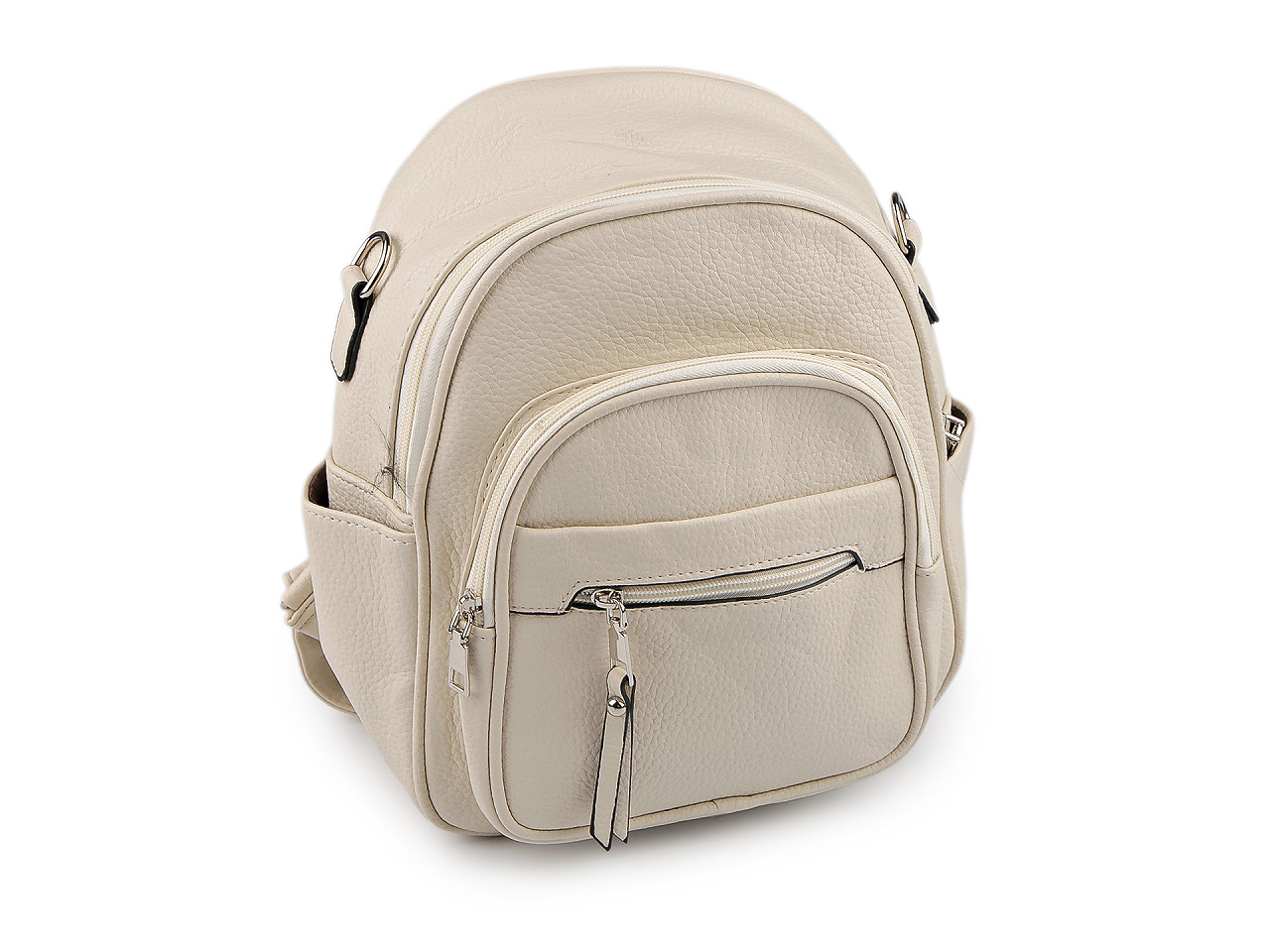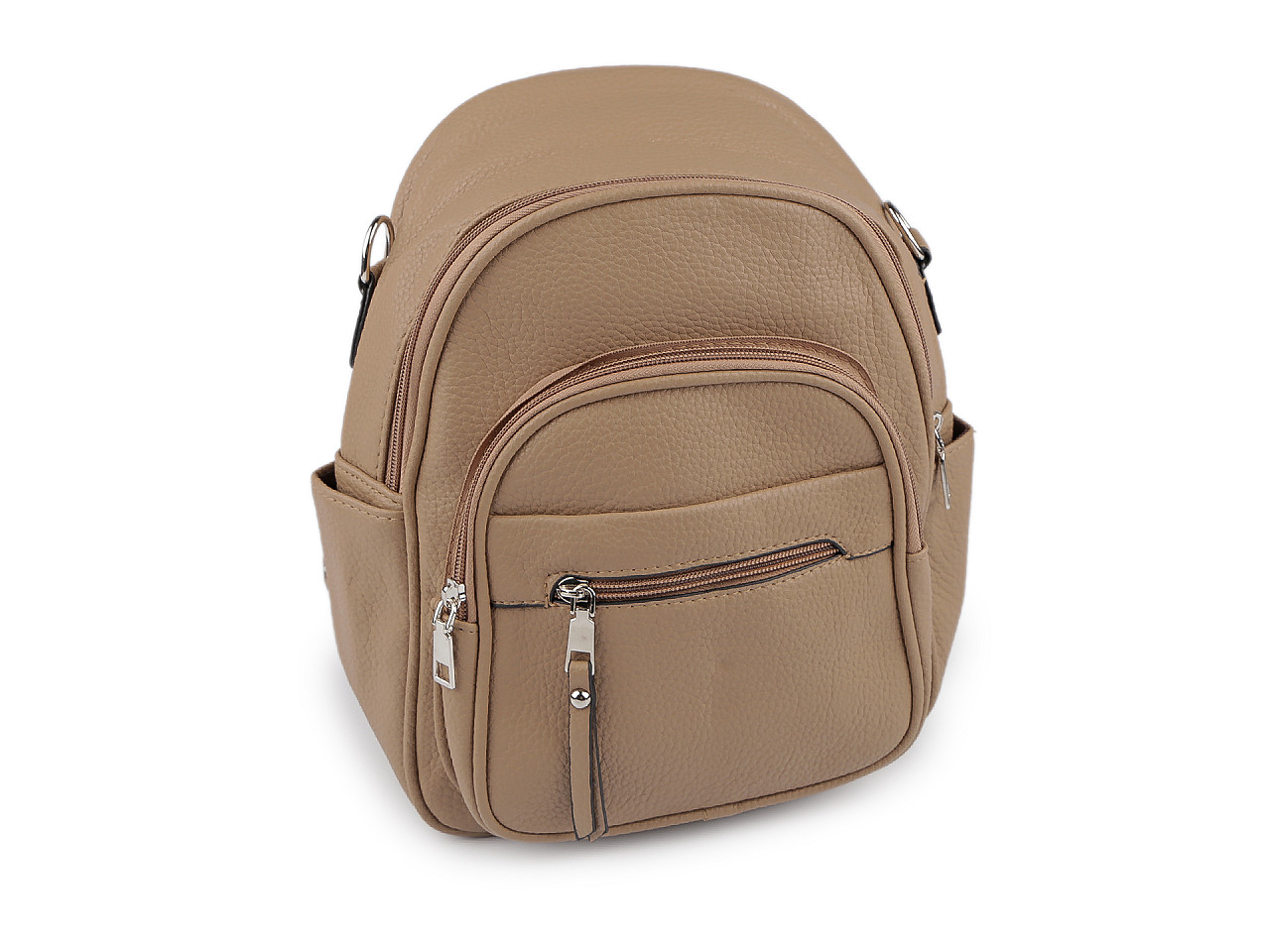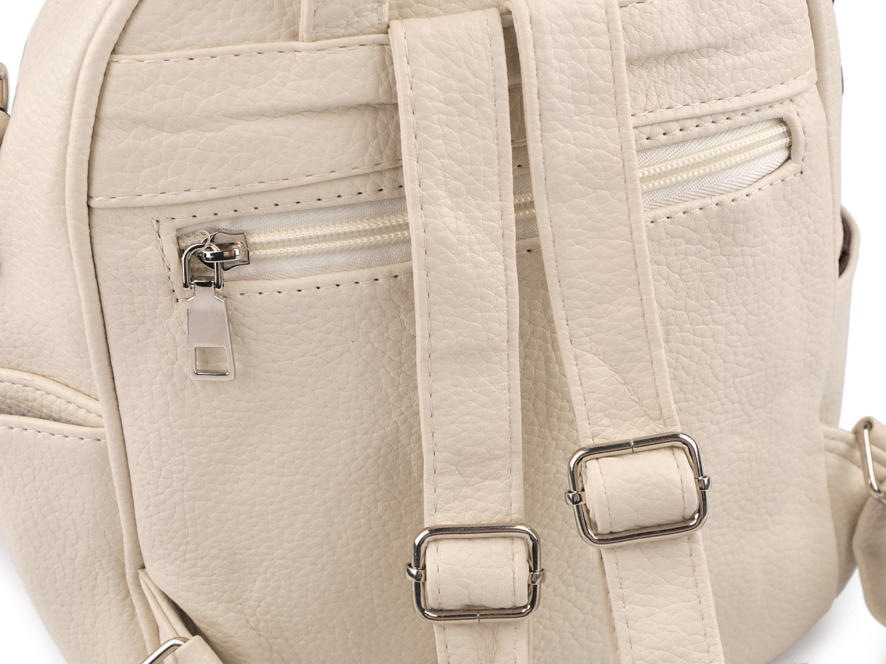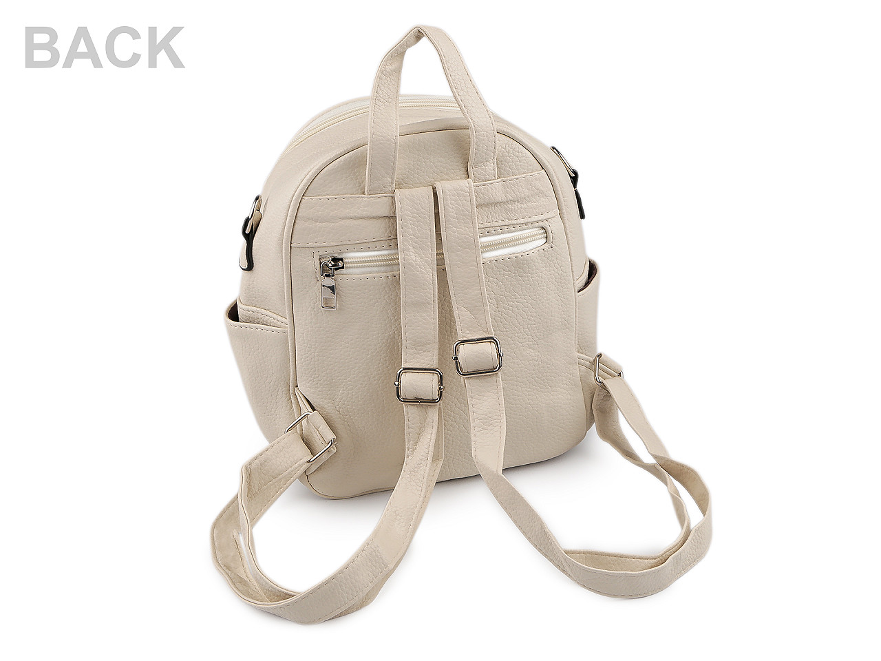 Elegantný batoh je ideálny na nosenie do mesta aj na výlety. Hlavné vrecko je na zips, je veľmi priestranné. Vnútri nájdete dve menšie postranné priehradky a vrecko na zips. Ďalšie vrecko na zips je na zadnej strane batoha a v prednej časti nájdete dve menšie vrecká na zips. Na oboch bočných stranách batoha sú priehradky (napr. na nákupnú tašku, na menší dáždnik a pod.). Ucho je pevné, krátke do ruky alebo na zavesenie. Popruhy sú dostatočne dlhé s možnosťou regulácie pre pohodlné používanie počas celého dňa.