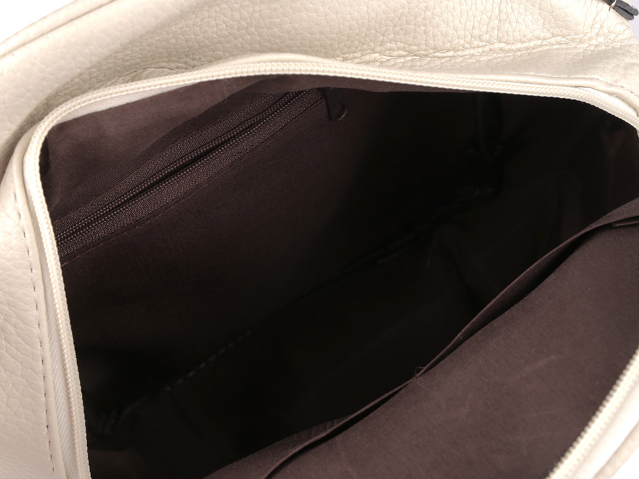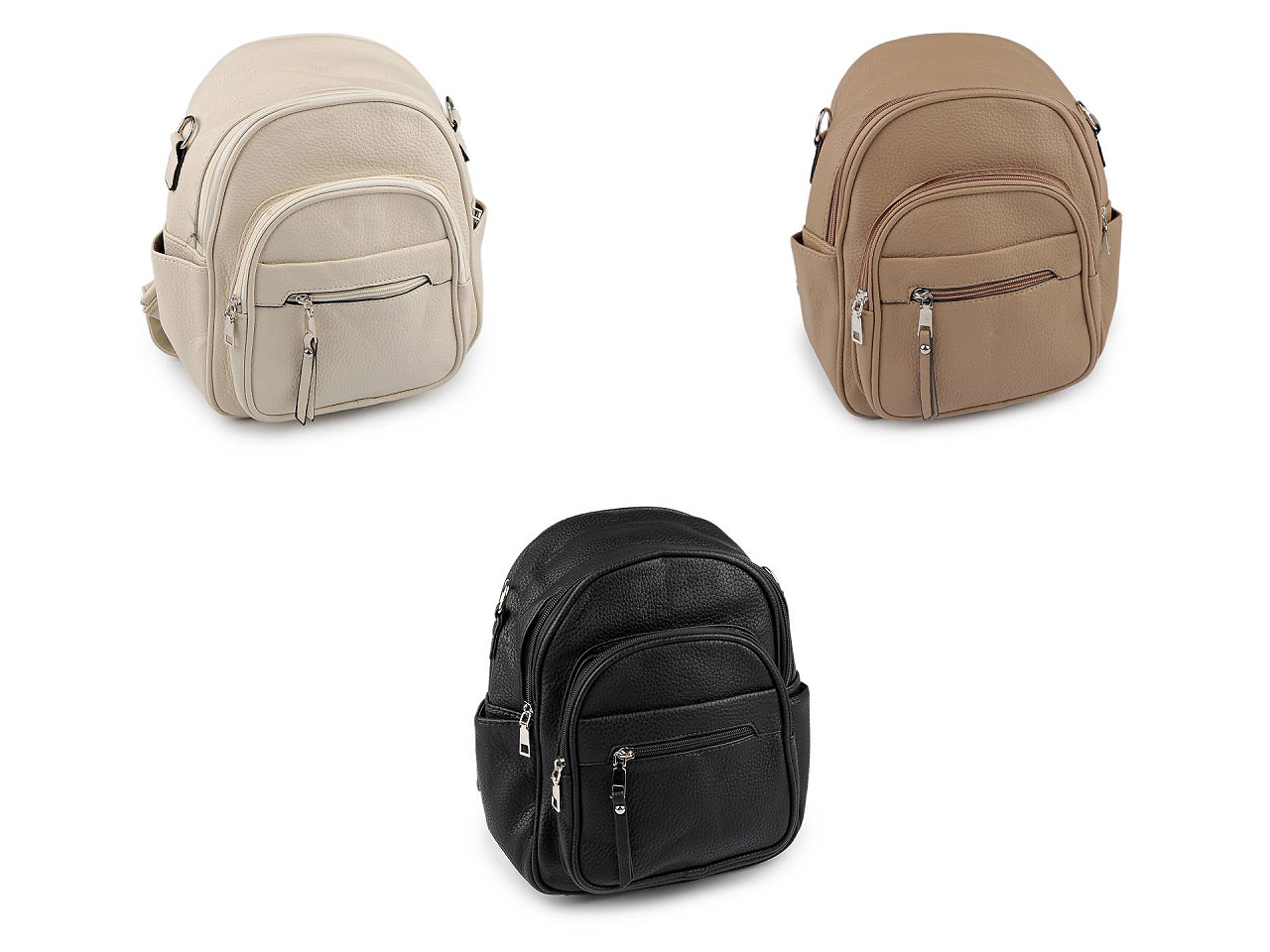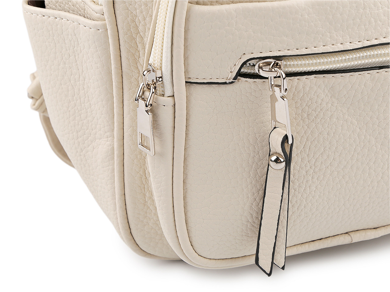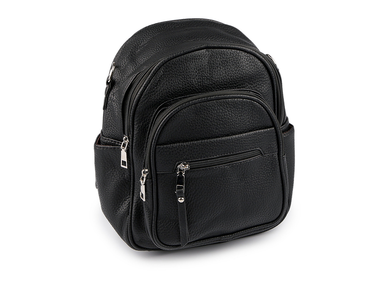 Elegantný batoh je ideálny na nosenie do mesta aj na výlety. Hlavné vrecko je na zips, je veľmi priestranné. Vnútri nájdete dve menšie postranné priehradky a vrecko na zips. Ďalšie vrecko na zips je na zadnej strane batoha a v prednej časti nájdete dve menšie vrecká na zips. Na oboch bočných stranách batoha sú priehradky (napr. na nákupnú tašku, na menší dáždnik a pod.). Ucho je pevné, krátke do ruky alebo na zavesenie. Popruhy sú dostatočne dlhé s možnosťou regulácie pre pohodlné používanie počas celého dňa.