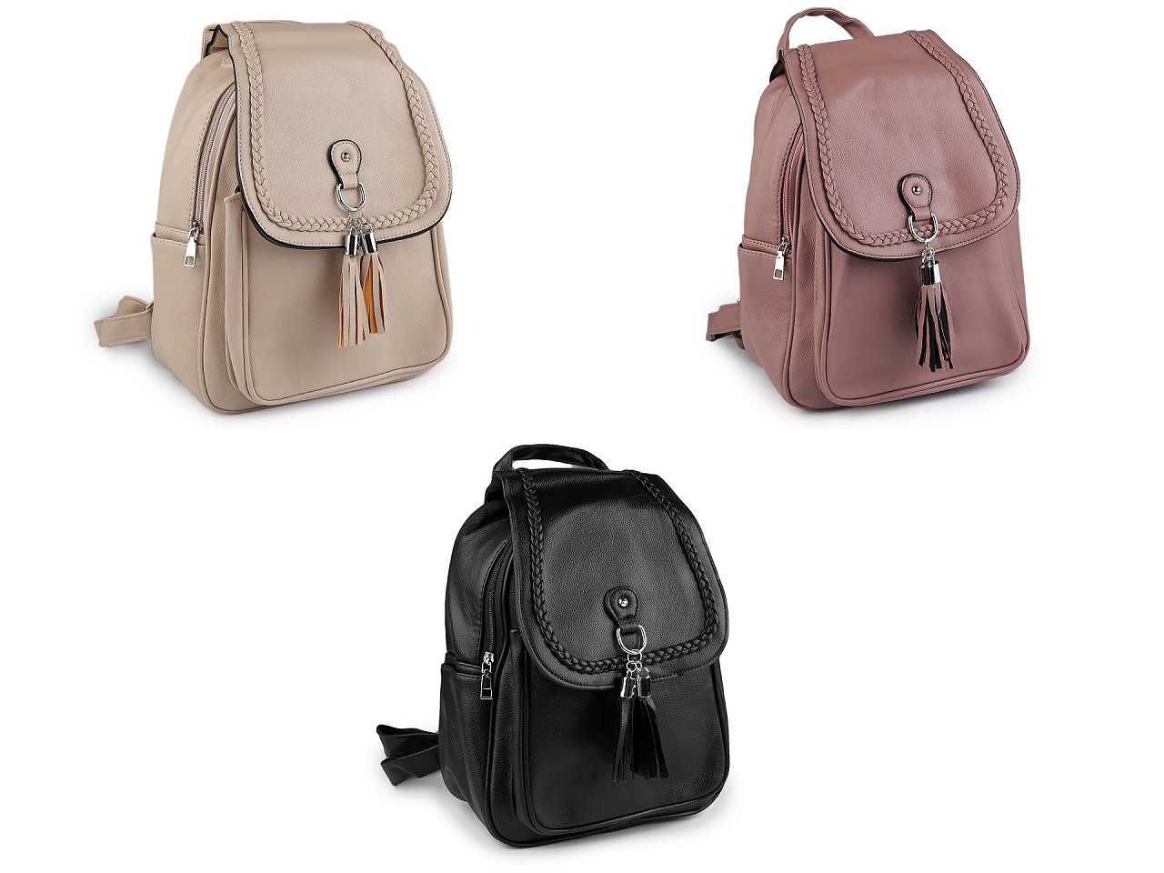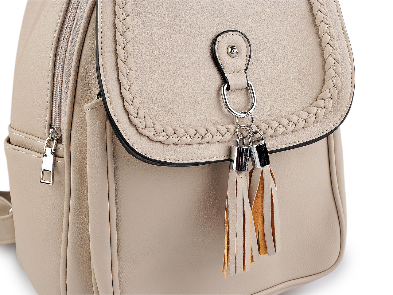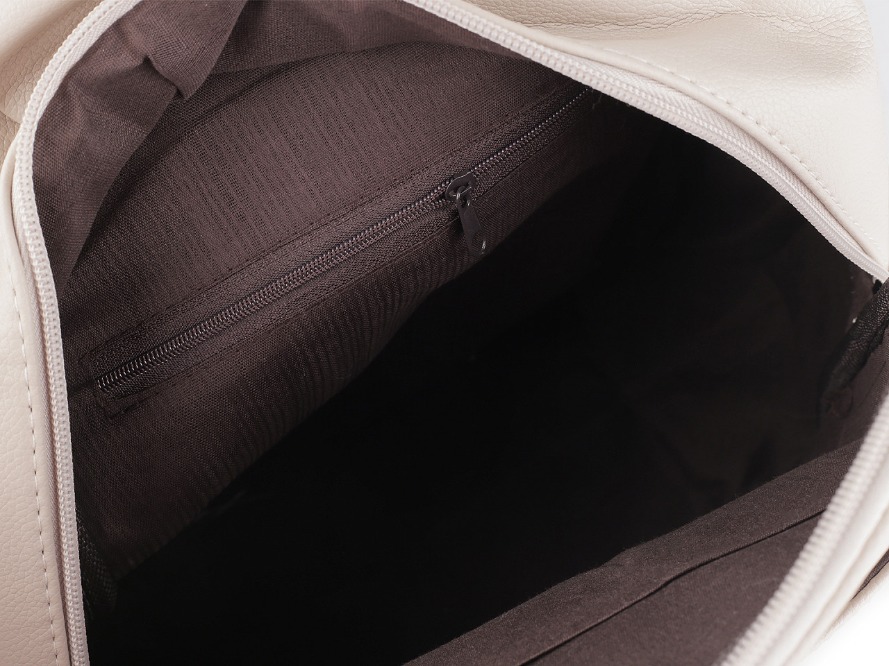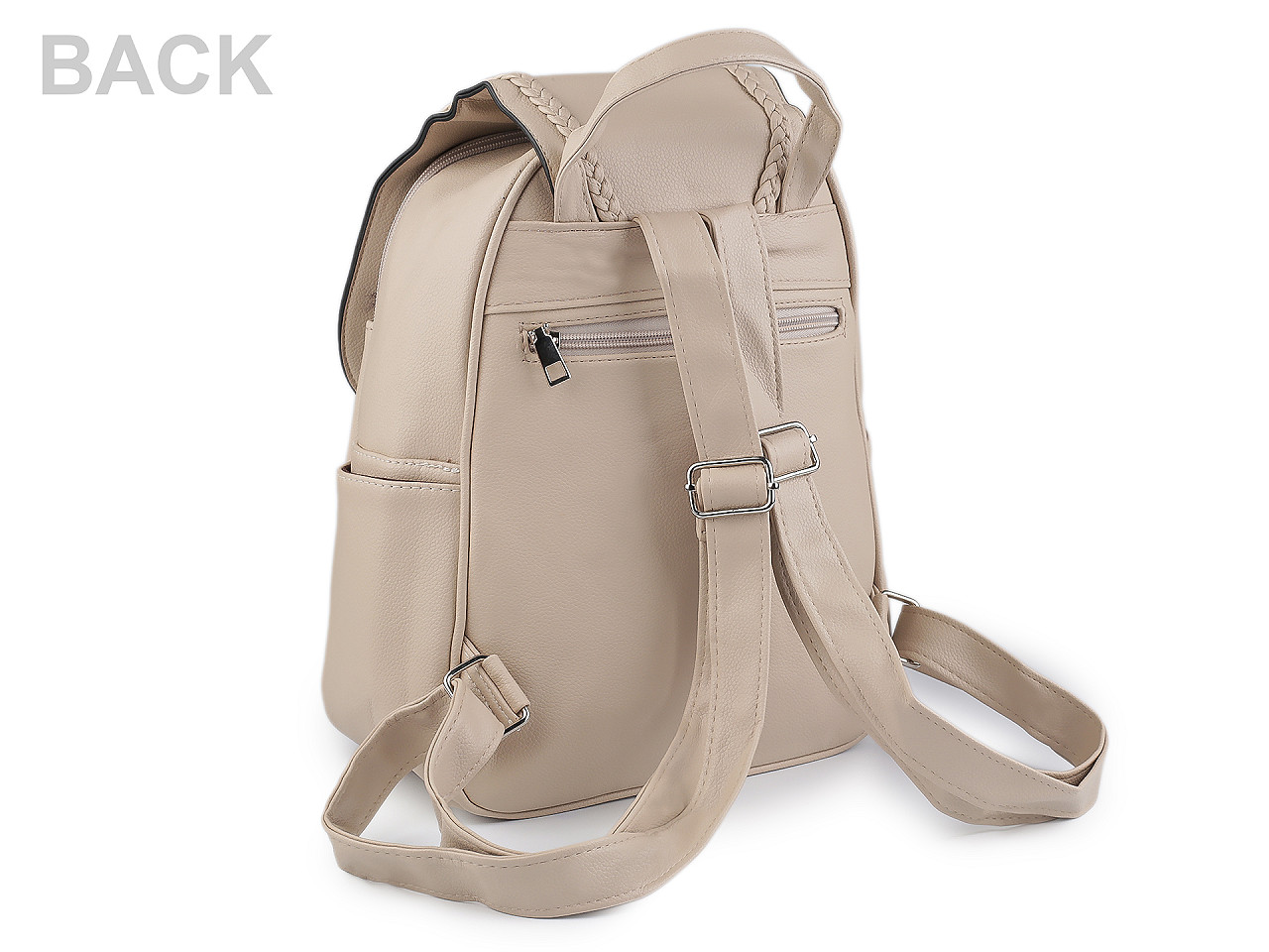 Elegantný batoh je ideálny na nosenie do mesta aj na výlety. Minimalistický štýl obohatený o jemné zdobenie dodáva batohu sofistikovaný vzhľad. Hlavné vrecko je na zips, je veľmi priestranné. Vnútri nájdete dve menšie postranné priehradky a vrecko na zips. Ďalšie vrecko na zips je na zadnej strane batoha a v prednej časti je vrecko s magnetickým zapínaním. Na oboch bočných stranách batoha sú priehradky (napr. na nákupnú tašku, na menší dáždnik a pod.). Ucho je pevné, krátke do ruky alebo na zavesenie. Popruhy sú dostatočne dlhé s možnosťou regulácie pre pohodlné používanie počas celého dňa.