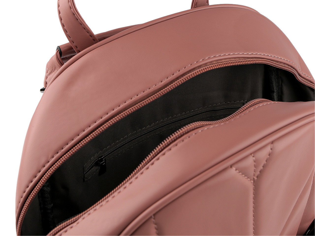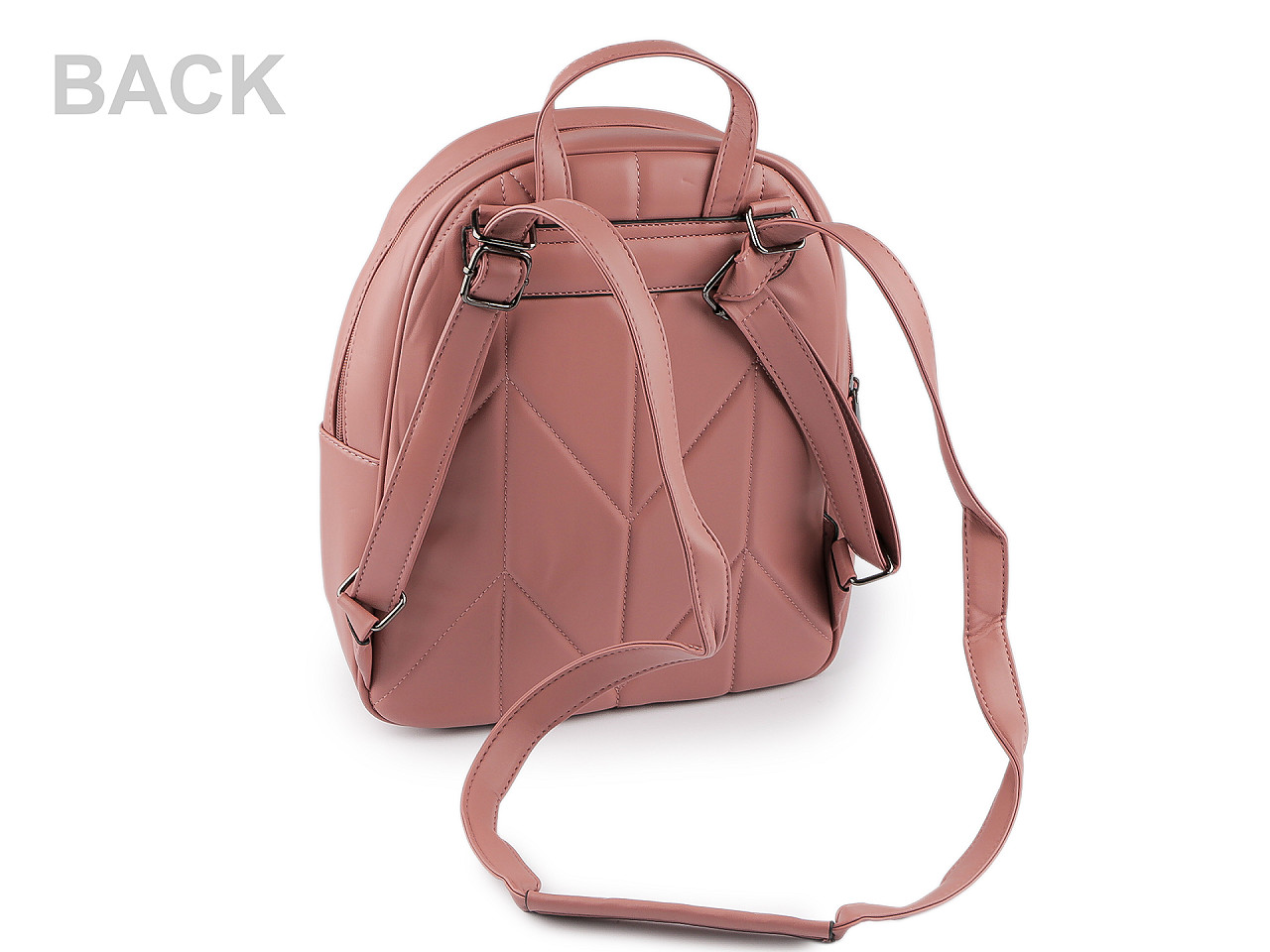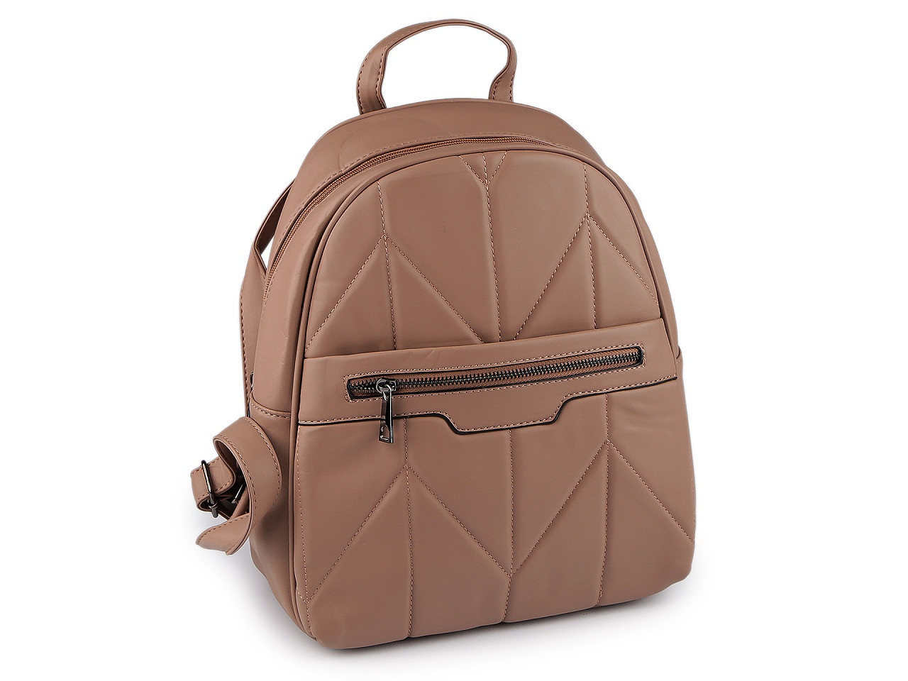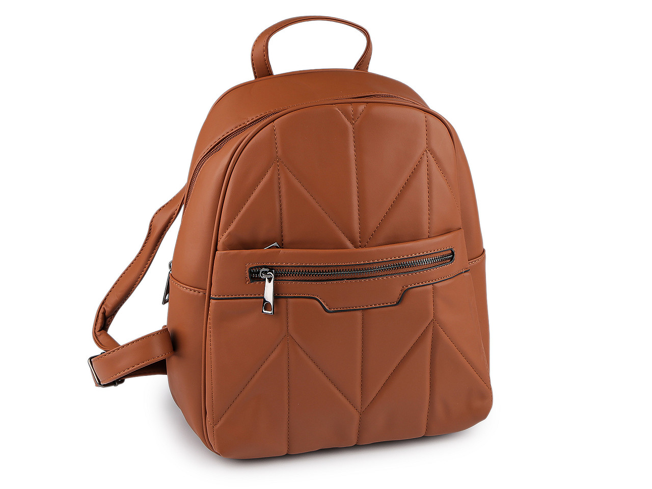 Štýlový mestský batoh ozdobený štepovaním sa dá ľahko premeniť na crossbody kabelku. Skvele doplní váš outfit. Vďaka syntetickému materiálu, ktorý vyzerá ako koža, má batoh punc kvality aj vkusnej originality . Je ideálny na nosenie do mesta, kancelárie aj na výlety. Hlavné vrecko je na zips, je veľmi priestranné. Vnútri má vrecko na zips na drobnosti alebo mobil a 2 vrecká na uloženie plochých predmetov. Na prednej strane batoha sú ďalšie 2 vrecká na zips. Ucho je pevné, krátke do ruky či na zavesenie. Popruhy sú dostatočne dlhé s možnosťou regulácie pre pohodlné používanie počas celého dňa. Hore sú popruhy v kovových prievlakoch, ktoré slúžia na pretiahnutie popruhov na nosenie krížom ako crossbody kabelka. Dno batoha je opatrené kovovými klinčekmi, ktoré ho chránia pred poškodením.