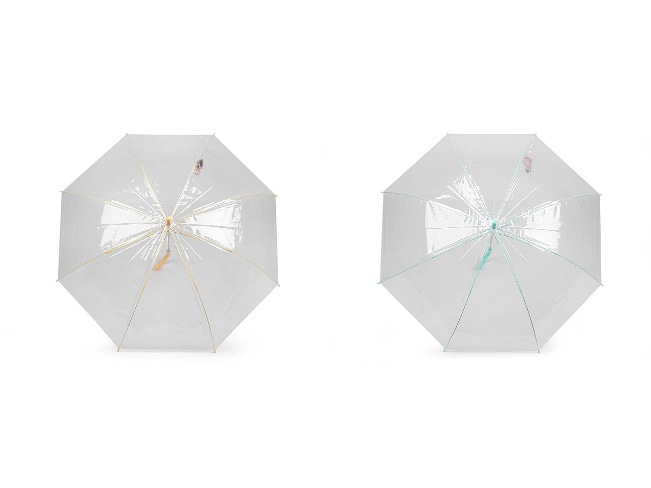 Dámsky priehľadný dáždnik s farebnou konštrukciou je vyrobený z pevného materiálu. Jeho priehľadný dizajn umožňuje lepší výhľad, bez obmedzujúcej clony dáždnika. Dáždnik je vystreľovací , má klasickú tyč zakončenú pevnou rukoväťou. Konštrukcia dáždnika je z ohybných plastových lamiel a tvorí osem polí. Dáždnik má klasické zapínanie na patentku. Hĺbka dáždnika je 25 cm.
