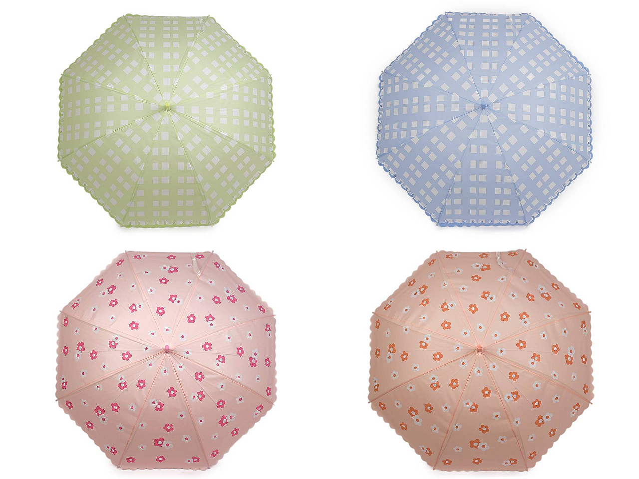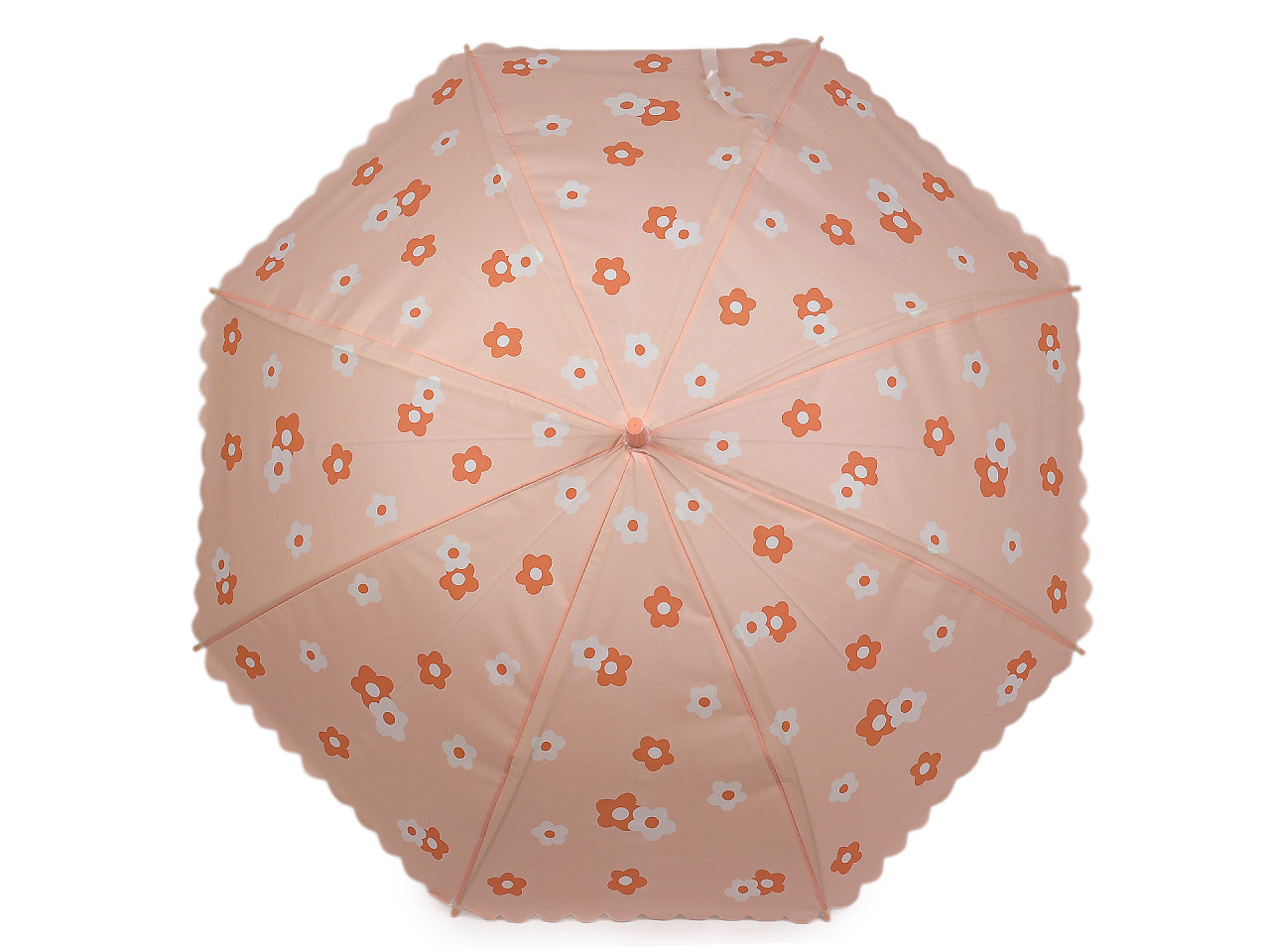 Dámsky / dievčenský vystreľovací dáždnik s ozdobným oblúčikovým okrajom je ideálnym doplnkom, keď chcete zostať v suchu. Dáždnik je vystreľovací, konštrukciu má z kovového drôtu a pružných lamiel, tvoria osem polí. Vďaka nim je veľmi pevný, neohne sa ani za najväčšieho nečasu. Klasická tyč je zakončená pevnou rukoväťou. Hĺbka dáždnika je 23 cm.