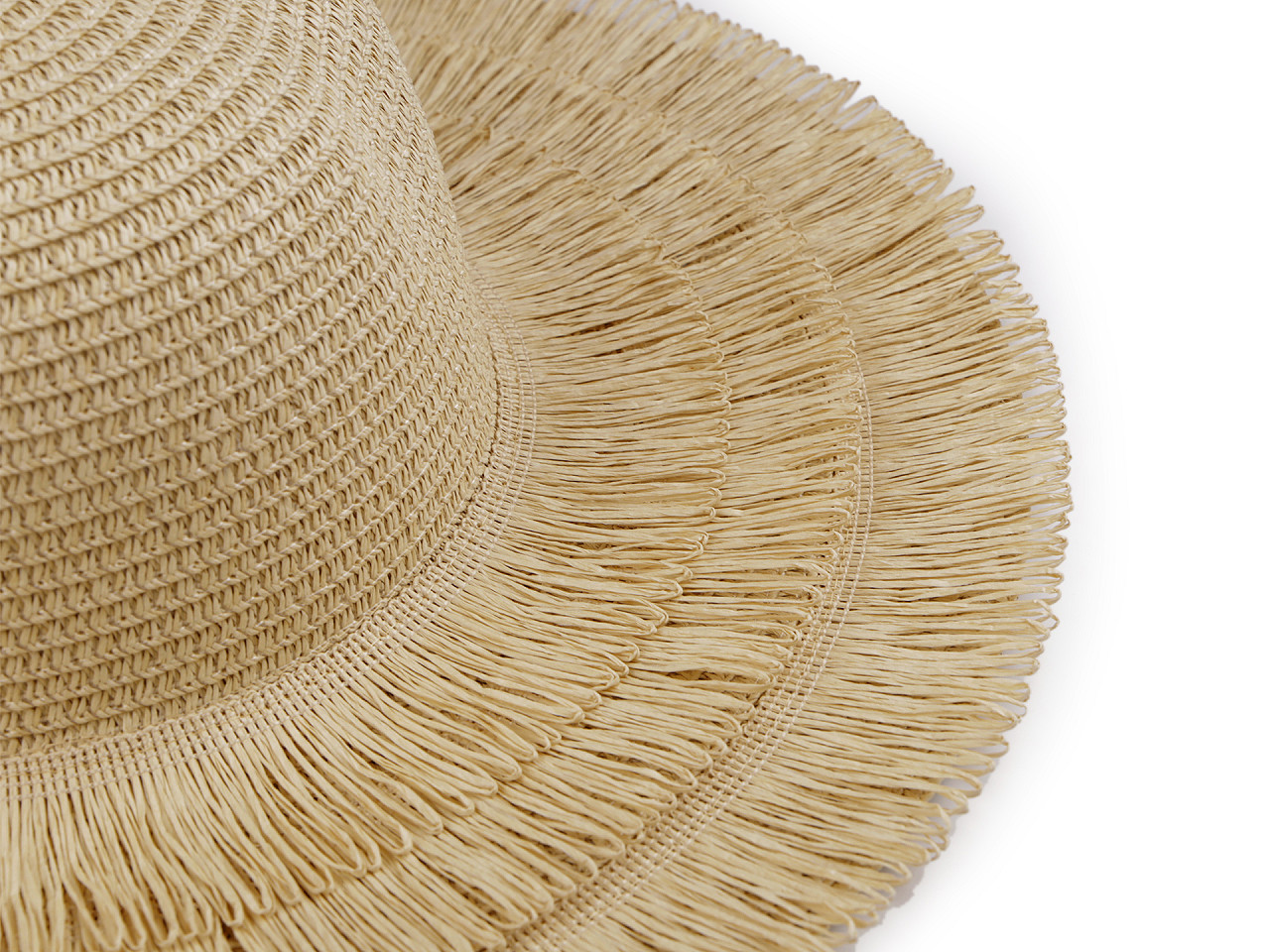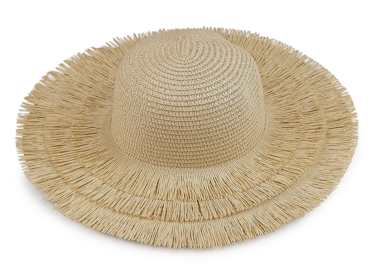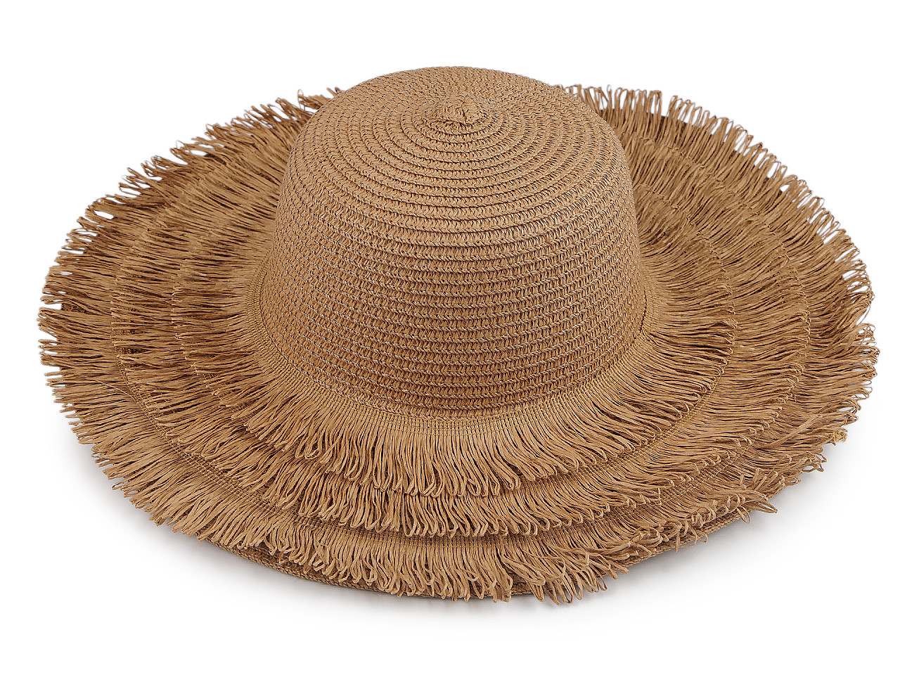 Letný či plážový klobúk je perfektnou voľbou pre dni strávené na pláži, výlety do prírody alebo posedenie na záhradnej párty. Slnko si s ním užijete naplno, skvele vás pred ním ochráni. Krempu má ozdobenú tromi radami pevných strapcov . Klobúk má dobre padnúci tvar , je vyrobený z papierovej slamy, vďaka tomu je ľahký. Šírka krempy je 12 cm. Tvar je okrúhly. V potnom prúžku vo vnútri klobúka je sťahovacia stužka, pomocou ktorej si môžete veľkosť klobúka upraviť. Náš tip: klobúk môžete ozdobiť mašľou, ktorá bude farebne ladiť s ostatným oblečením. Alebo si na šnúrku navlečte napr. koráliky a mušle, ktoré vám nielen pripomenú skvelú dovolenku, ale budú aj príjemným oživujúcim detailom. Ak máte radi štýl boho, dozdobte krempu pierkami, drevenými korálikmi a koženými šnúrkami. Klobúk môžete použiť aj ako bytovú, či terasovú dekoráciu. Jednotlivé časti klobúka.