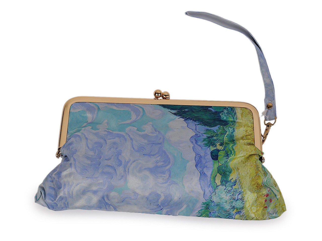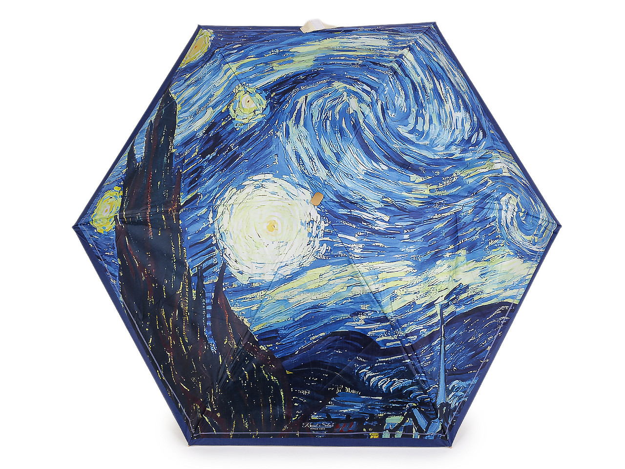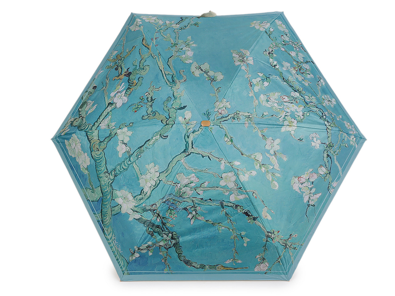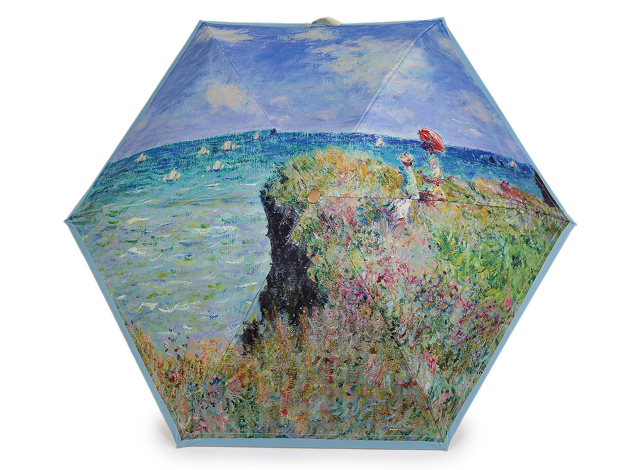 Skladací mini dáždnik má poťah s motívmi obrazov slávnych umeleckých diel . Dáždnik je ľahký a skladný , po zložení ho môžete schovať do puzdra v tvare malej kabelky s kovovým rámčekom a odnímateľným pútkom na ruku. Kabelku môžete používať aj samostatne, čo oceníte predovšetkým na cestách. Konštrukcia dáždnika je tvorená 6 poľami, rukoväť dáždnika je plastová, opatrená pružným pútkom. UV filter vás ochráni pred slnečným žiarením. Hĺbka dáždnika je 18 cm. Celková dĺžka je 49 cm. Dĺžka zloženého dáždnika je 18 cm. Rozmery kabelky sú 21 x 12 x 6,5 cm.