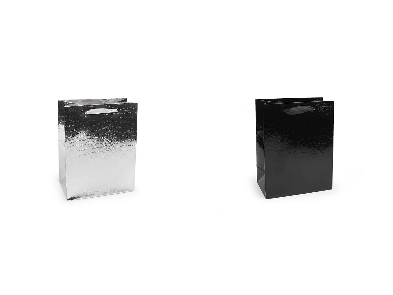 Darčeková taška s efektným metalickým povrchom so štruktúrou krokodílej kože sa hodí na rýchle zabalenie stredne veľkého darčeka. Taška je pevná , vyrobená z kvalitného papiera. Uchá sú z plochej stuhy, pohodlné do ruky.