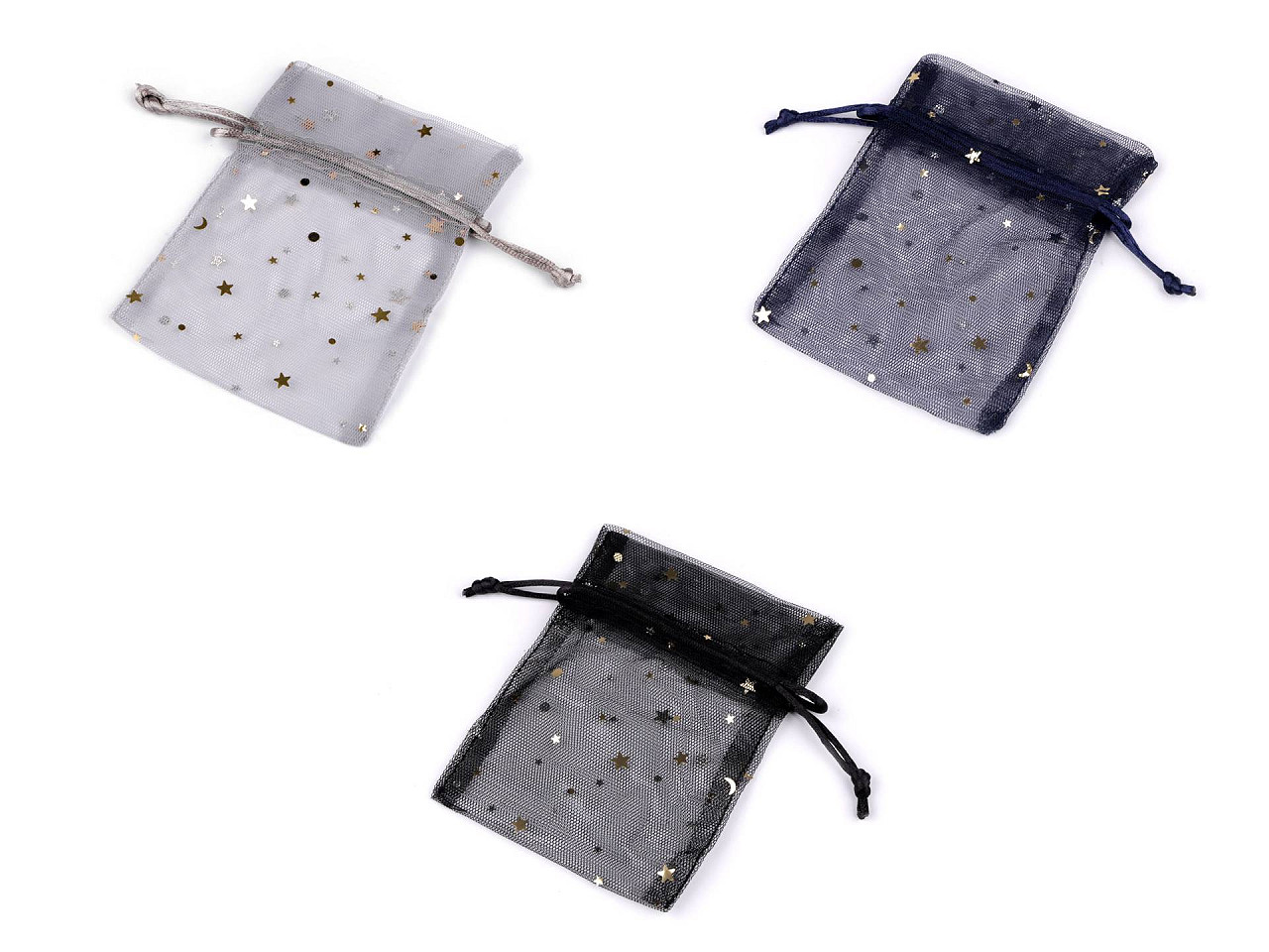 Darčekové vrecúško je vyrobené z tylu. Zdobí ho lesklá metalická potlač hviezdičiek . Ľahko sa uzatvára pomocou dvoch sťahovacích saténových šnúrok. Do vrecúška skryjete drobné darčeky nielen na narodeniny, ale aj na Vianoce.