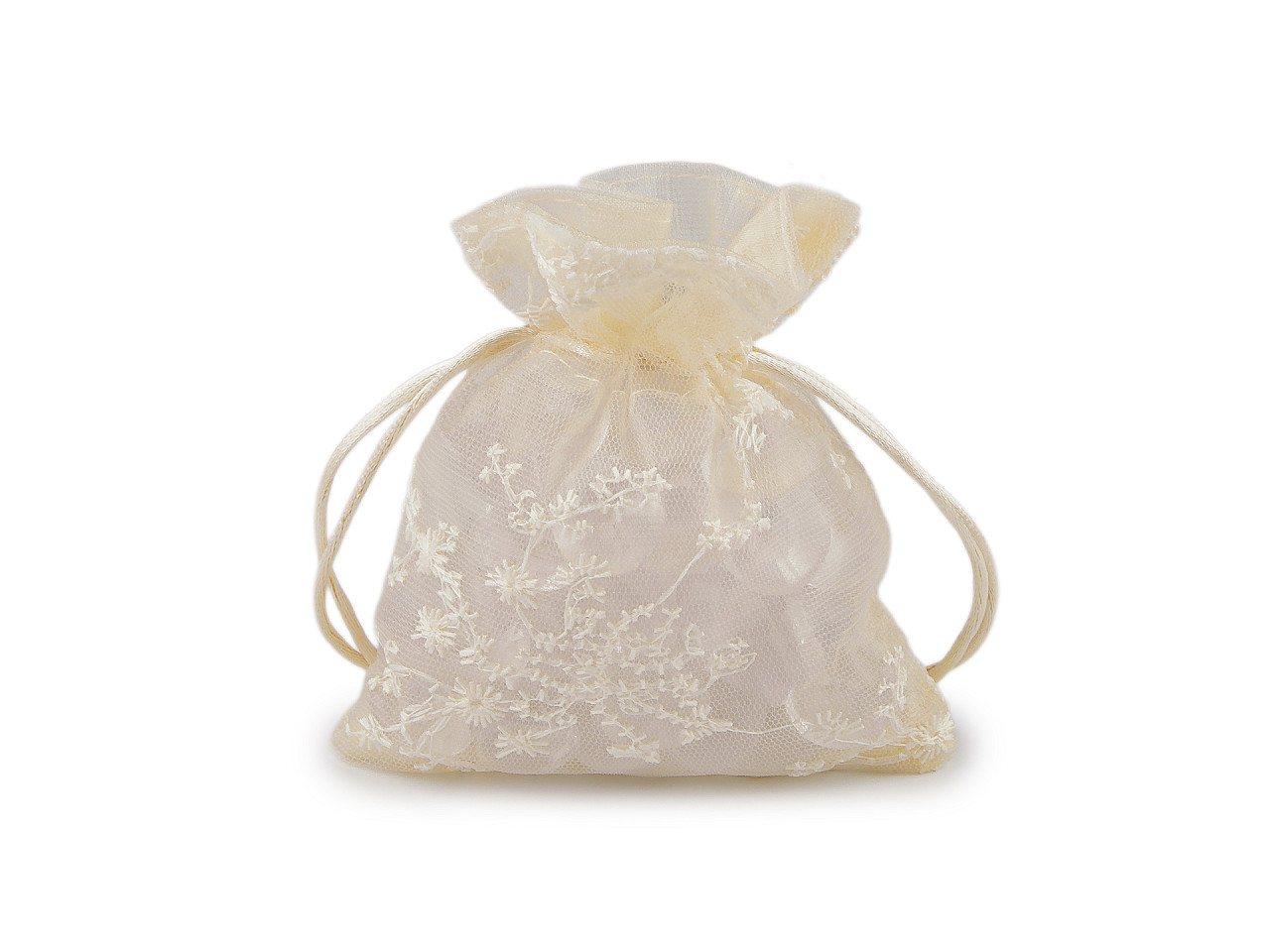 Darčekové vrecúško z organzy zdobí strojová výšivka kvetov . Pôsobí luxusným dojmom , hodí sa na zabalenie menšieho darčeka, ktorý povýši na vyššiu úroveň. Ľahko ho uzavriete pomocou dvoch sťahovacích saténových šnúrok. Vrecko je vhodné na zabalenie darčekov, ale môžete do neho uschovať aj vaše osobné poklady alebo naaranžovať voňavé sušené kvety.