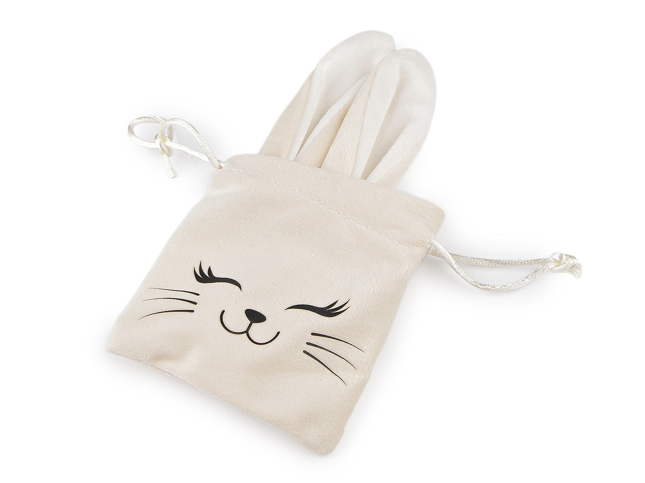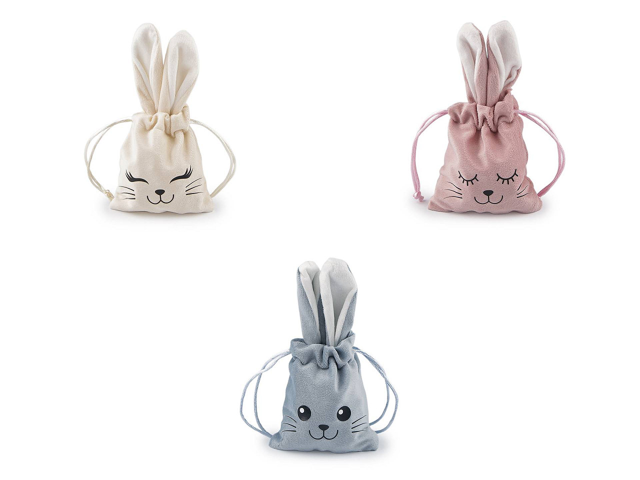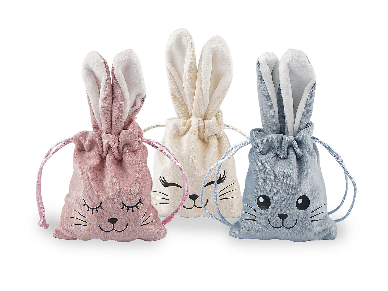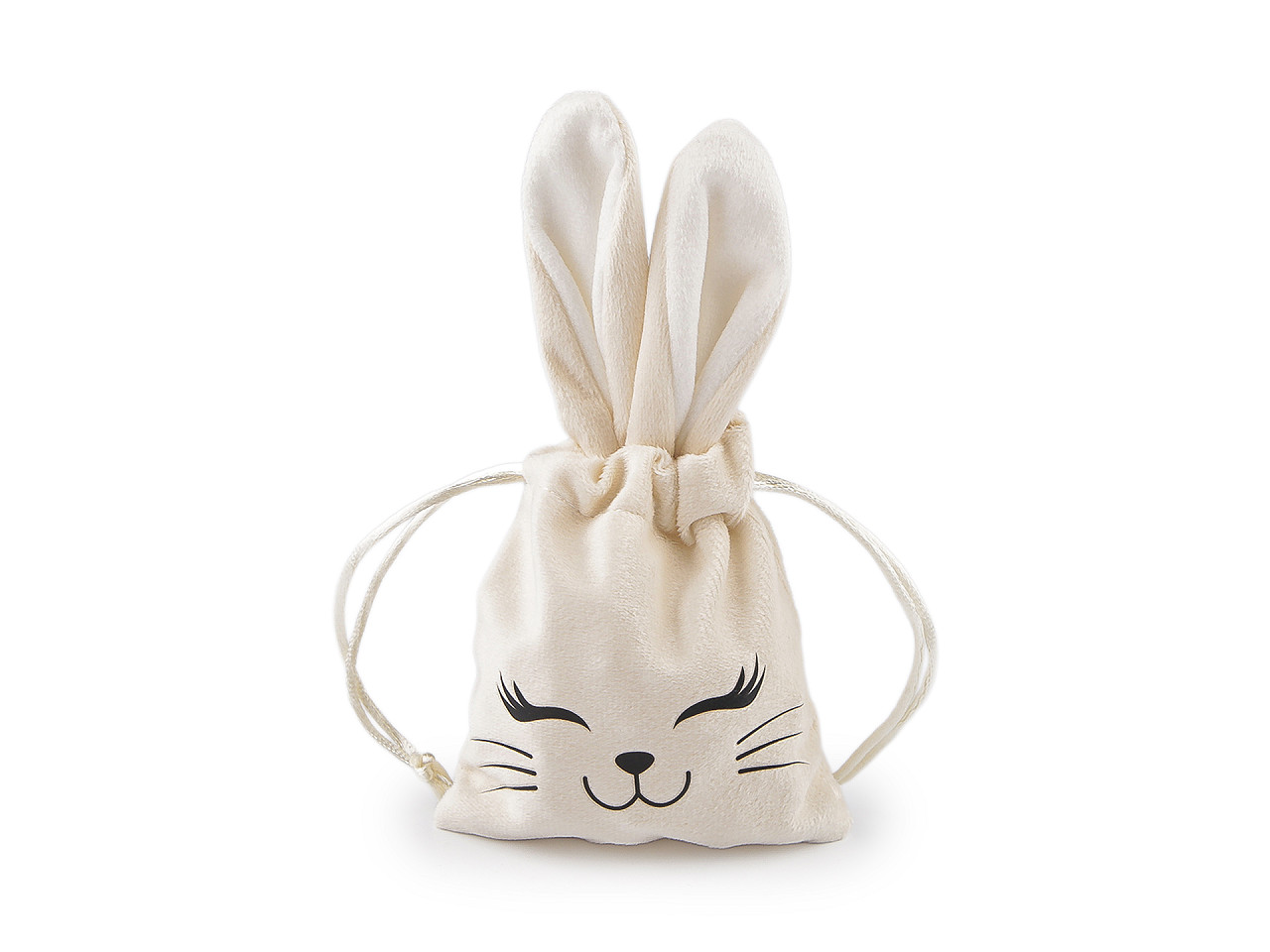Zamatové darčekové vrecúško v tvare roztomilého zajačika je perfektným doplnkom pre každú príležitosť, kedy chcete darovať niečo špeciálne. Je vyrobené z jemného zamatu , ktorý poskytuje luxusný pocit na dotyk a zaručuje odolnosť vrecúška. Dizajn s ušami a potlačou tváre dodáva vrecúšku hravý nádych, ktorý poteší ako deti, tak dospelých. Skvele sa hodí i ako dekorácia na detské oslavy, Veľkú noc alebo do detských izieb. Vtipne ukryje malú koledu pre koledníkov, ale hodí sa tiež na zabalenie menších darčekov po celý rok. Na zadnej strane má brmbolec ako malý chvostík, ľahko sa uzatvára pomocou dvoch sťahovacích saténových šnúrok.