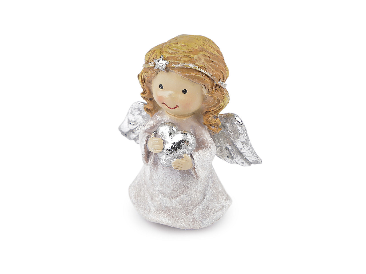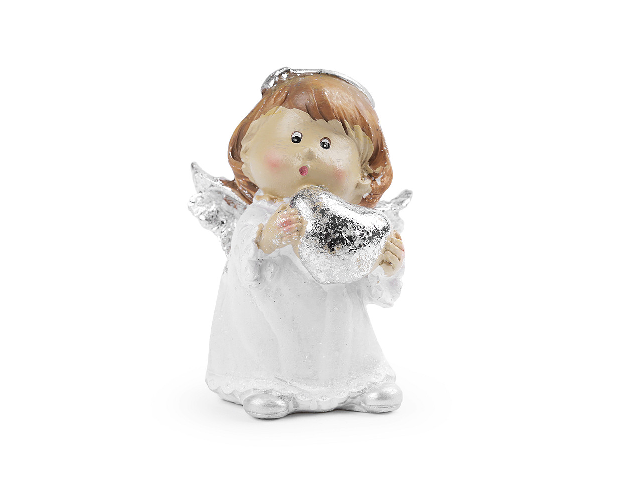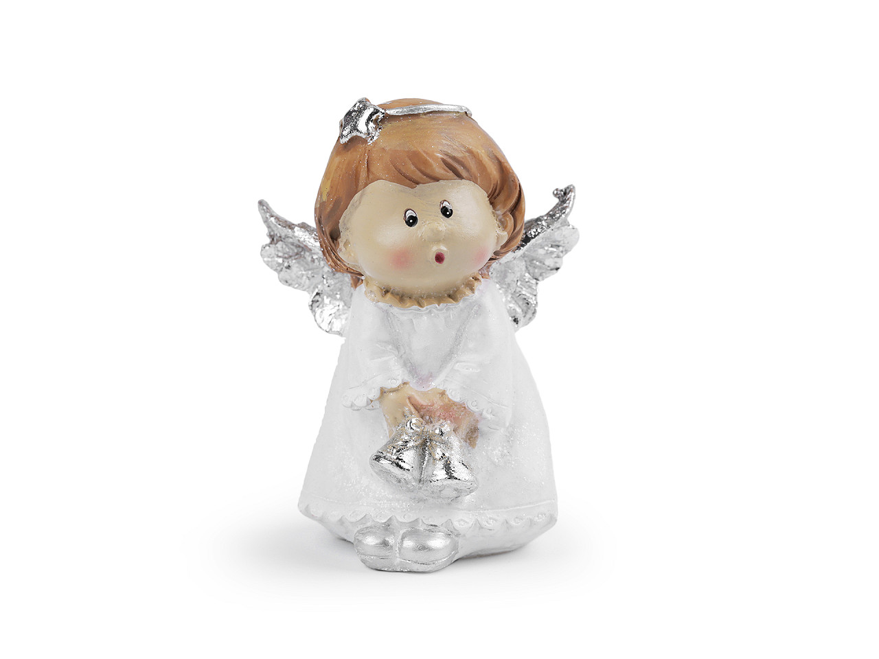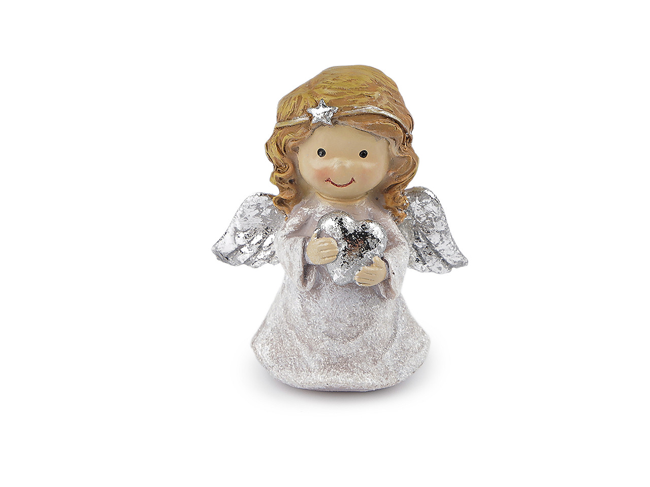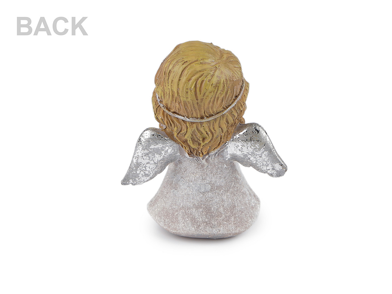 Soška roztomilého anjela je jemne posypaná trblietavými glitrami. Vďaka metalickým detailom bude pôsobivou dekoráciou aj darčekom.