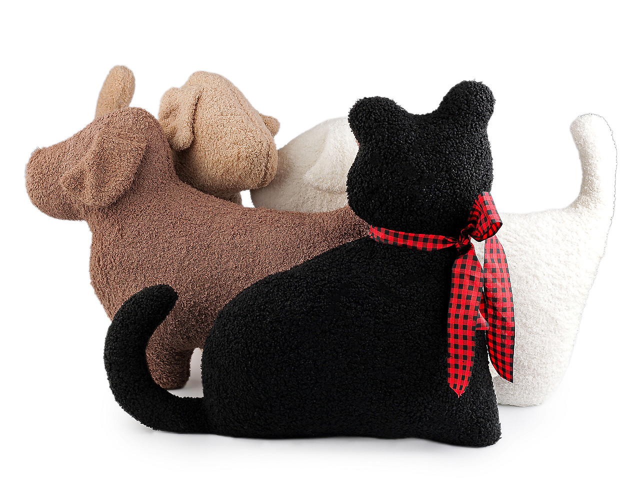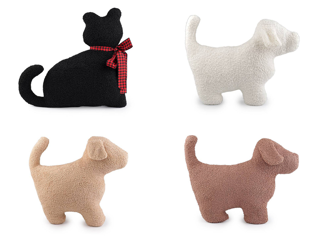Dekoračný vankúš zvieratka je štýlovým doplnkom, ktorý zaujme svojim hravým dizajnom , ale aj mäkkosťou a pohodlím . Skvele ho využijete vo chvíľach relaxu a odpočinku. Má jemne kučeravý povrch , výplň je z dutého vlákna. Vankúš bude aj skvelým darčekom pre vašich blízkych, ktorí ocenia jeho zaujímavý vzhľad a praktické využitie. Vankúš č. 1 - mačka nemá zips, obliečku teda nemožno sňať a prať samostatne. Vankúše č. 2 - 4 - s motívom psíka majú skrytý zips, vo vnútri majú voľne vloženú výplň z dutého vlákna.