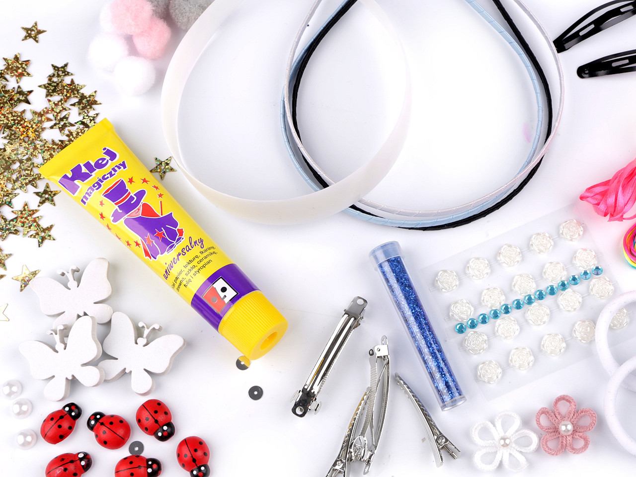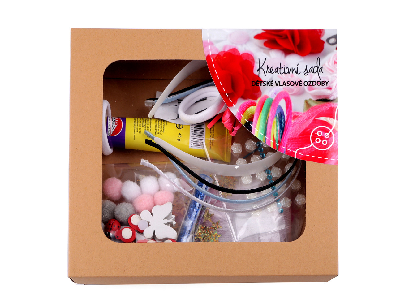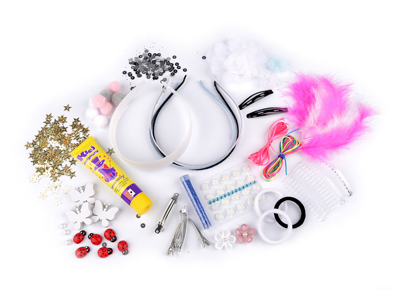 S kreatívnou sadou Dizajn Stoklasa si môžete vyrobiť vlastné vlasové ozdoby. Je zostavená z tých najzaujímavejších kúskov z nášho obchodu, ktoré sa budú doslova kombinovať samé. Môžete mať každú ozdobu inú alebo si naopak vytvoriť celý zladený set. Veríme, že vás aj vaše deti naša kreatívna súprava nadchne. Súprava obsahuje: 3 saténové čelenky pukačky plastovú čelenku 2 kovové sponky 2 priehľadné hrebene 1 lepidlo. Ďalej v sade nájdete komponenty, ktoré sa môžu líšiť alebo môžu byť nahradené inými kreatívnymi doplnkami: - gombíky kvety - flitre kvety - flitre okrúhle - glitre - saténové ružičky - mix textilných kvetov - samolepiace včielky - bambulky - pierka - mix samolepiacich kamienkov a perál - mix saténových šnúrok. Upozorňujeme zákazníkov, že komponenty sa môžu líšiť , fotografia je ilustračná. Sada nie je určená pre deti do 3 rokov z dôvodu vdýchnutia malých kúskov.