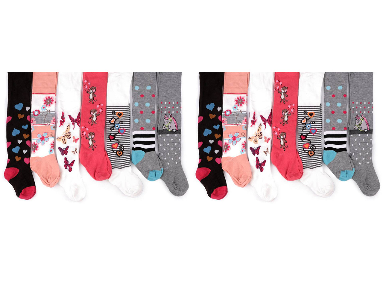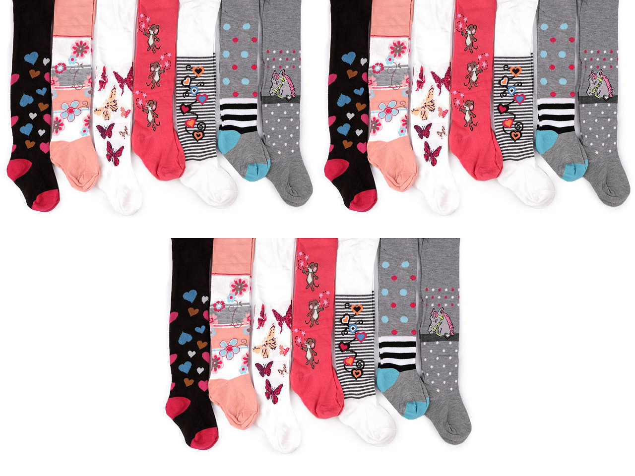 Farebné dievčenské pančuchy sú zaujímavé svojim dizajnom s rôznymi motívmi. Sú z mäkkého bavlneného materiálu. Majú pružný pás, príjemne sa nosia. Pančucháče sú zabalené na karte so závesom, hodia sa na vystavenie na predajné stojany. Upozorňujeme zákazníkov, že zloženie na štítkoch sa môže líšiť, materiál je bavlna, polyamid a elastan. V balení mix náhodných variantov sú pančuchy rôznych designov i rôznych veľkostí.