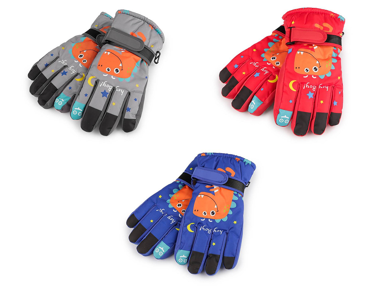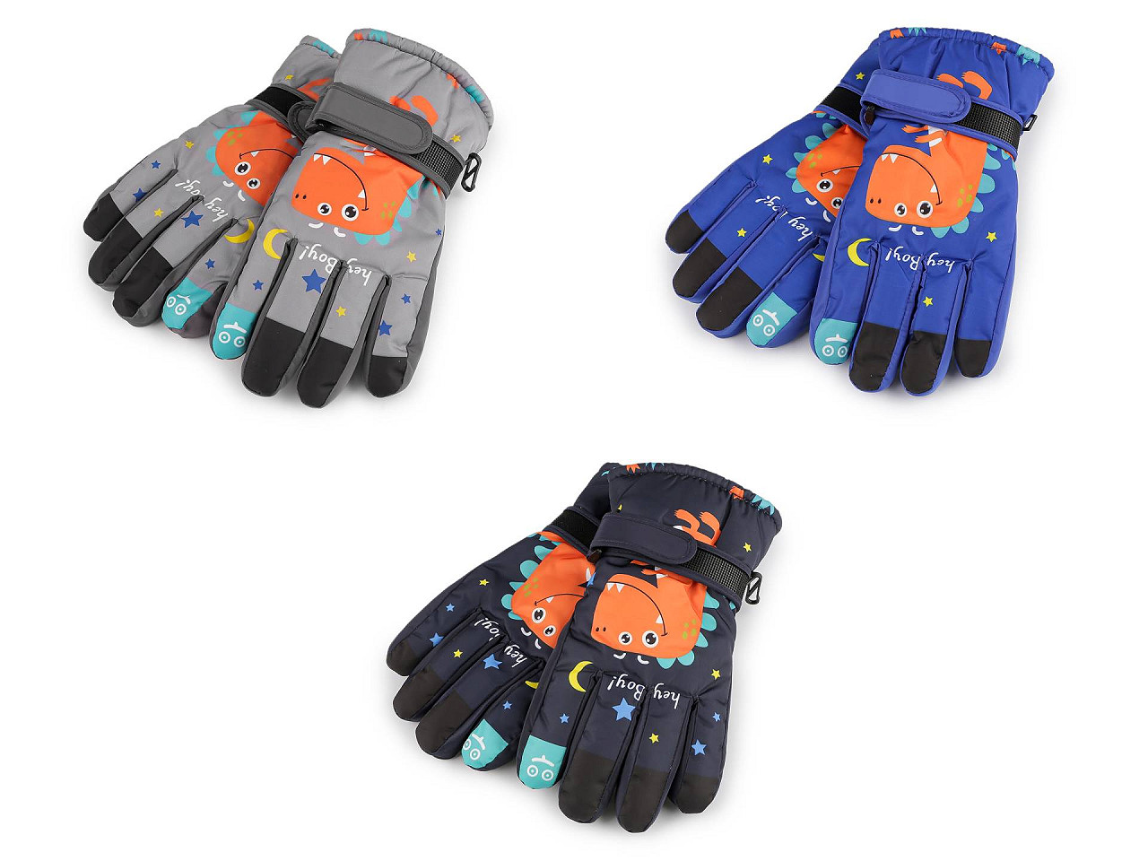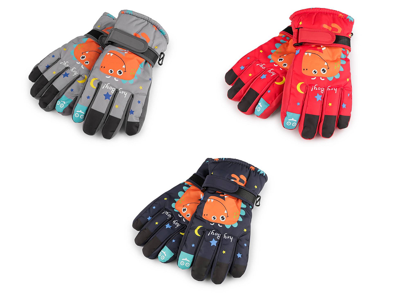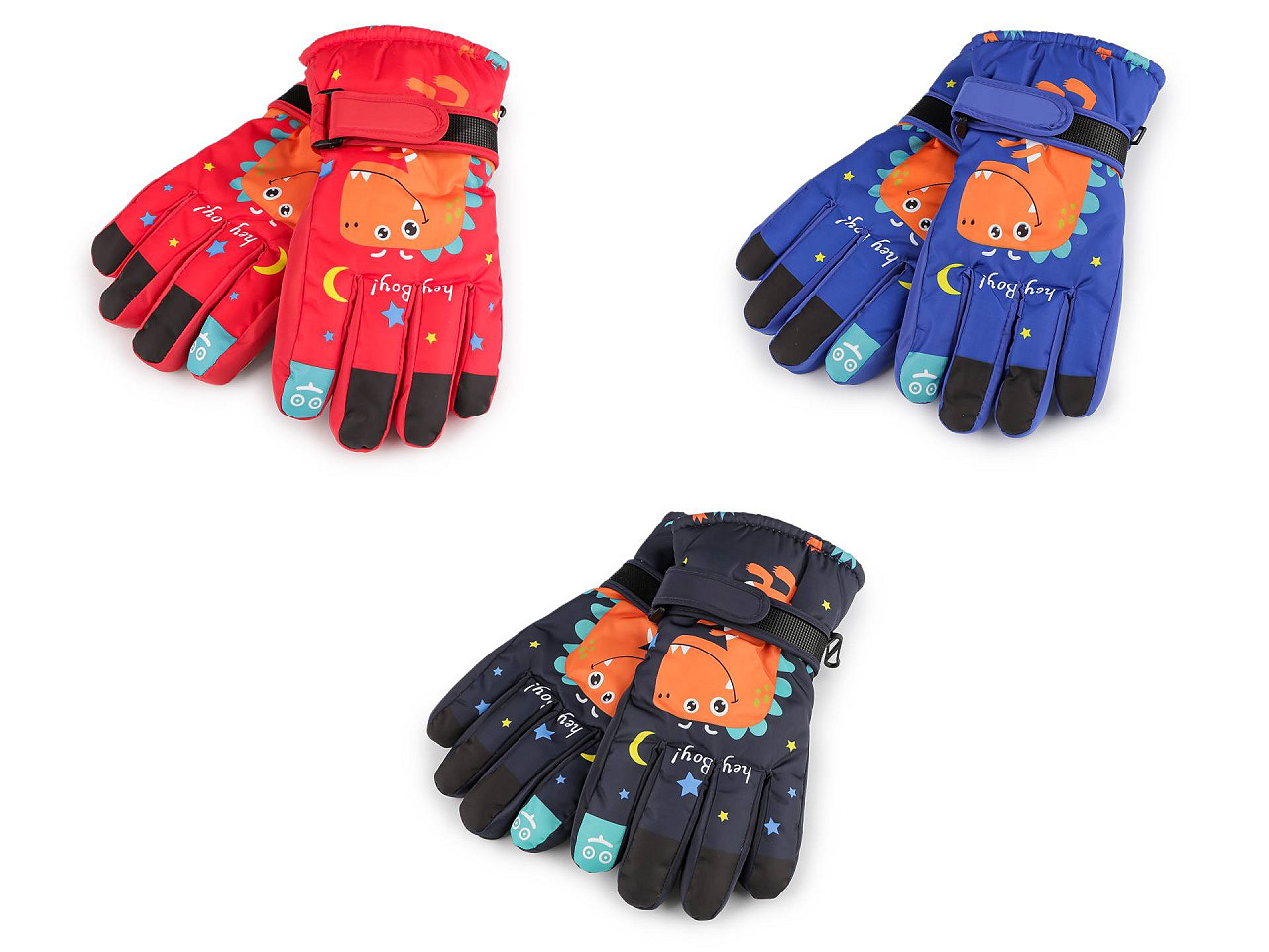 Detské zimné rukavice sú ozdobené potlačou dinosaura . Sú perfektné pre všetky zimné aktivity, či už ide o stavanie snehuliaka, šantenie na saniach alebo len prechádzky s rodinou počas chladných zimných dní. Vďaka pogumovaným dlaniam majú výborný úchop. Sú zateplené plyšovým kožúškom , ktorý deti skvele zahreje. Na zápästí sa dajú zmenšiť , aby perfektne sedeli, vďaka opasku so suchým zipsom. Na konci majú manžetu z pružného úpletu, aby pekne priliehali a na bokoch nájdete plastovú karabínu na vzájomné zopnutie. Sú vhodné do zimy alebo do chladnejšieho jesenného počasia. Šírka je meraná na voľne položených rukaviciach uprostred (bez palca). Rukavice dodávame zabalené v zipsovom vrecku.