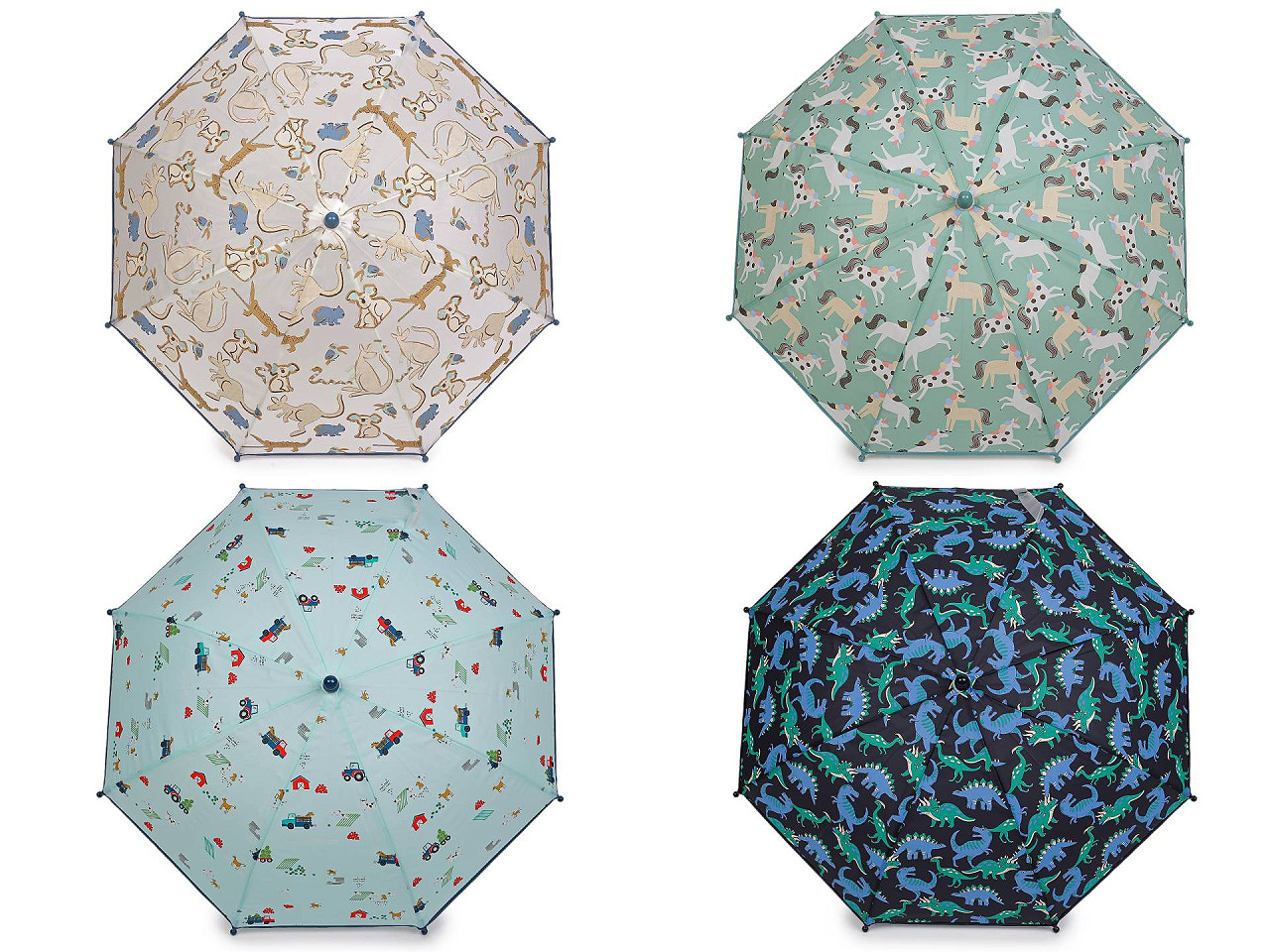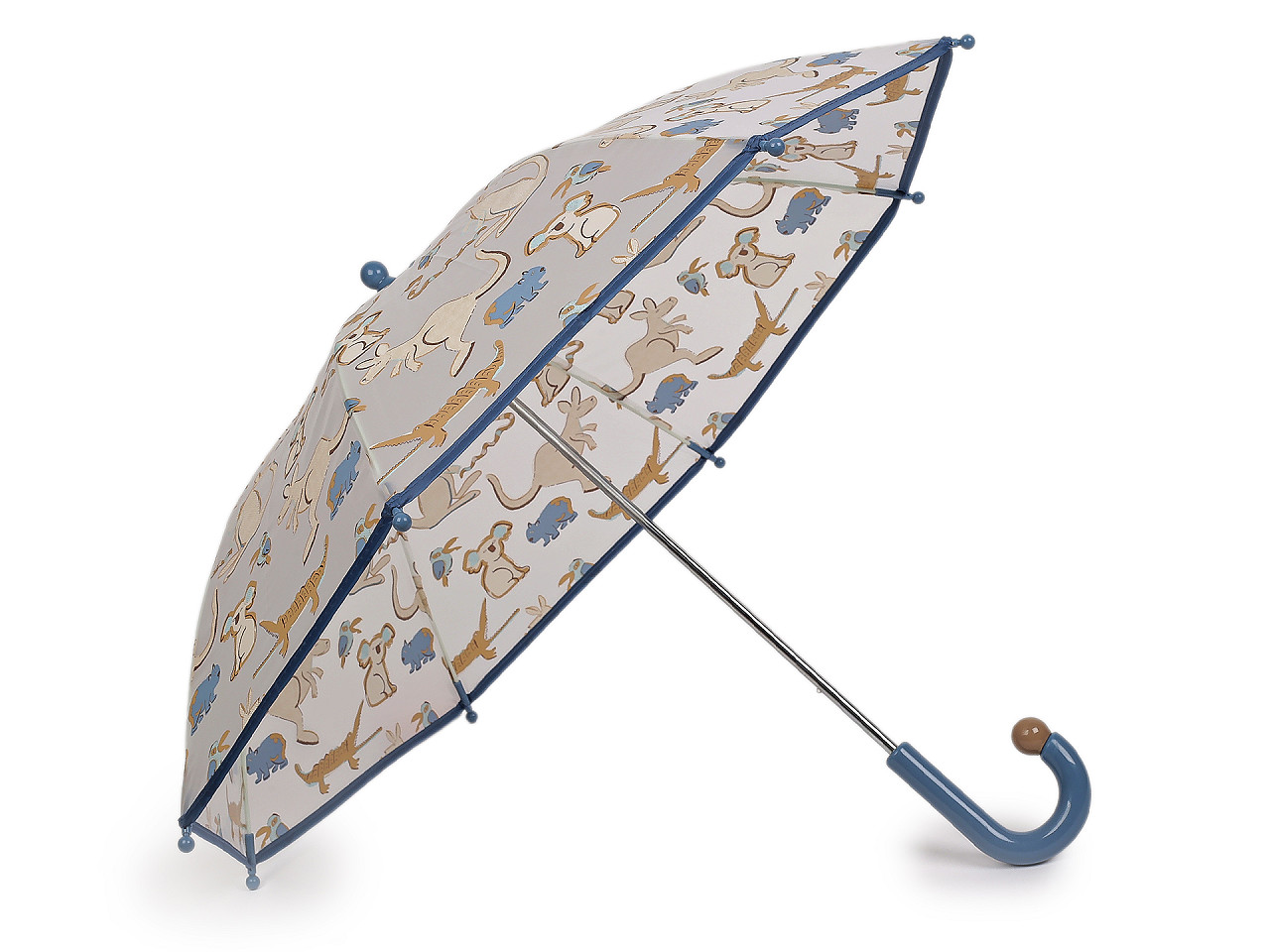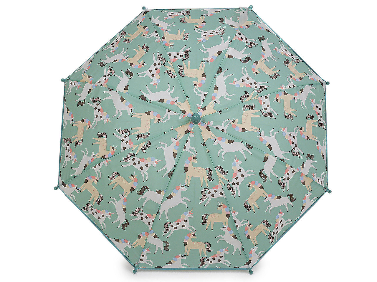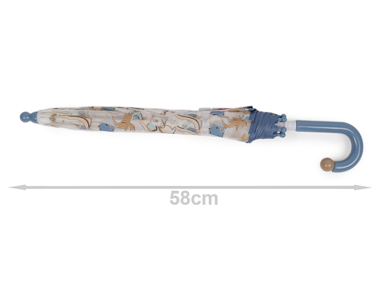 Detský dáždnik s farebnými obrázkami je ideálnym spoločníkom na daždivé dni. Tento dáždnik je navrhnutý s ohľadom na potreby detí , kombinuje štýlový vzhľad s praktickosťou. Deti dáždnik roztvoria aj zatvoria len ťahom , nemusia pritom stláčať žiadne gombíky. Klasická tyč je zakončená pevnou rukoväťou s ozdobnou guličkou , gulička sa opakuje aj na špičke dáždnika. Konštrukcia dáždnika je z pružných lamiel a tvorí osem polí. Hĺbka dáždnika je 17 cm.
